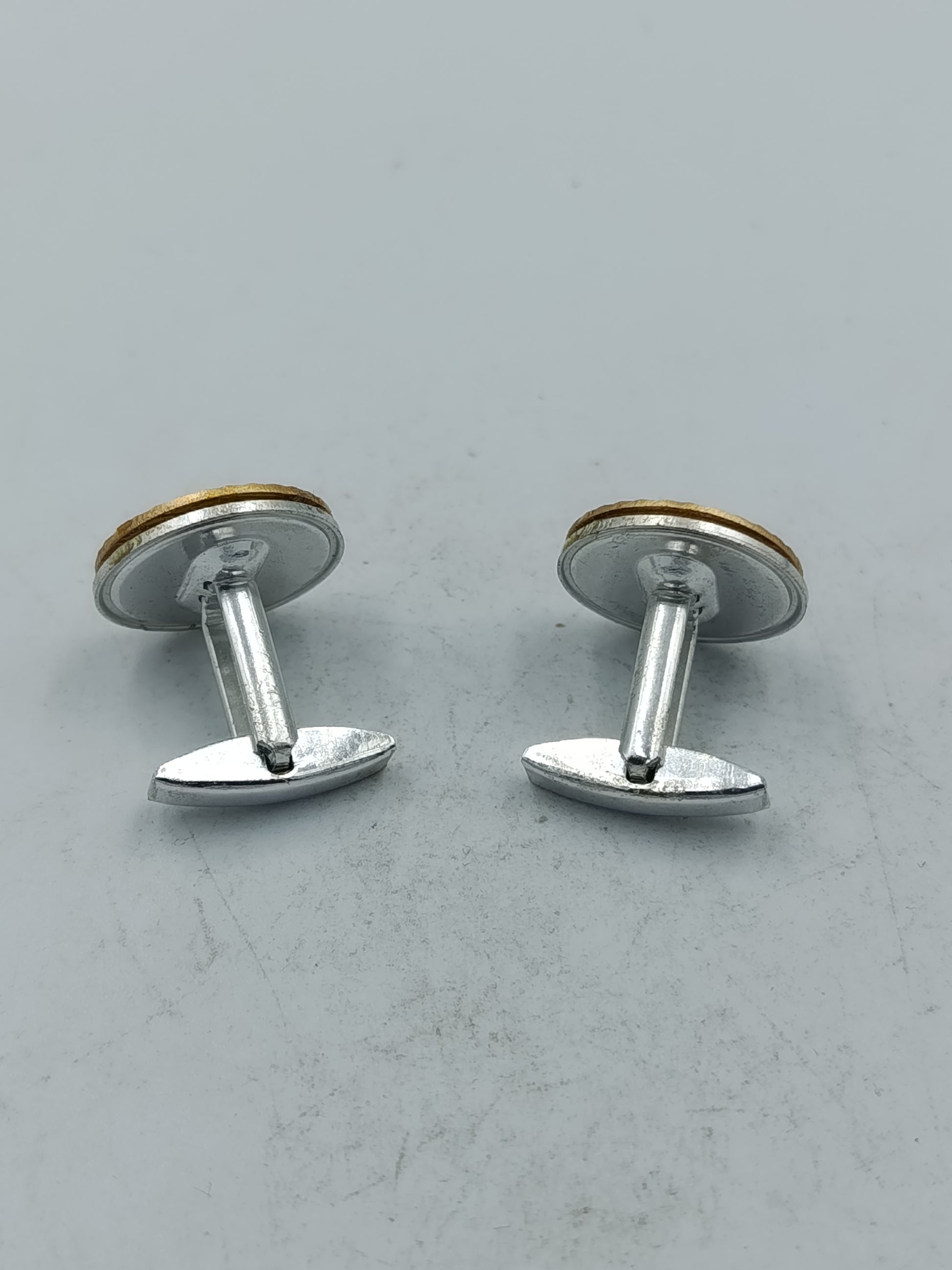 Goldfarbene Manschettenknöpfe mit Delfin Motiv und strukturierter Umrandung
