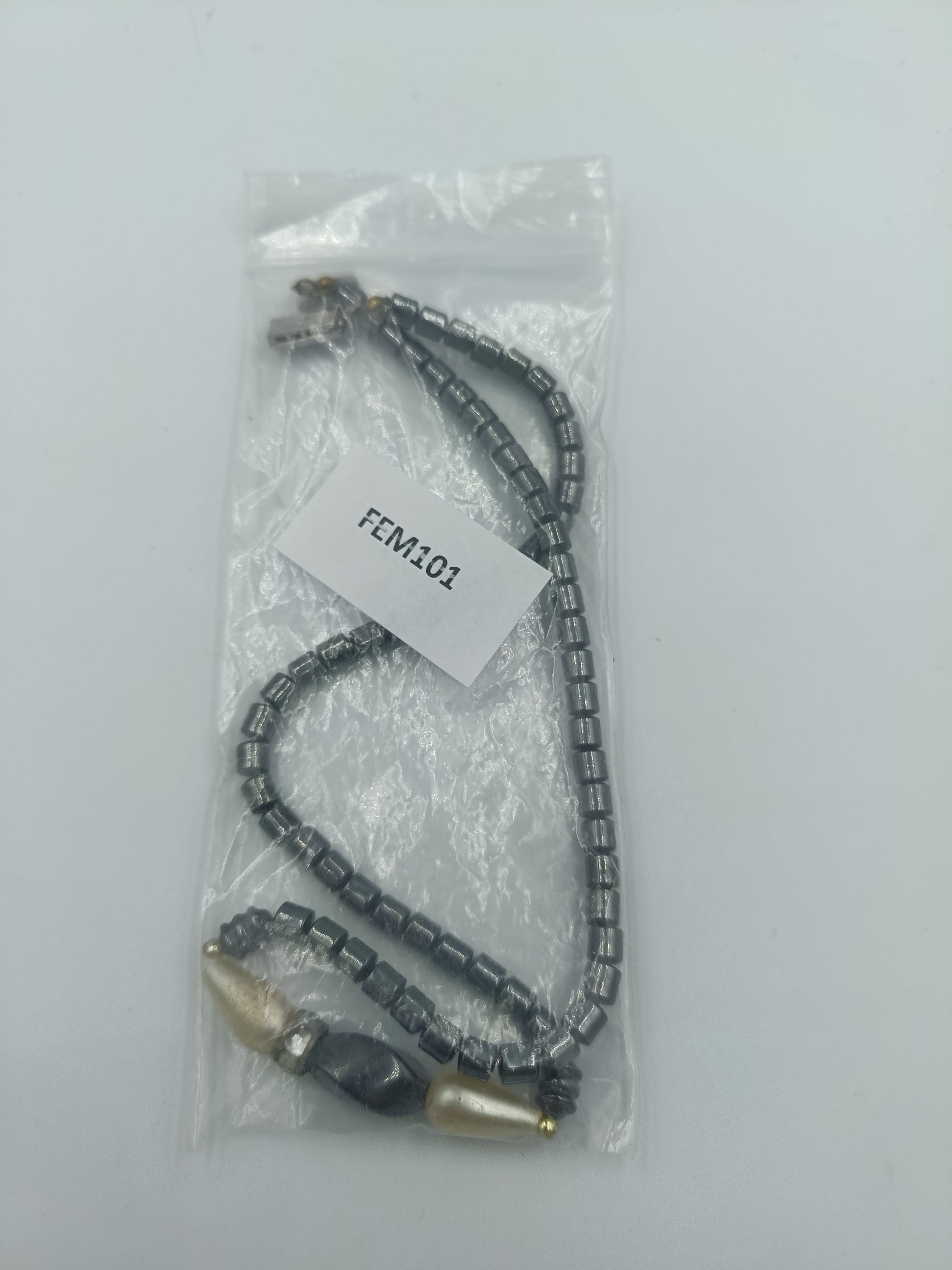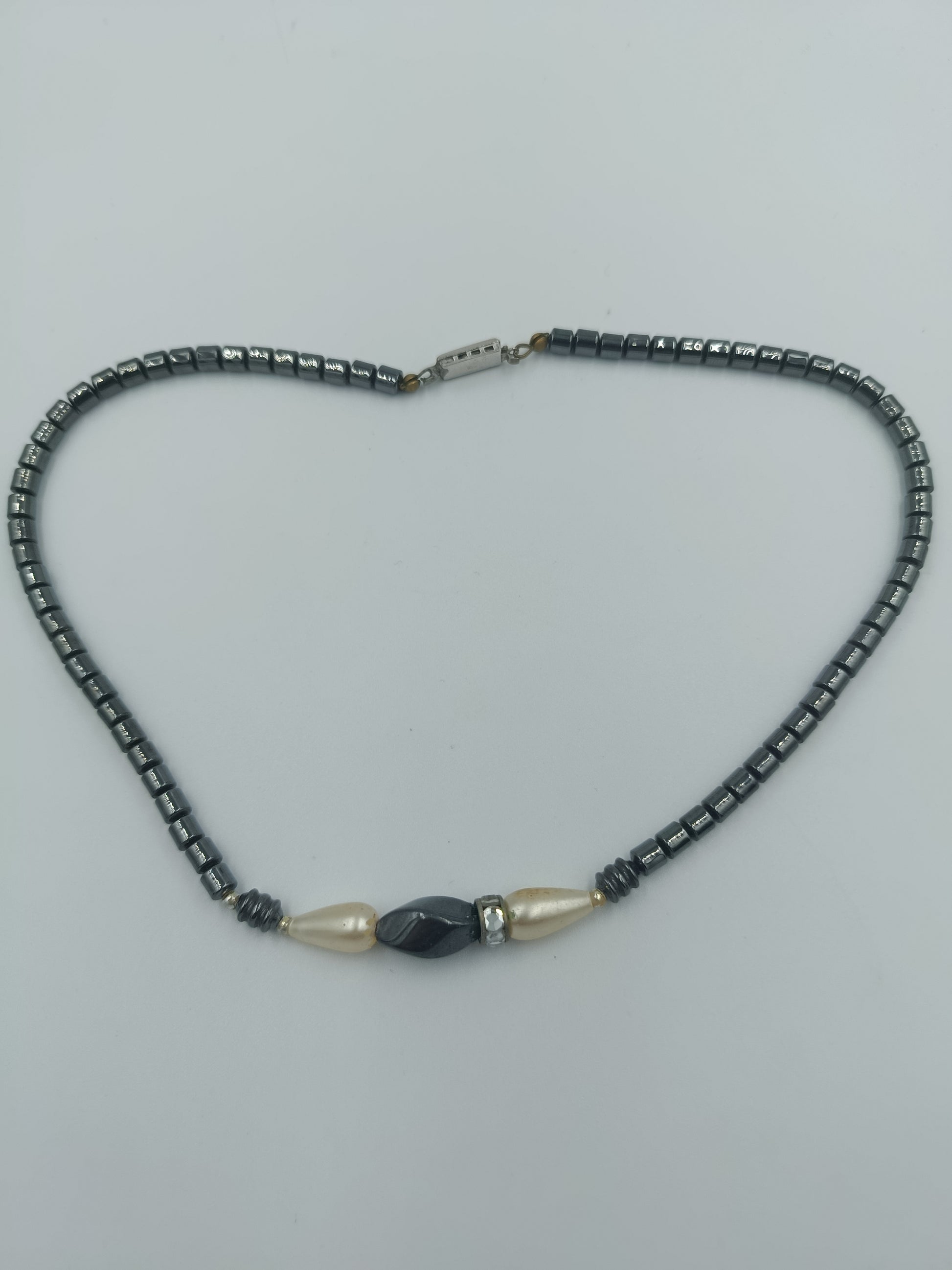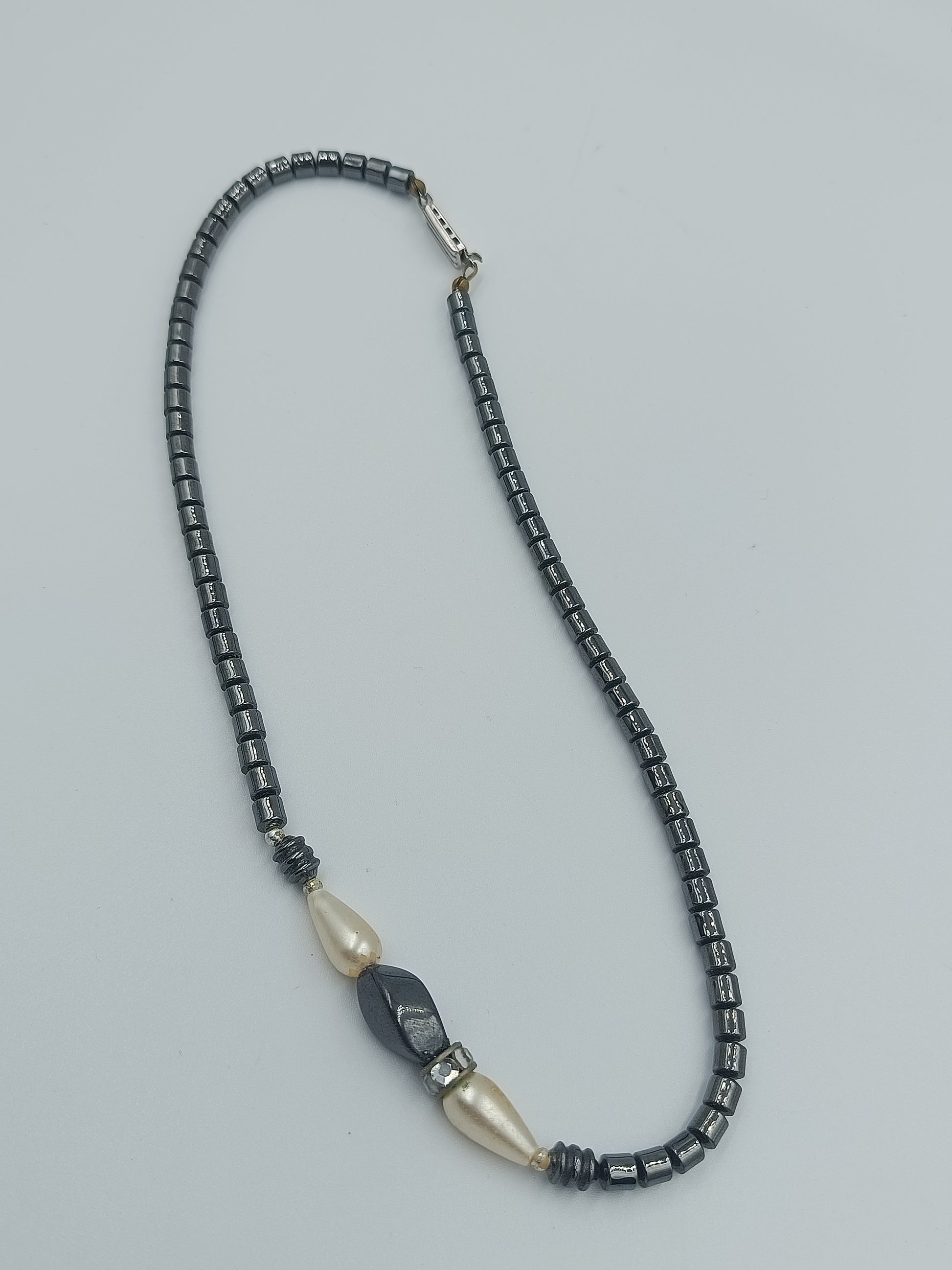 Hämatit-Perlenkette mit Perlenimitat & Strass