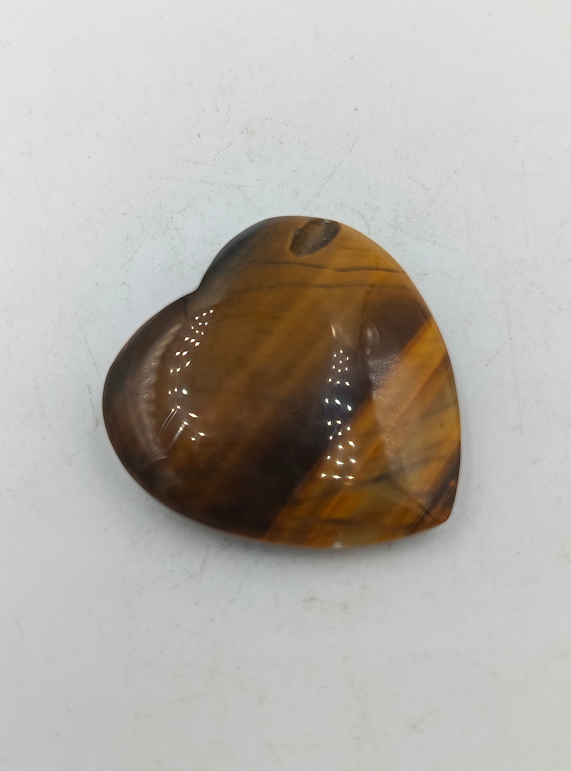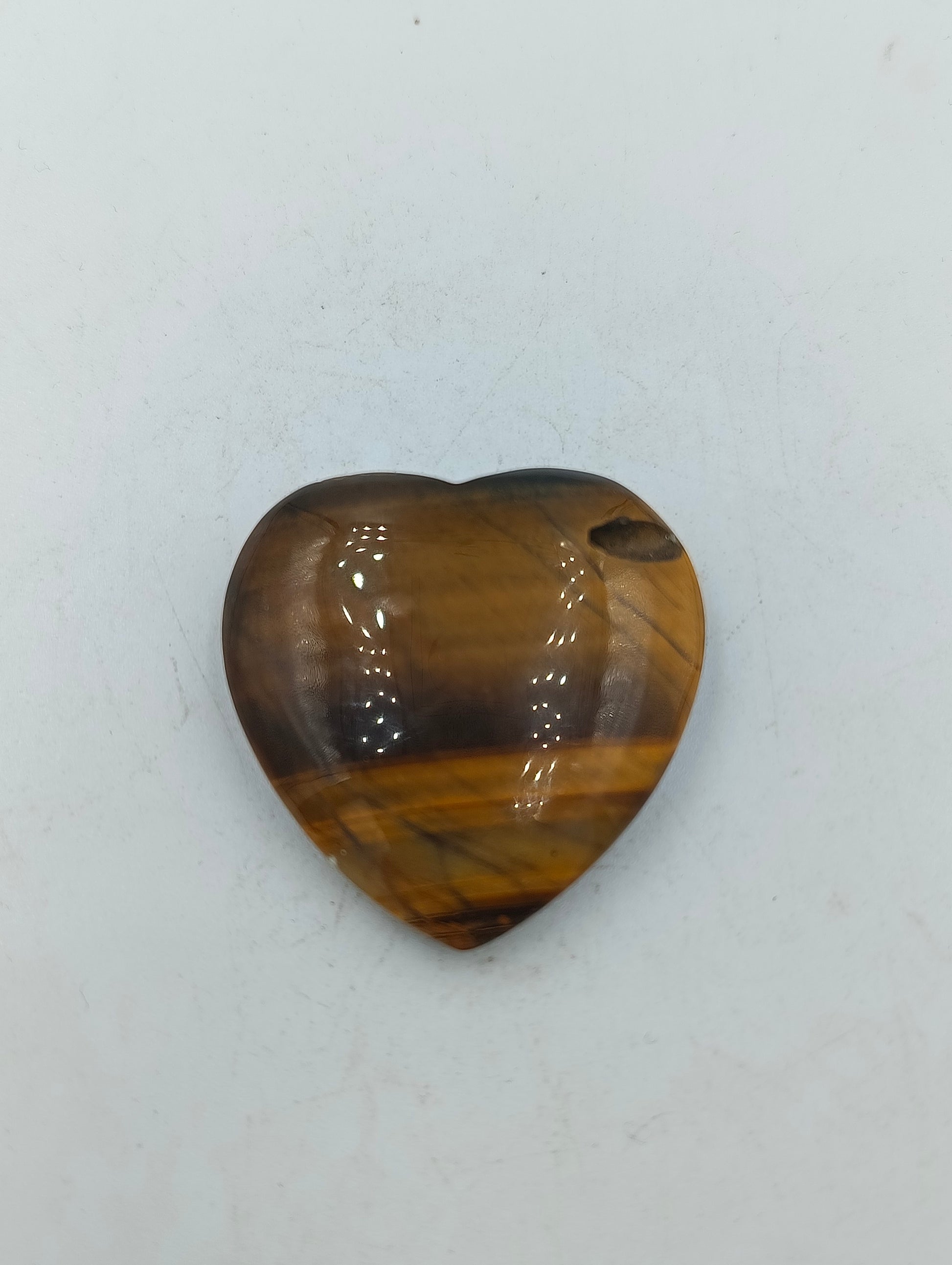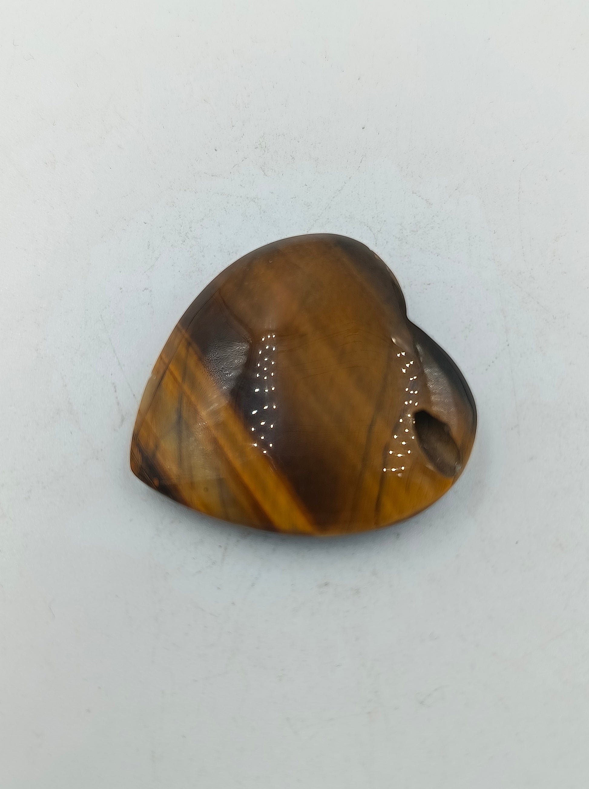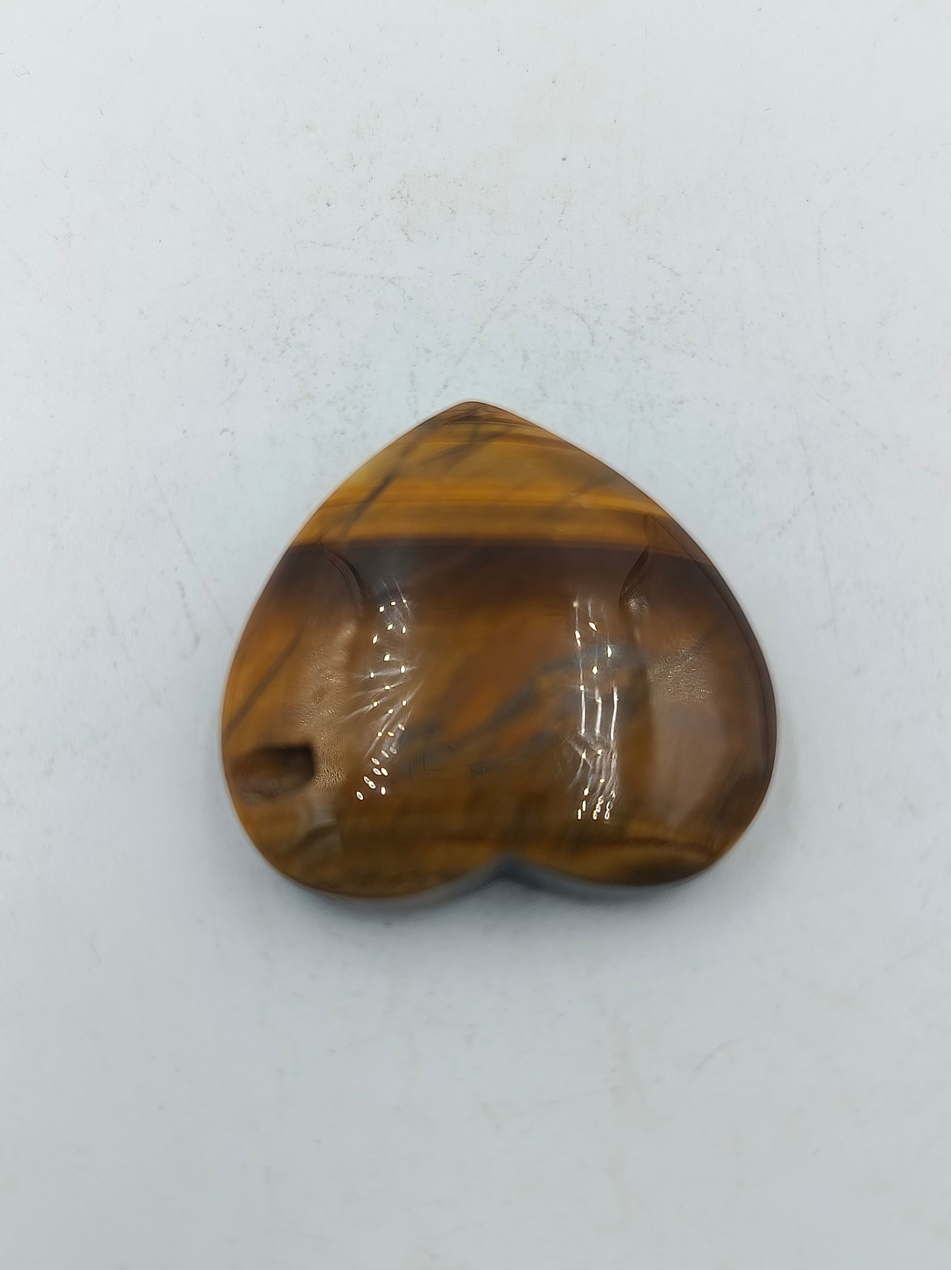 Dieser faszinierende Herz-Anhänger wurde aus echtem Tigerauge-Naturstein gefertigt und besticht durch seinen einzigartigen goldbraunen Schimmer, der auch als Chatoyance-Effekt bekannt ist. Das Muster ist bei jedem Stück ein Unikat. Dem Tigerauge werden schützende Eigenschaften zugeschrieben, es soll Mut schenken und die Konzentration fördern. Der Anhänger ist im oberen Bereich gebohrt, um ihn an einer Kette oder einem Band zu tragen.