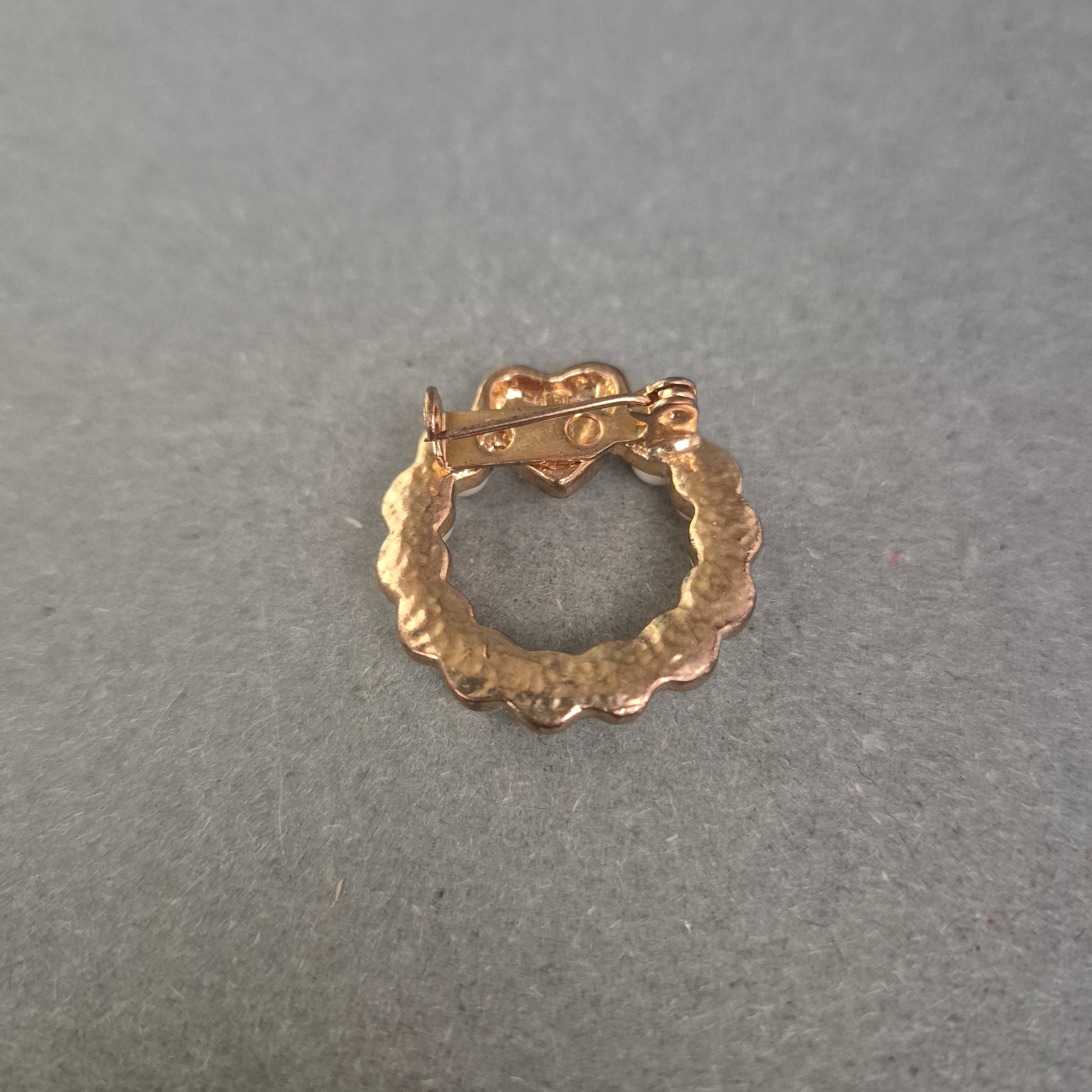 Diese charmante Brosche im runden Design mit Herzakzent vereint klassische Eleganz und verspielten Glanz. Weiße Zierperlen umrahmen das goldfarbene Herz, das mit funkelnden Strasssteinen besetzt ist. Das glänzende Finish macht diese Brosche zum perfekten Accessoire für festliche Anlässe, romantische Looks oder als liebevolles Geschenk.
