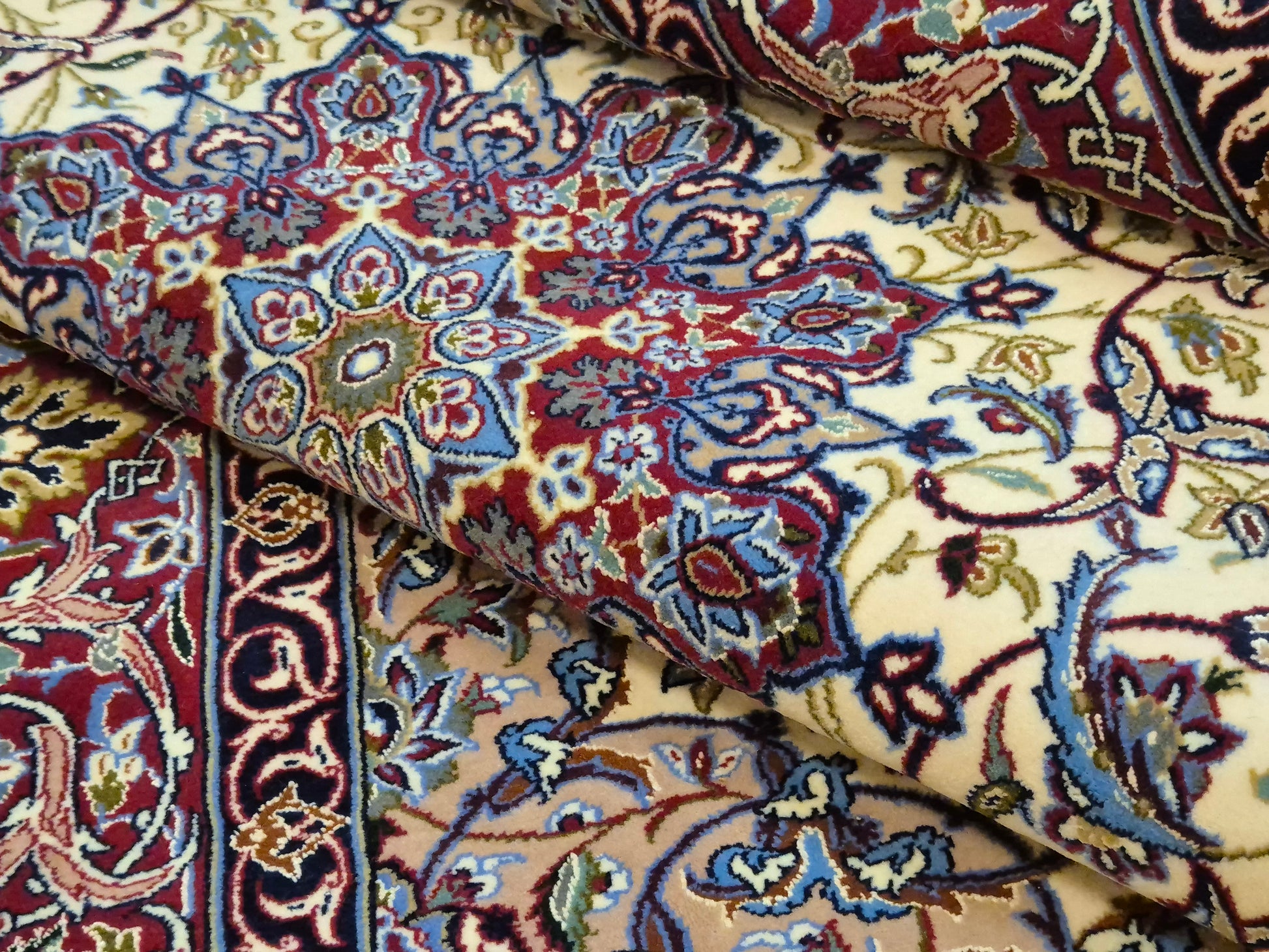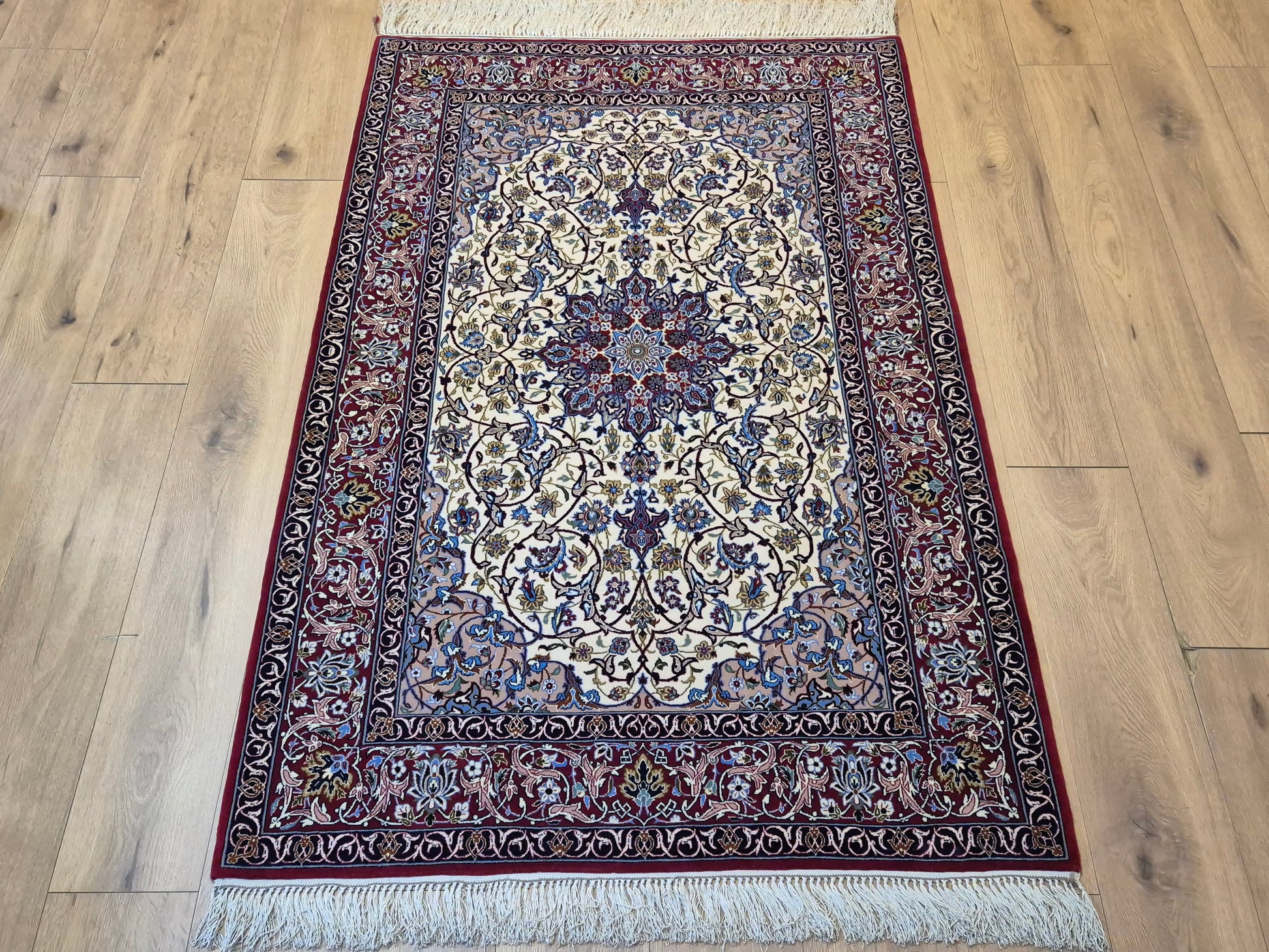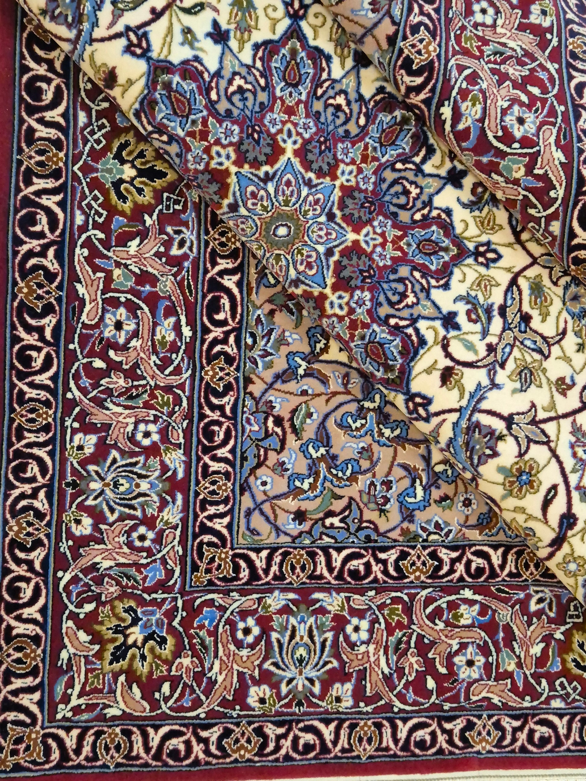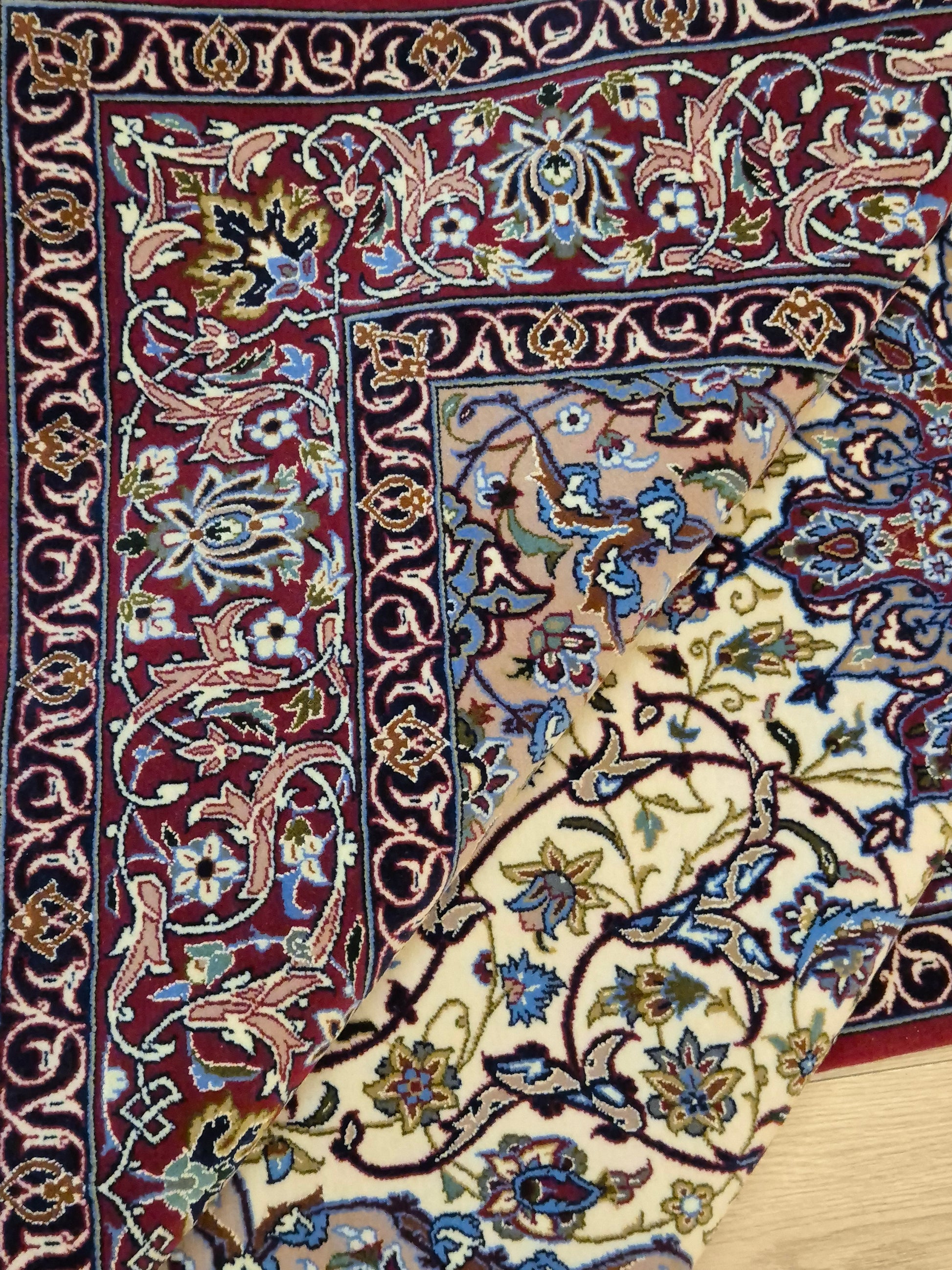 Isfahan Teppich Korkwolle mit Seide Medaillon feine Knüpfung