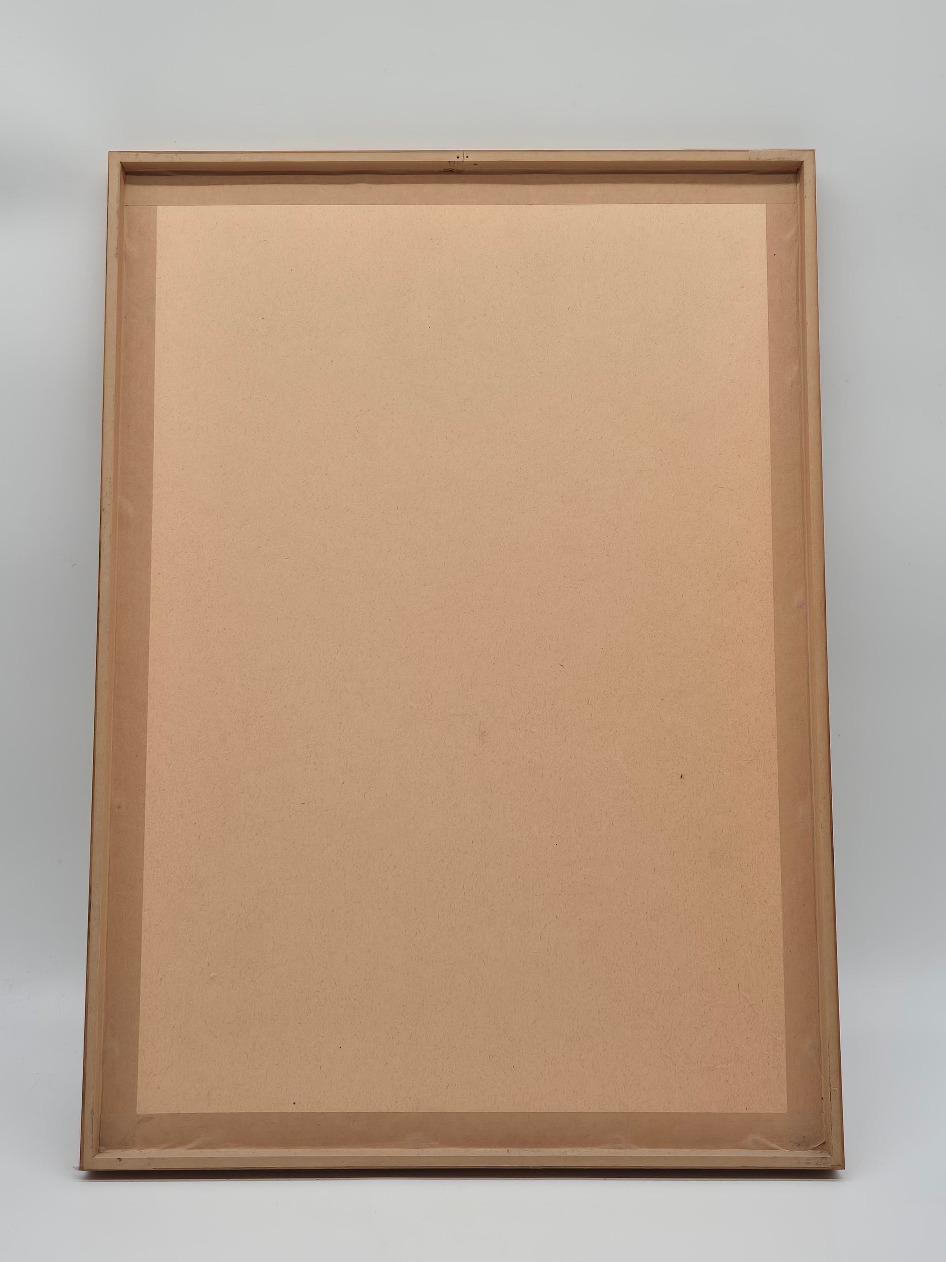 Mit einem Rahmenmaß von 47 x 53 cm ist das Werk hochwertig präsentiert und in sehr gutem Zustand erhalten. Der dekorative Rahmen unterstreicht die kulturelle Ausdruckskraft des Motivs und macht den Kunstdruck zu einem besonderen Blickfang.