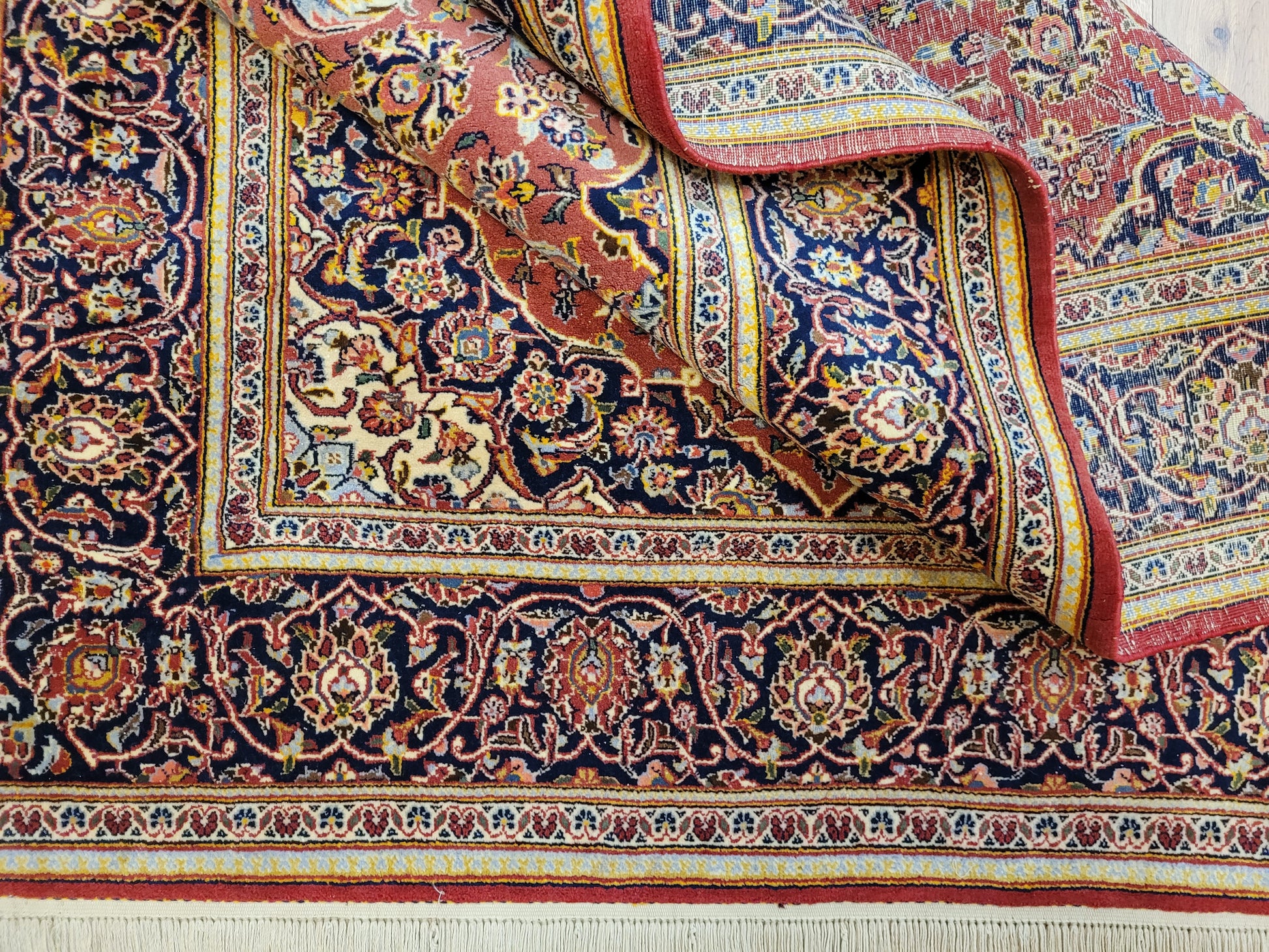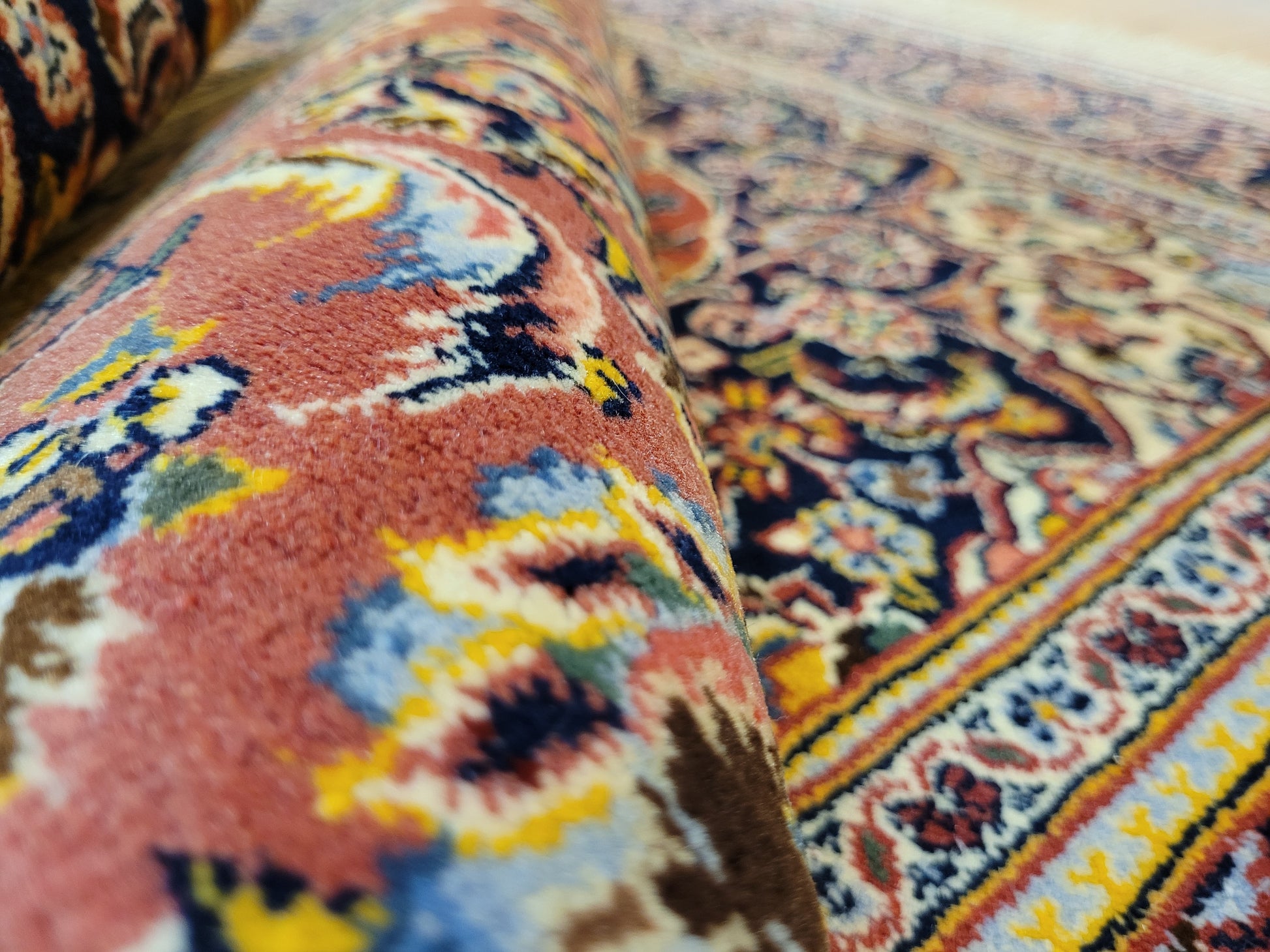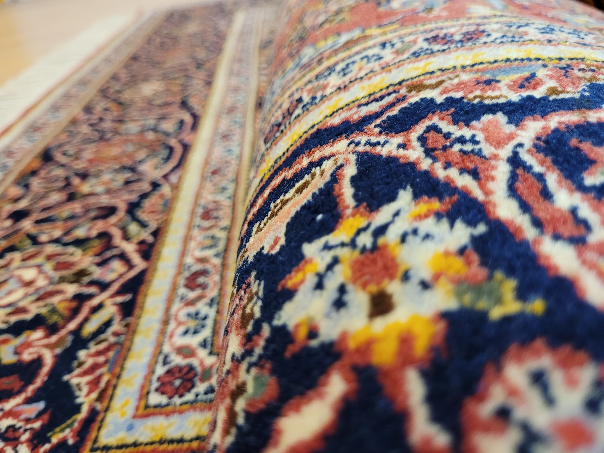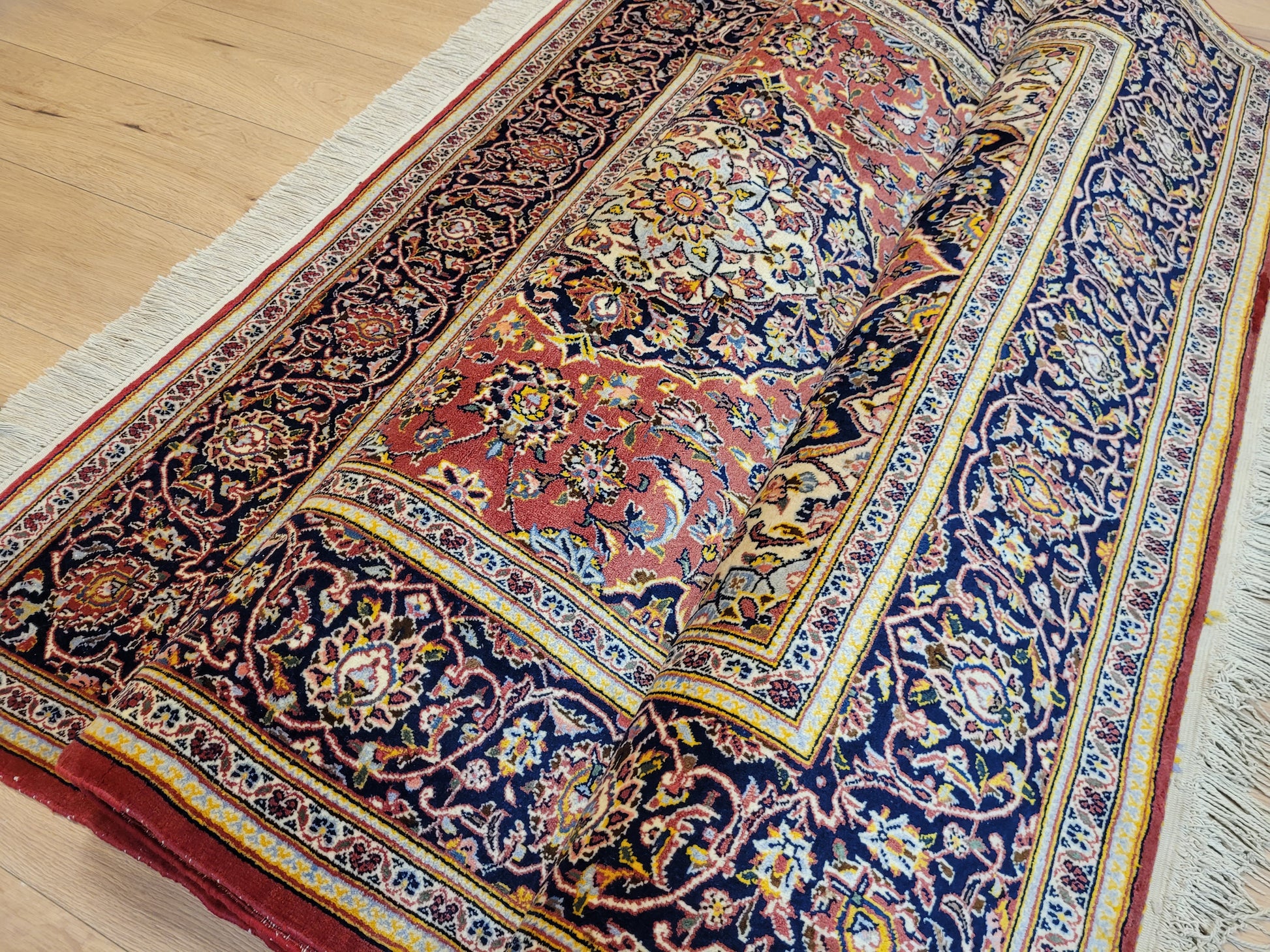 Traditionelle Handknüpfung, detailreiche Musterung, feine Knüpfqualität.