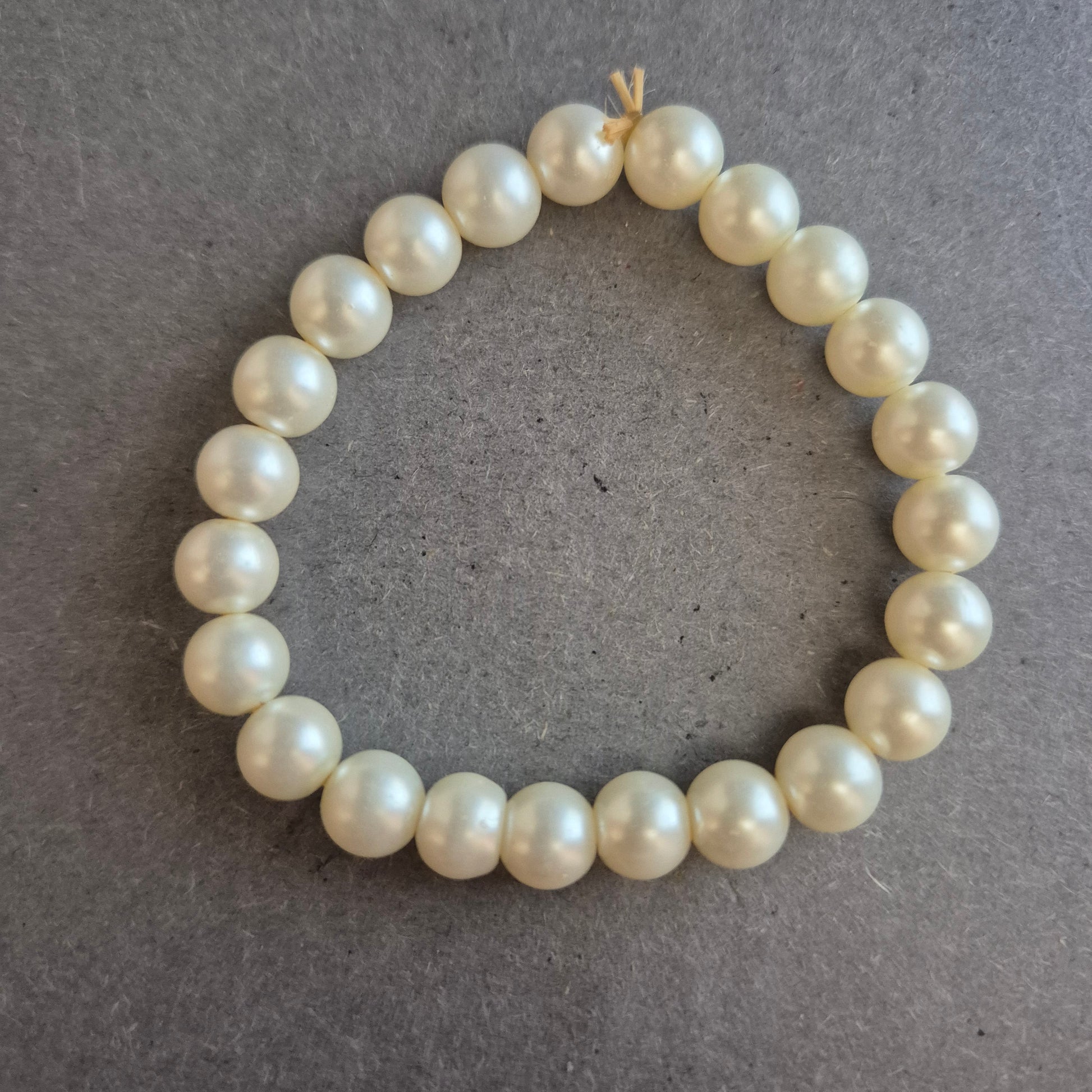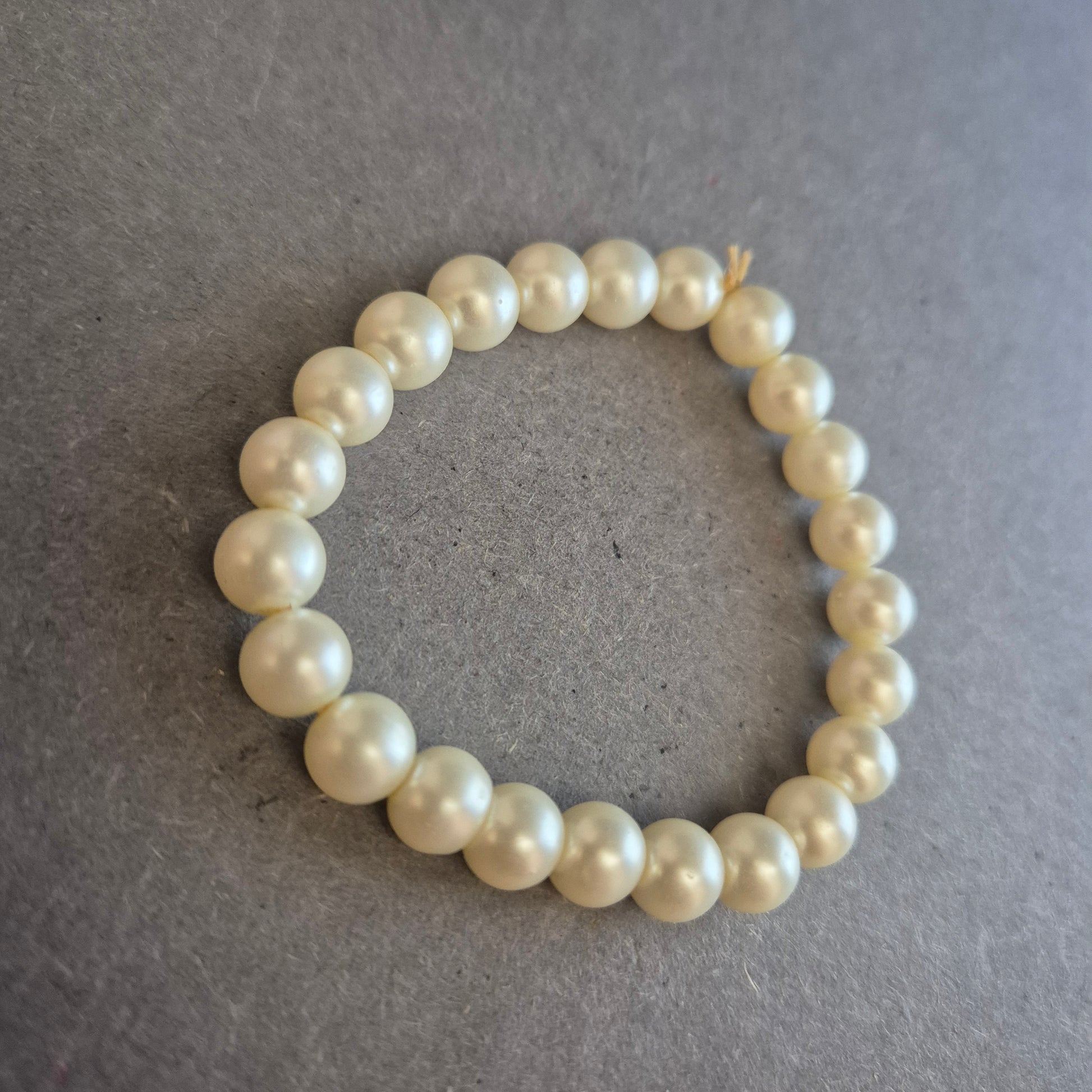 Klassisches Stretch-Perlenarmband – Eleganter Look in Cremeweiß