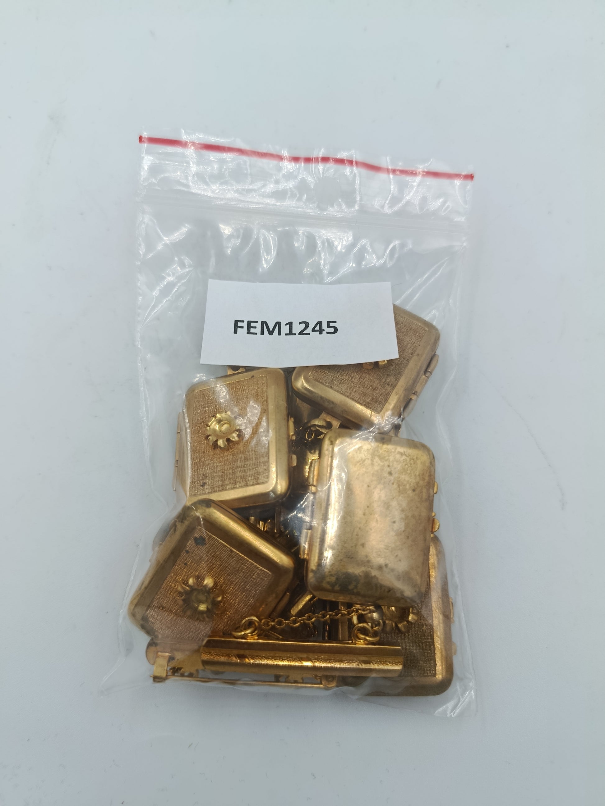 Attraktives Konvolut aus mehreren kleinen Medaillon-Anhängern in goldfarbener Metalloptik. Die rechteckigen Klappmedaillons sind unterschiedlich gestaltet und teilweise mit feinen Zierdetails versehen. Ideal für Bastler, Sammler oder zur Weiterverarbeitung in Schmuckprojekten. Der charmante Vintage-Charakter macht dieses Set besonders vielseitig einsetzbar.