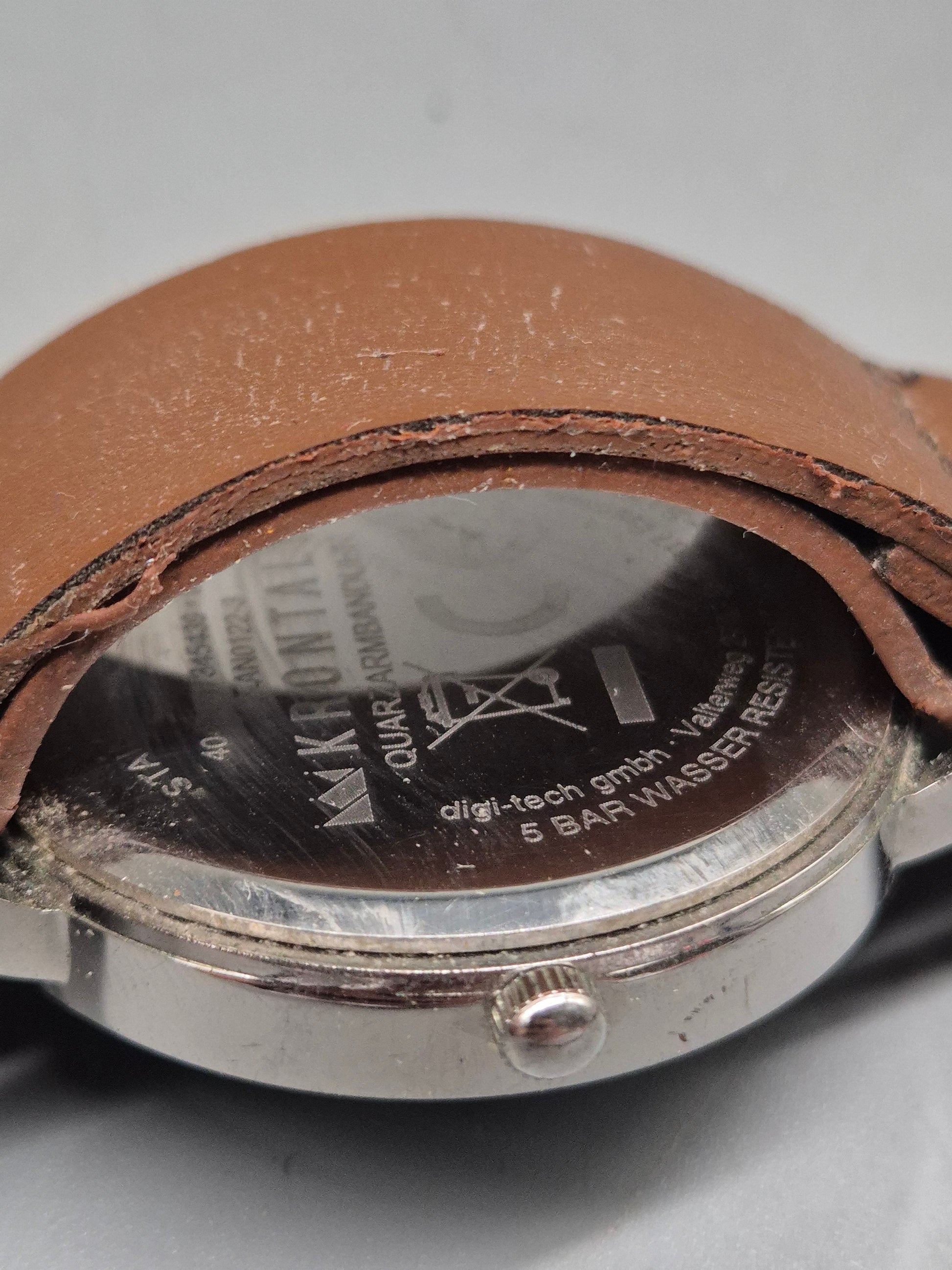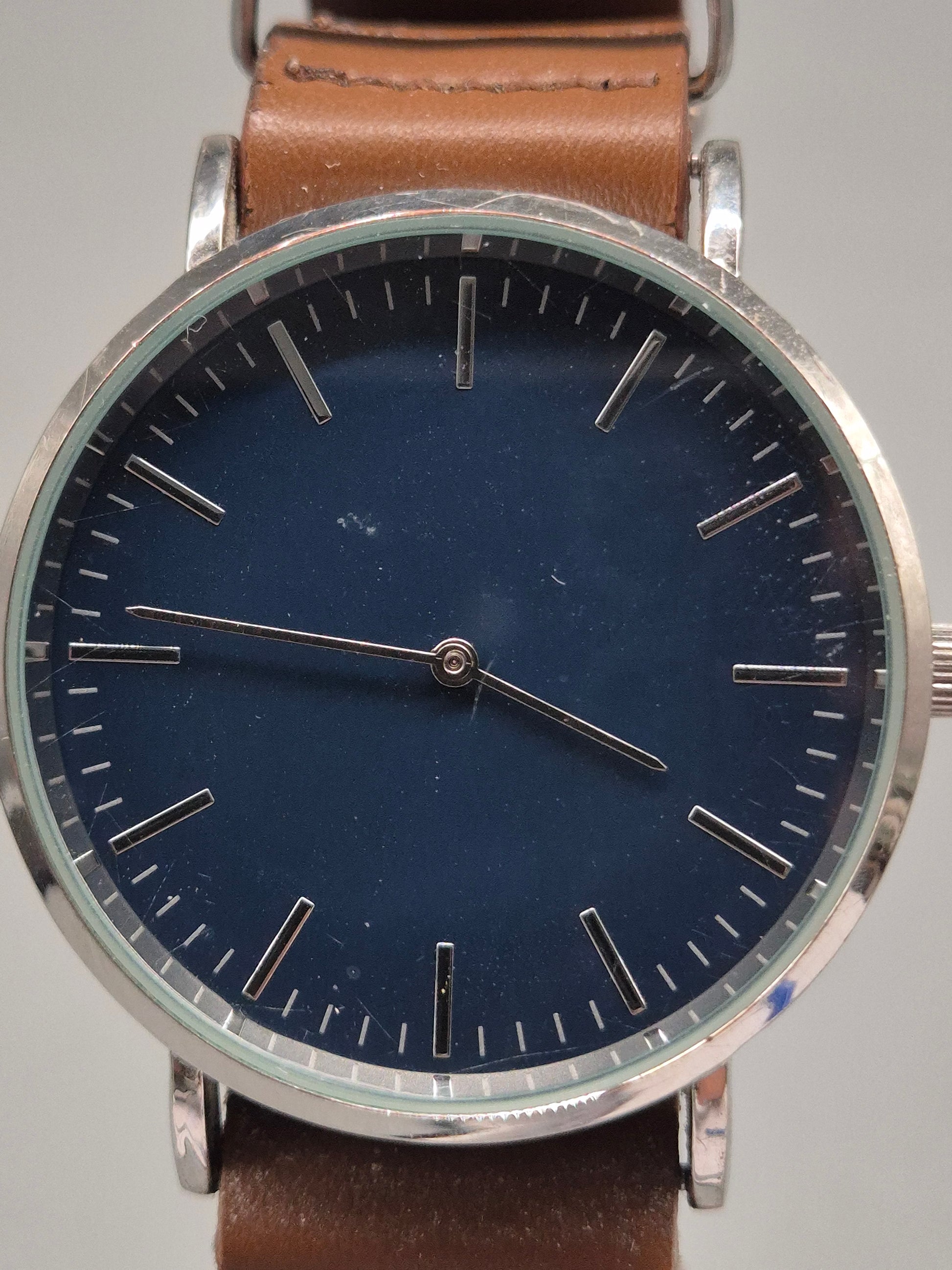 Diese Herren Uhr von Krontaler kombiniert klassische Eleganz mit moderner Zurückhaltung. Das tiefblaue Zifferblatt ist klar strukturiert und frei von Zahlen, wodurch ein besonders aufgeräumter Look entsteht. Das braune Echtlederarmband sorgt für angenehmen Tragekomfort und verleiht der Uhr einen zeitlosen Charakter. Ideal für den Alltag oder das Büro.