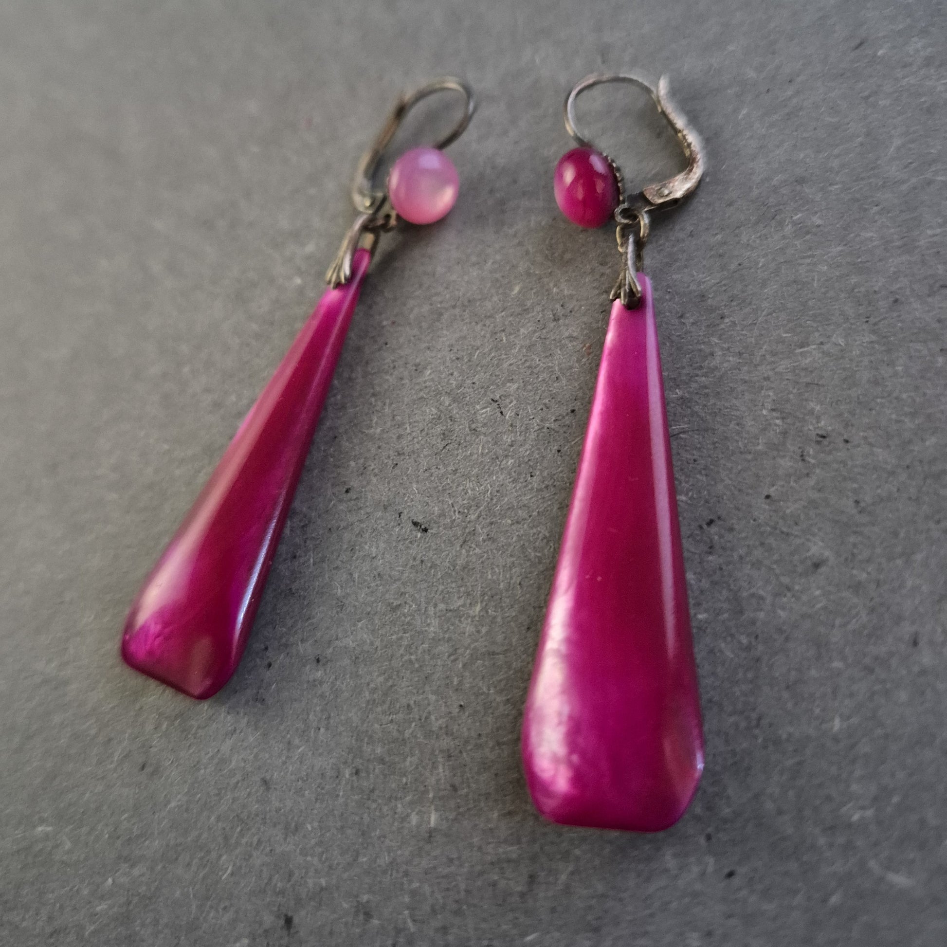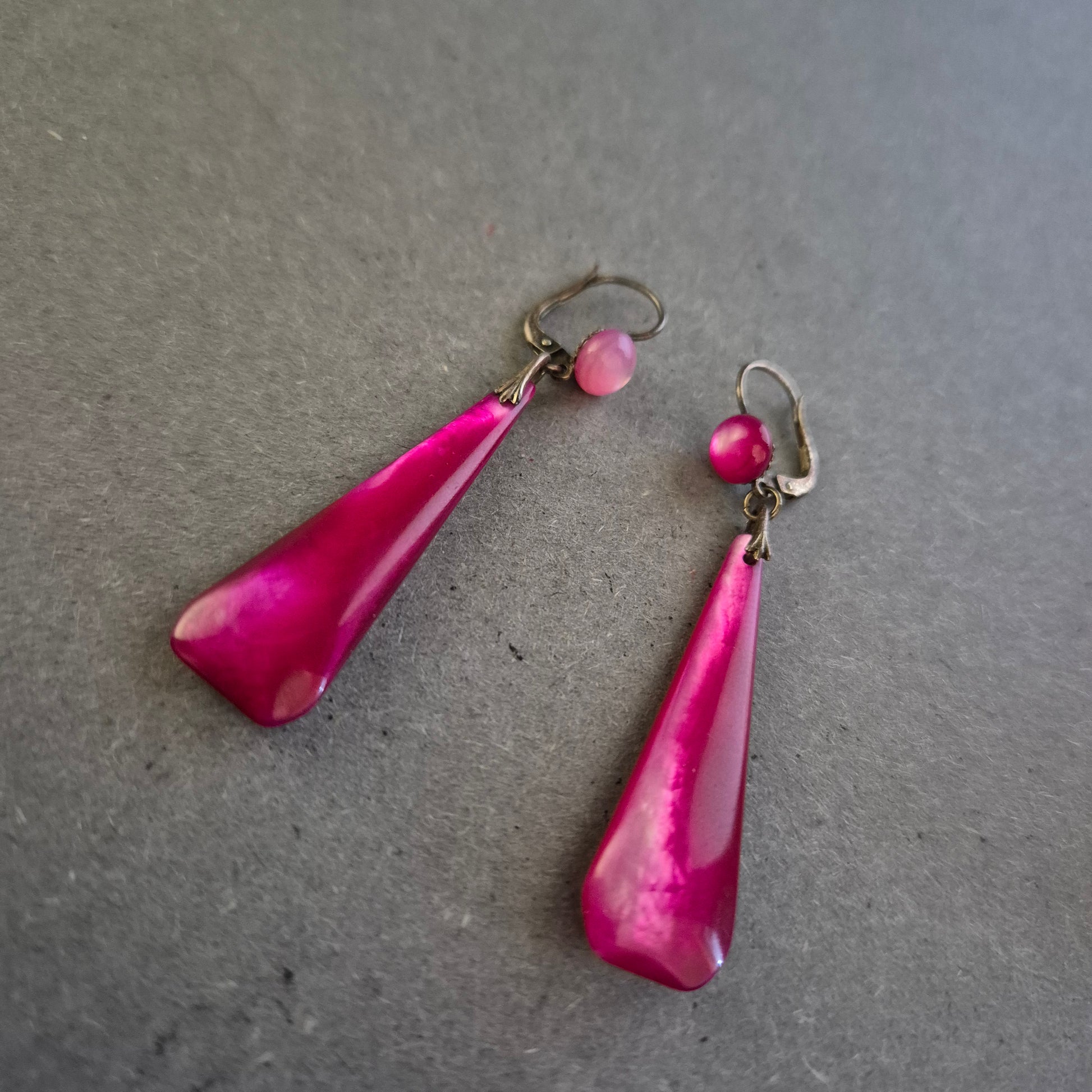 Lange Vintage-Ohrringe in Magenta – Elegante Tropfenform mit Retro-Flair