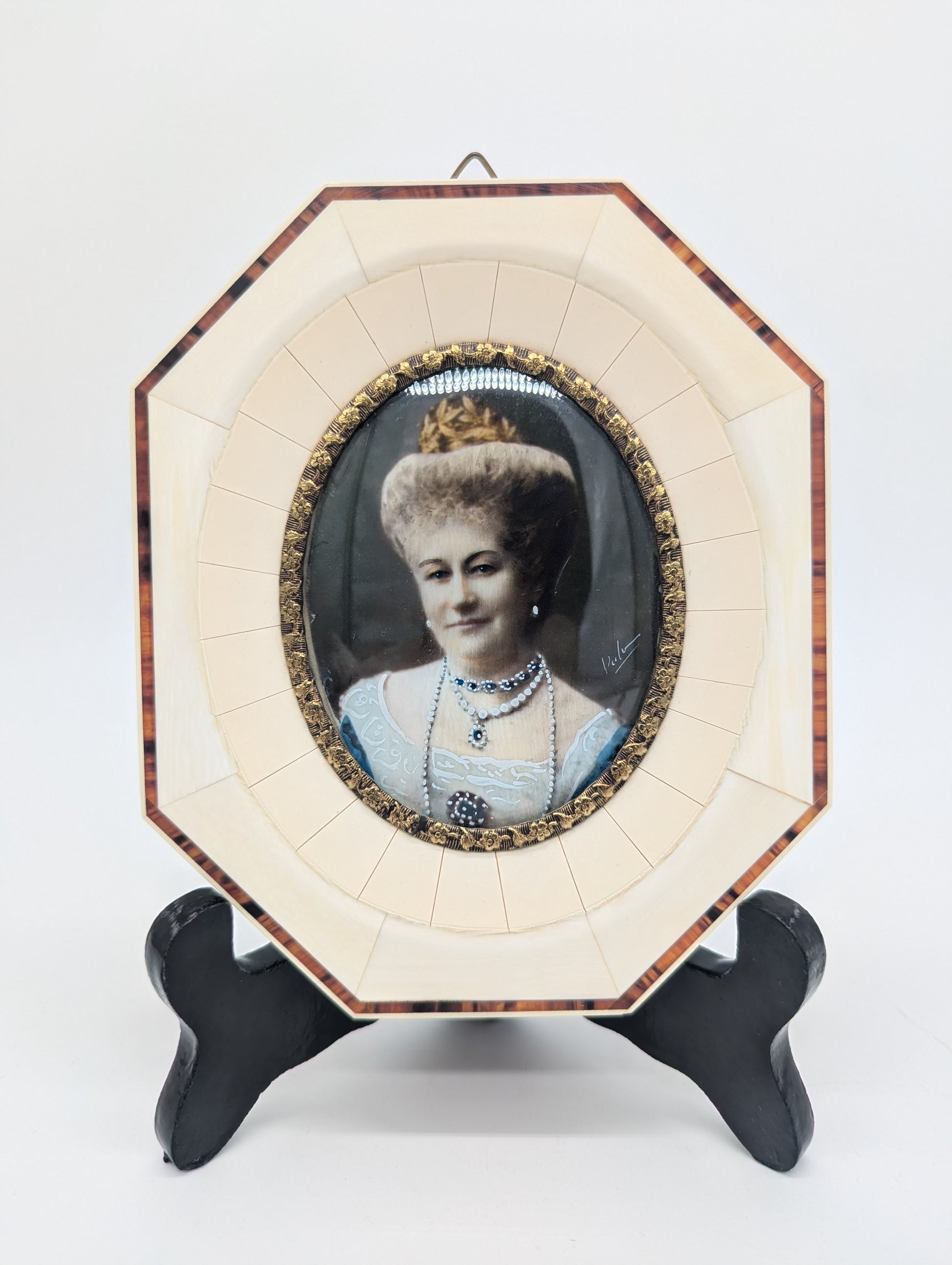 Lupenmalerei Miniaturmalerei Porträt Auguste Viktoria im verzierten Rahmen