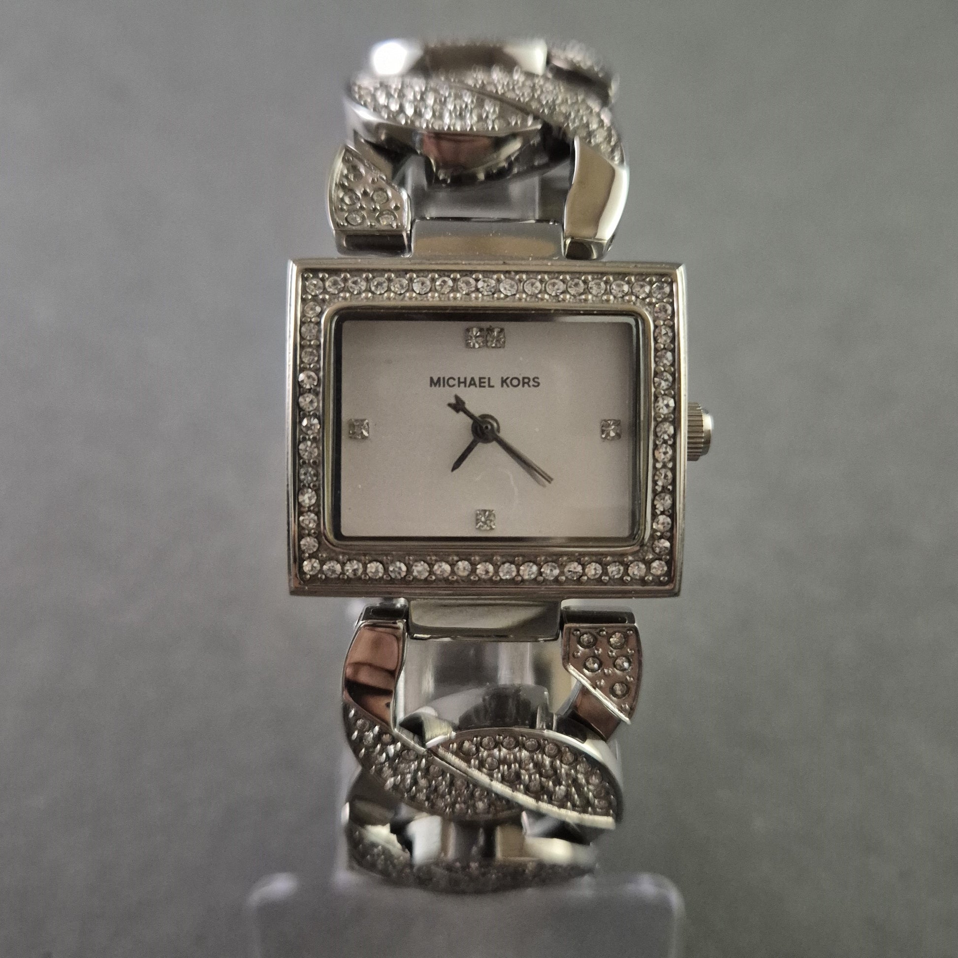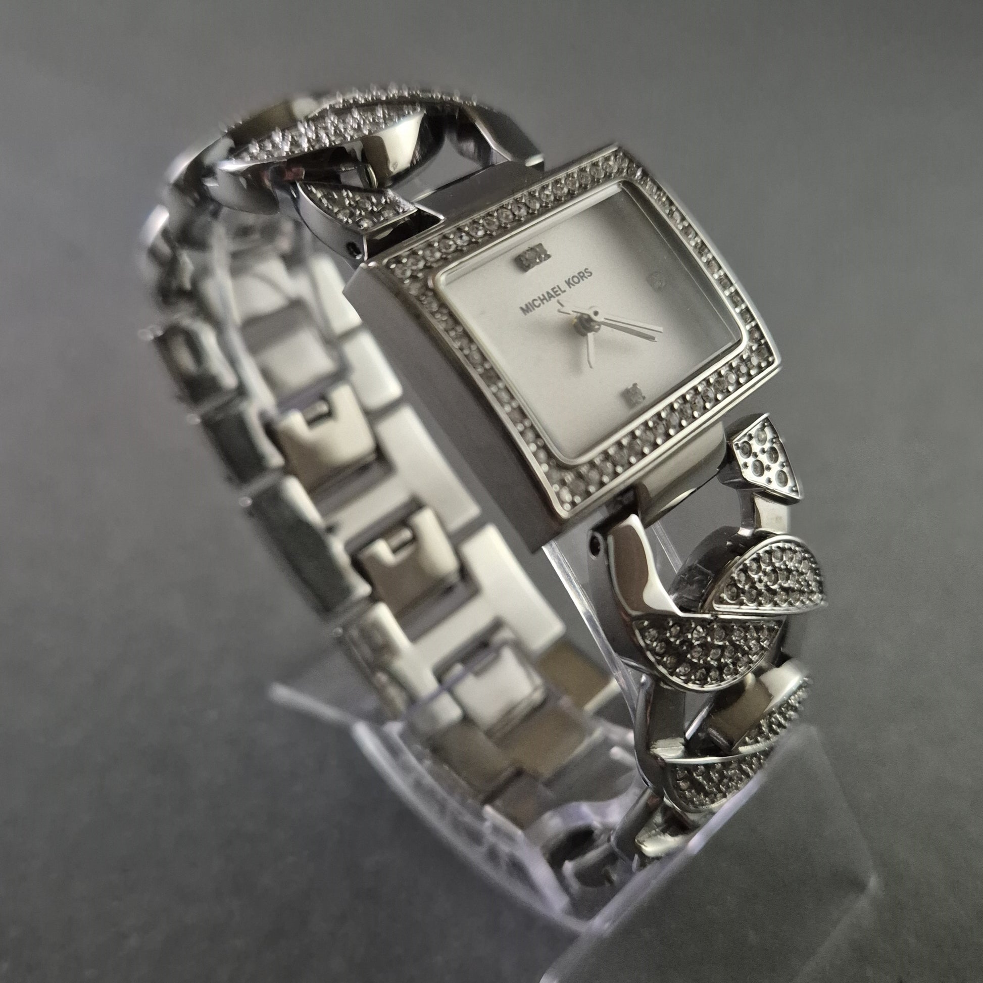 Diese luxuriöse Michael Kors Damenarmbanduhr vereint Eleganz und Glamour in einem einzigartigen Design. Das quadratische Zifferblatt mit funkelnden Kristallen verleiht der Uhr eine edle Ausstrahlung, während das markante Gliederarmband mit zusätzlichen Strass-Elementen ein modisches Statement setzt. Mit 5 ATM Wasserdichtigkeit und hochwertigem Edelstahlgehäuse ist diese Uhr nicht nur ein stilvolles Accessoire, sondern auch alltagstauglich.