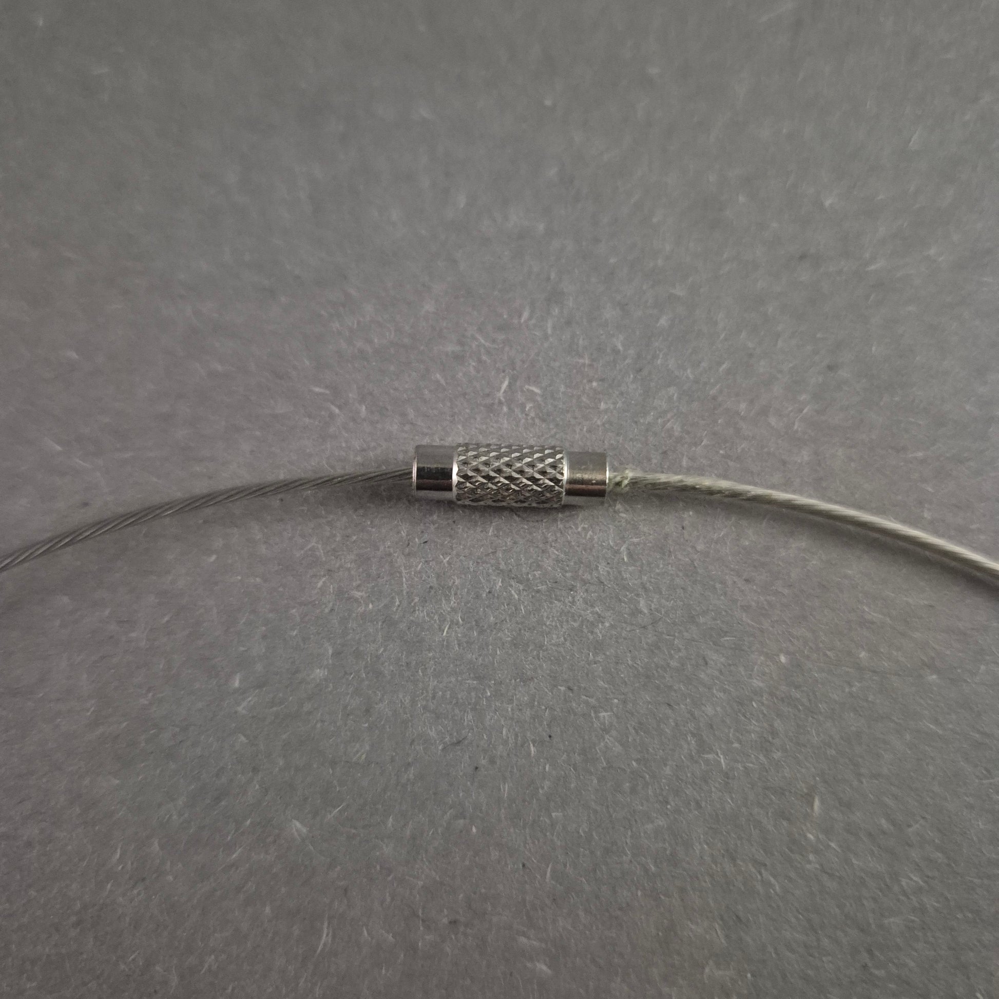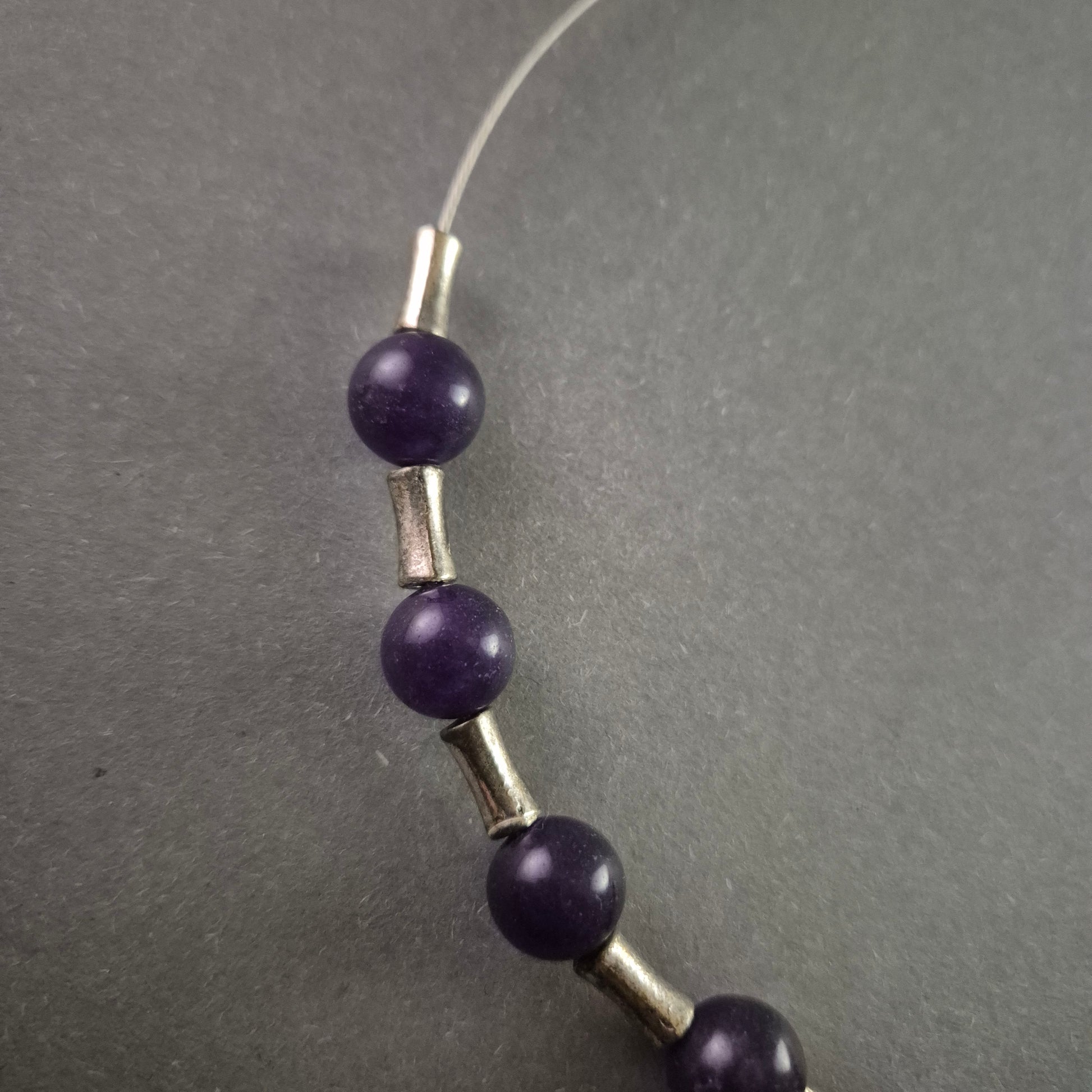 • Material: Amethyst (unbestätigt), Metallröhrchen, Drahtseil