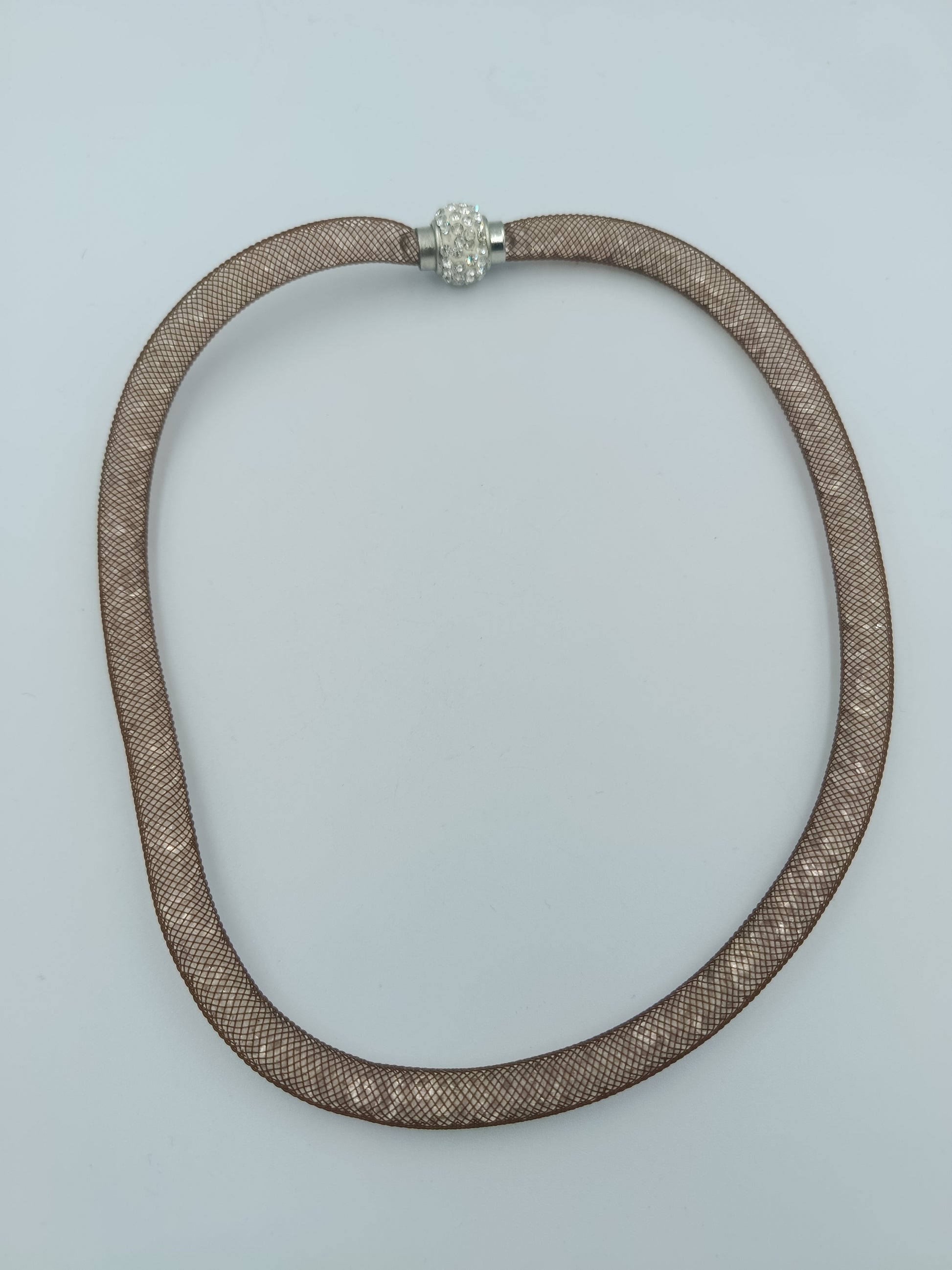 Moderne Netz-Halskette in Beige mit Strassverschluss