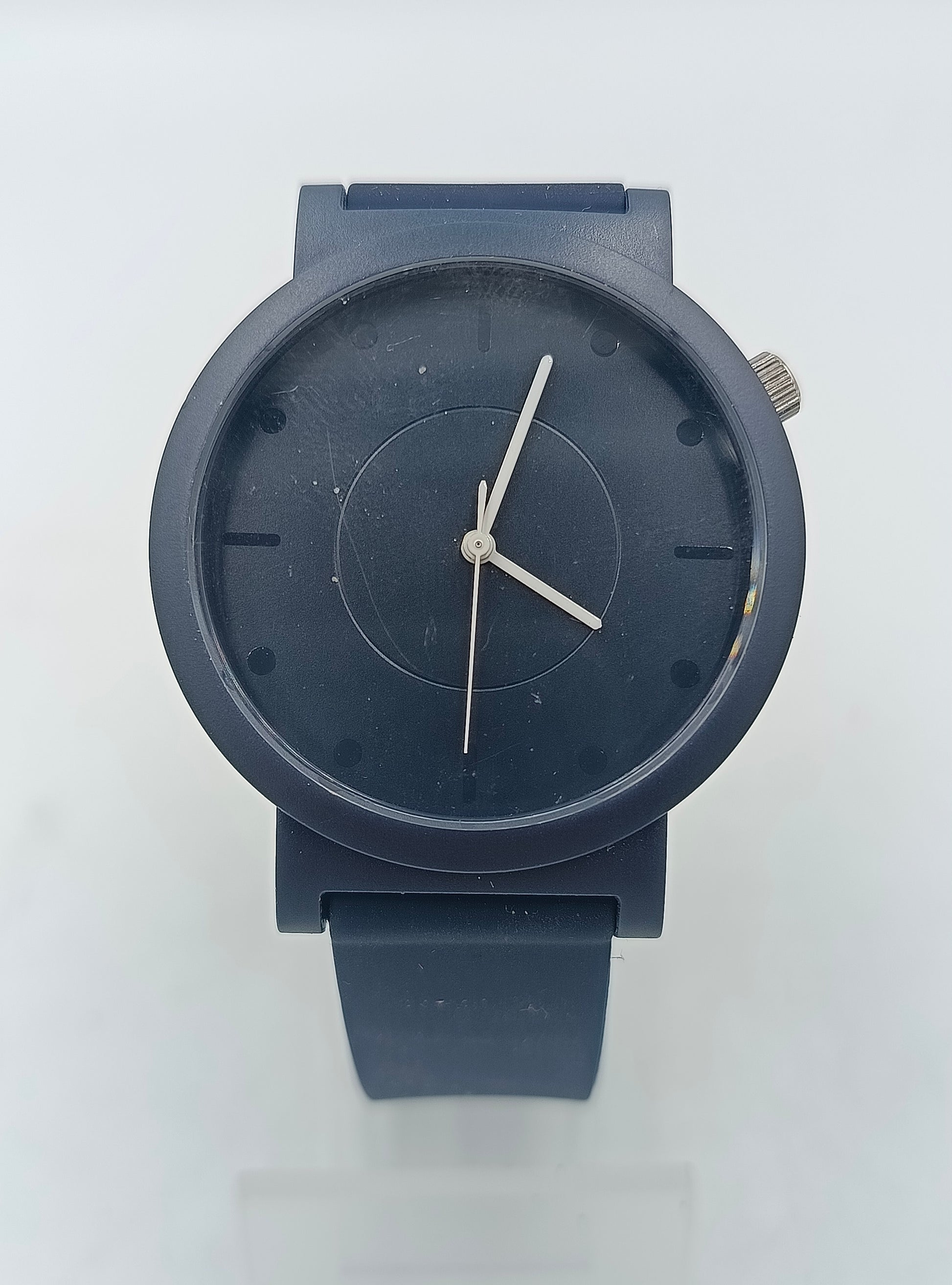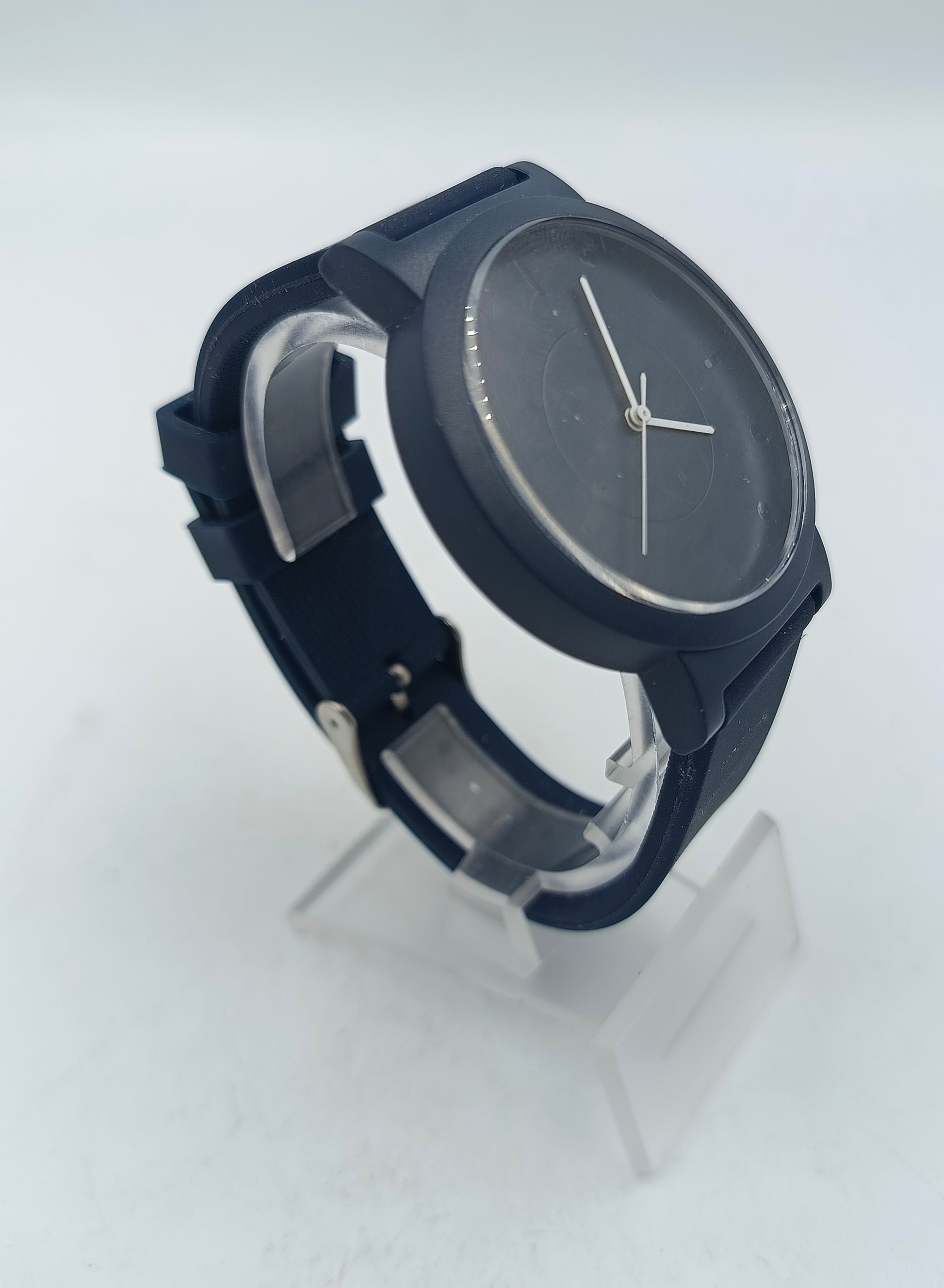 Diese moderne, minimalistische Armbanduhr ist ein stilvolles Accessoire für jeden Tag. Die komplett schwarze Farbgebung, kombiniert mit einem schlichten Zifferblatt und weißen Zeigern, sorgt für einen klaren, zeitgenössischen Look. Das weiche Silikon- oder Kautschukarmband bietet einen angenehmen Tragekomfort und schmiegt sich gut ans Handgelenk.