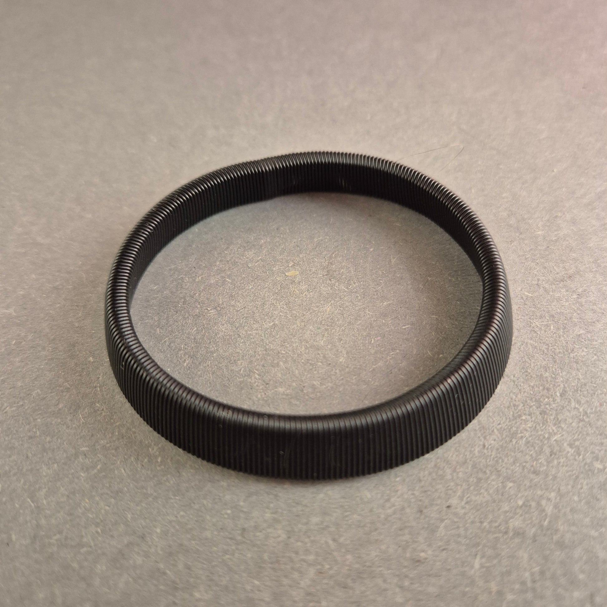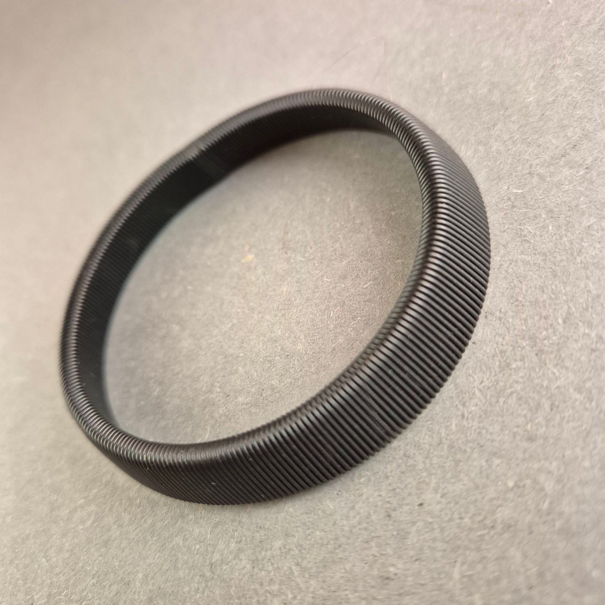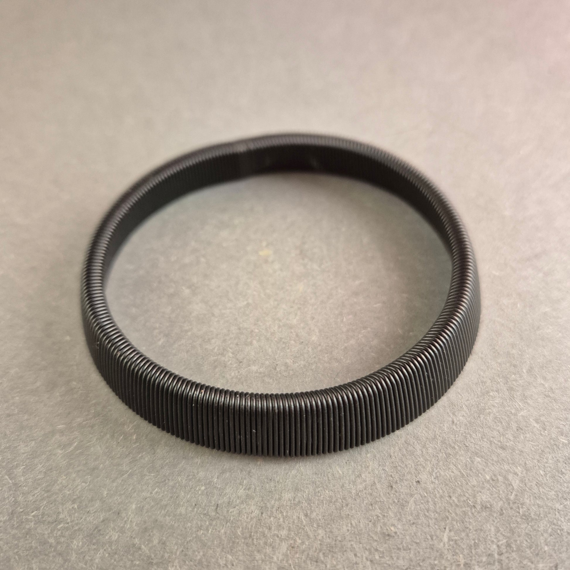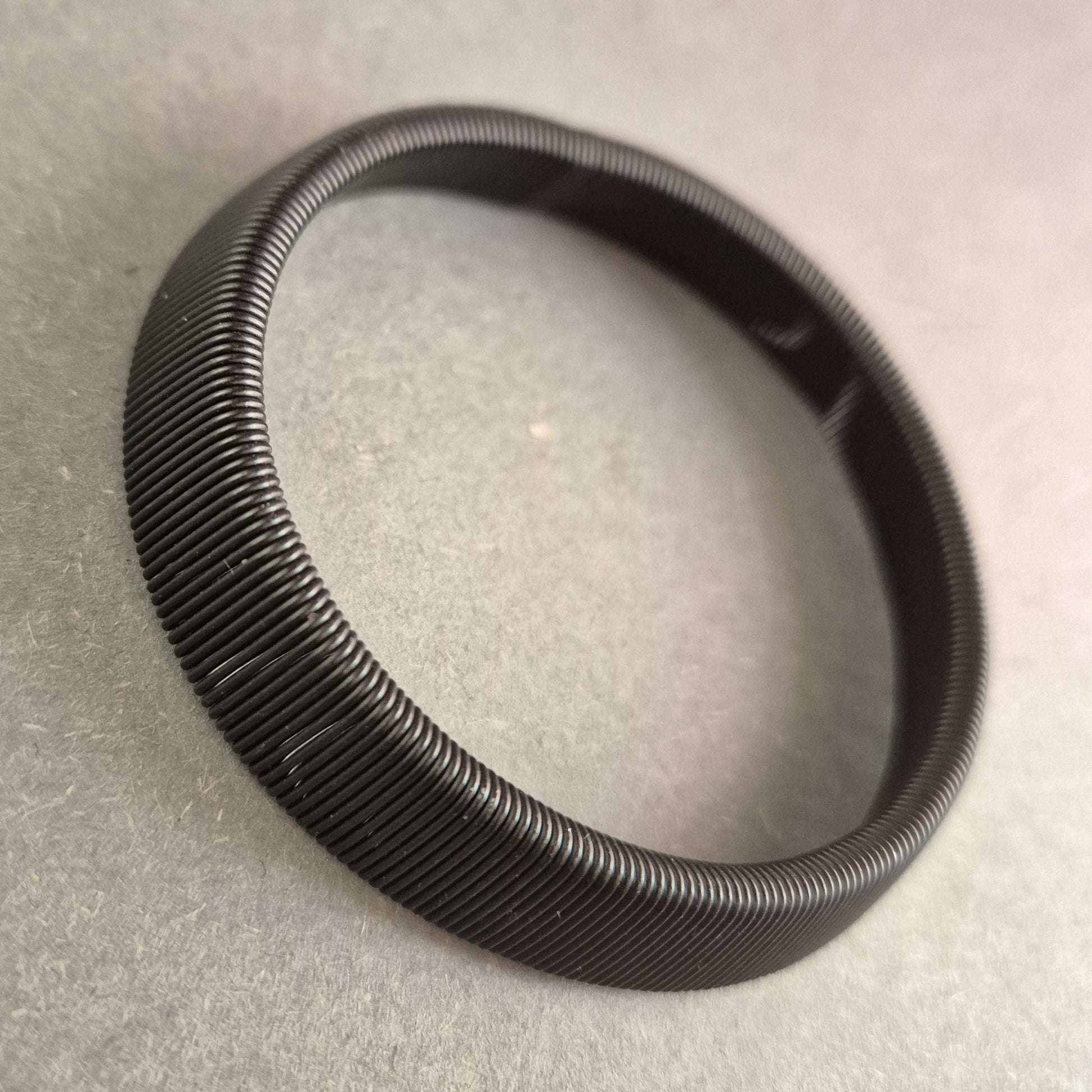 Dieser stilvolle schwarze Armreif besticht durch sein schlichtes, aber markantes Design. Die feine Rillenstruktur verleiht ihm eine besondere Haptik und einen modernen Look. Perfekt für Liebhaber minimalistischer Accessoires, die Wert auf Eleganz und Understatement legen.