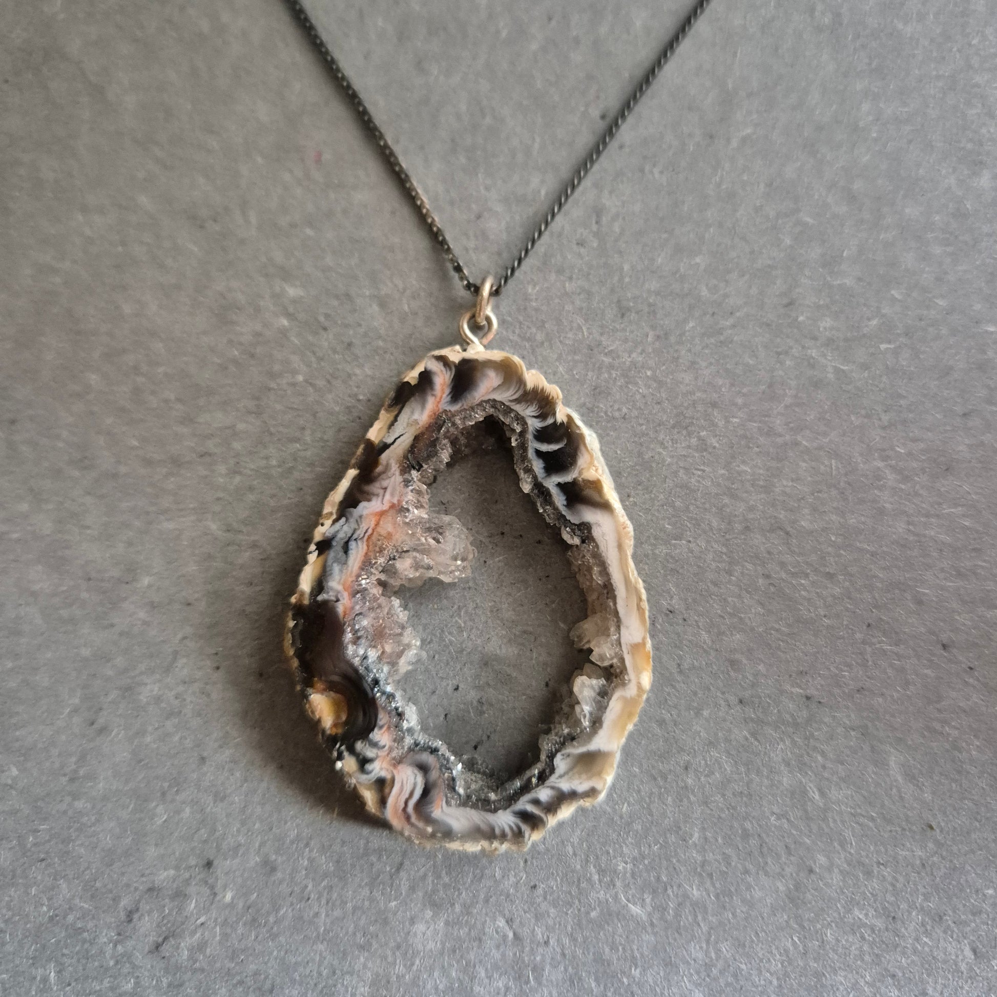 Natürliche Drusenachat-Kette – Unikat mit Rohstein-Charakter