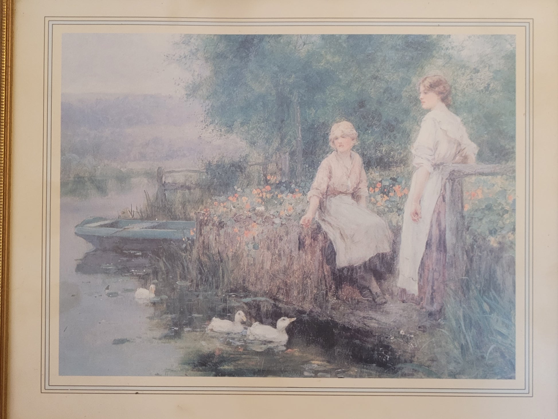 Nostalgischer Kunstdruck "Am Wasserrand" mit Blick aufs Ufer
