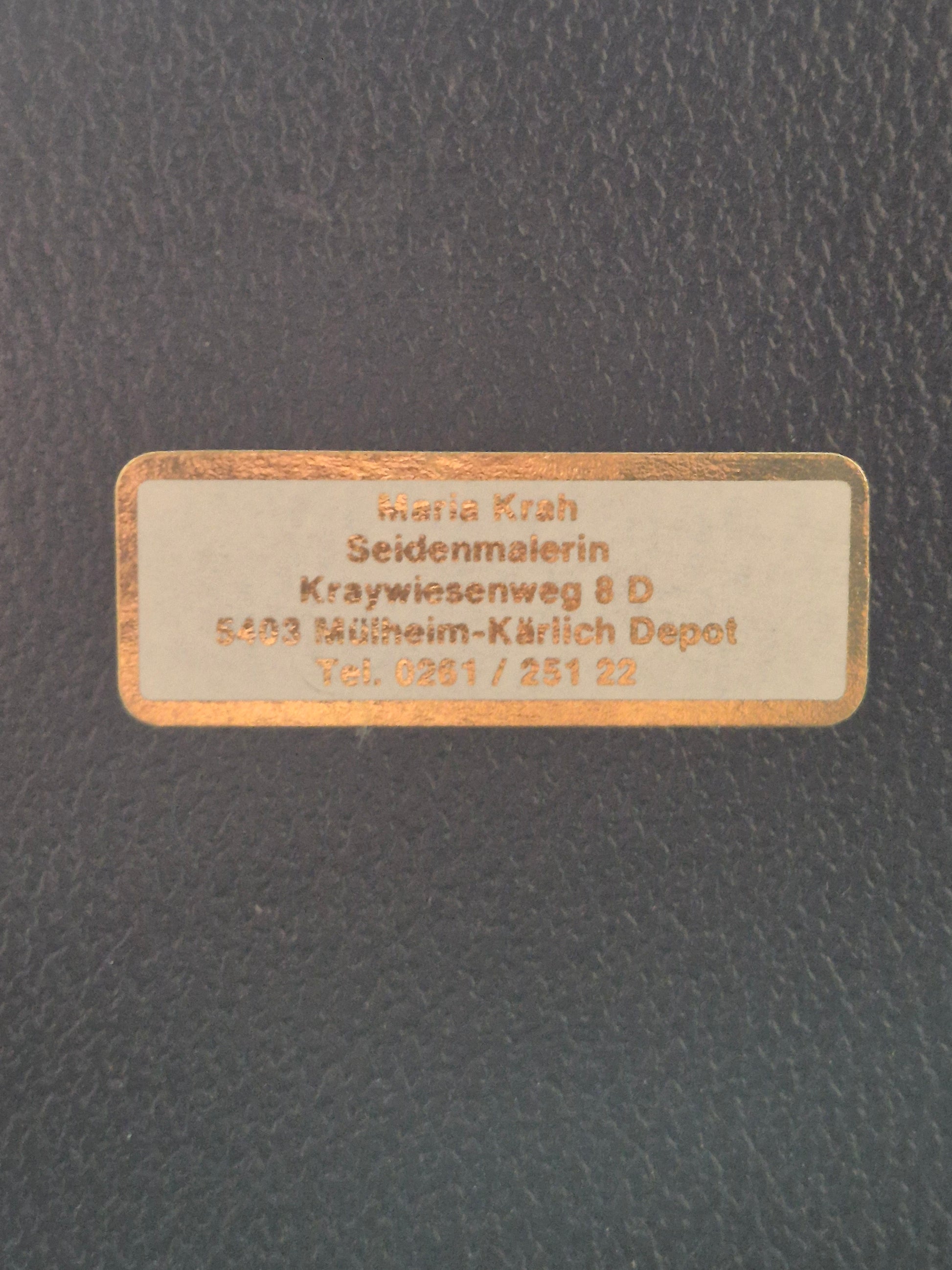 Herzlich willkommen, angeboten wird eine stimmungsvolle Seidenmalerei von Maria Krah. In naiver Malweise dargestellt, zeigt das Werk eine idyllische Winterlandschaft mit schneebedeckten Häusern und kahlen Bäumen, die den Charme der kalten Jahreszeit einfängt. Die weichen Farben und die stilisierte Darstellung verleihen dem Bild eine besondere Wärme und Nostalgie.