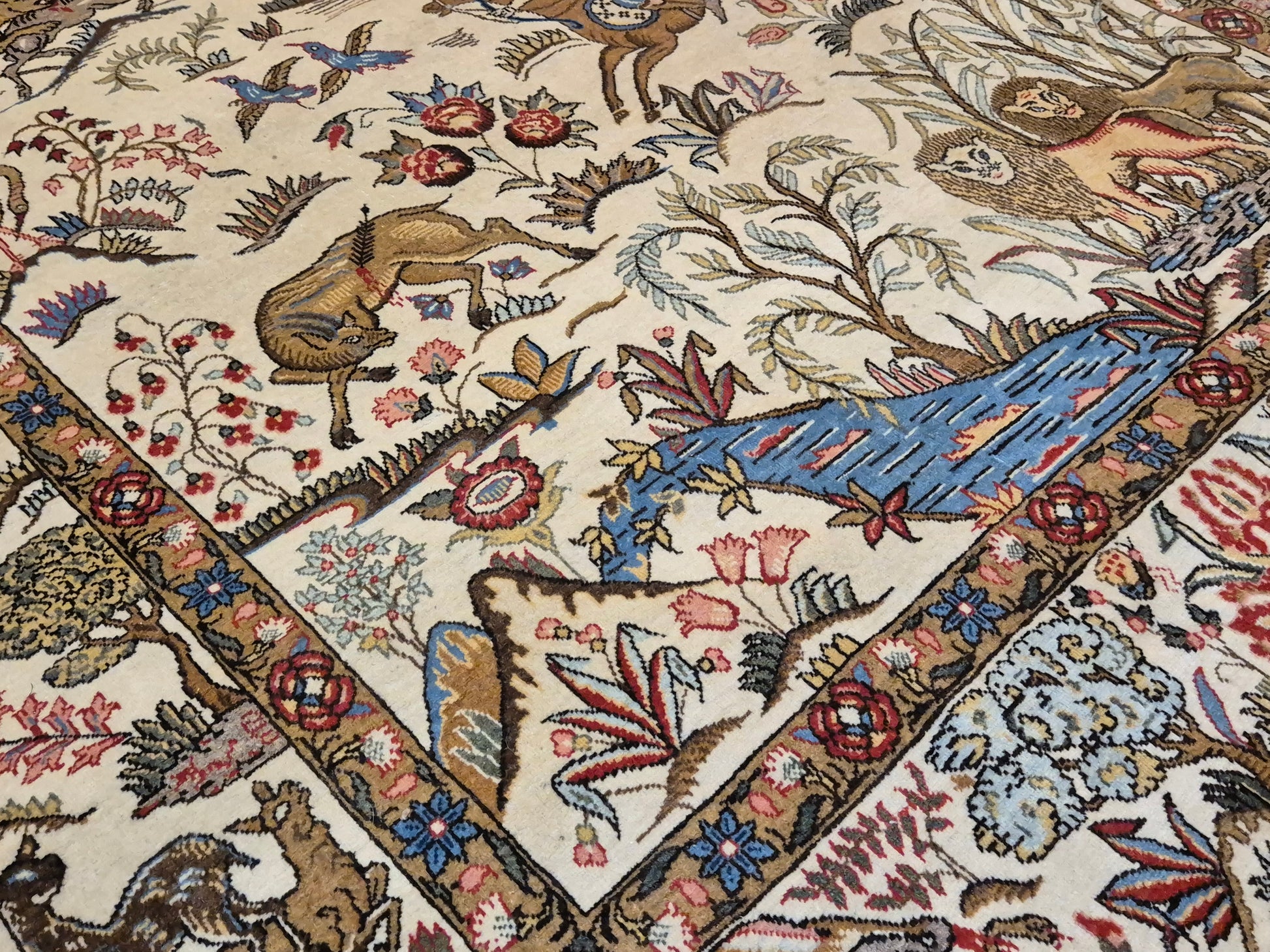 Orientteppich Ghom Teppich – Korkwolle, Jagdszene, semi-antik