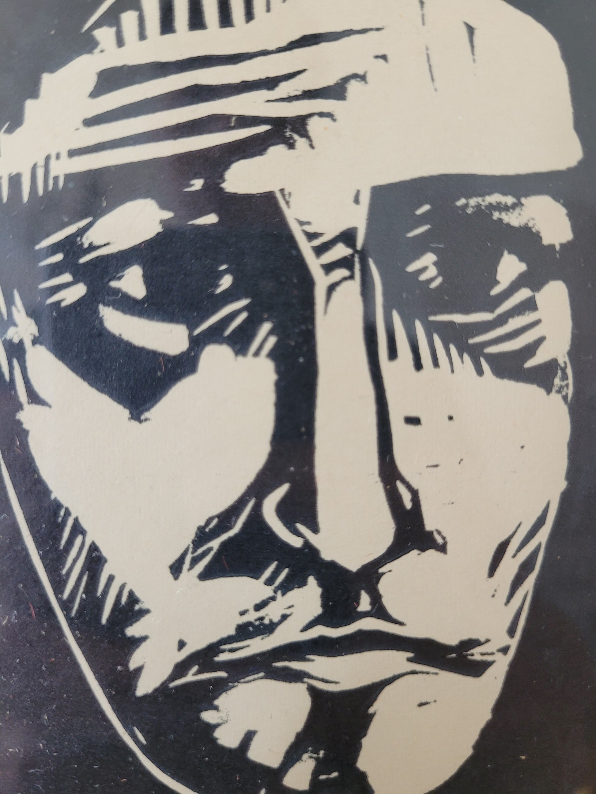 Diese eindrucksvolle Grafik zeigt eine Bäuerin in klarer, handwerklich präziser Darstellung. Der Holzschnitt besticht durch seine kraftvolle Linienführung und die charakteristische Struktur des Materials, die dem Motiv besondere Tiefe und Ausdruck verleiht. Die hochwertige Rahmung unter Glas schützt das Werk und betont seine künstlerische Wirkung.