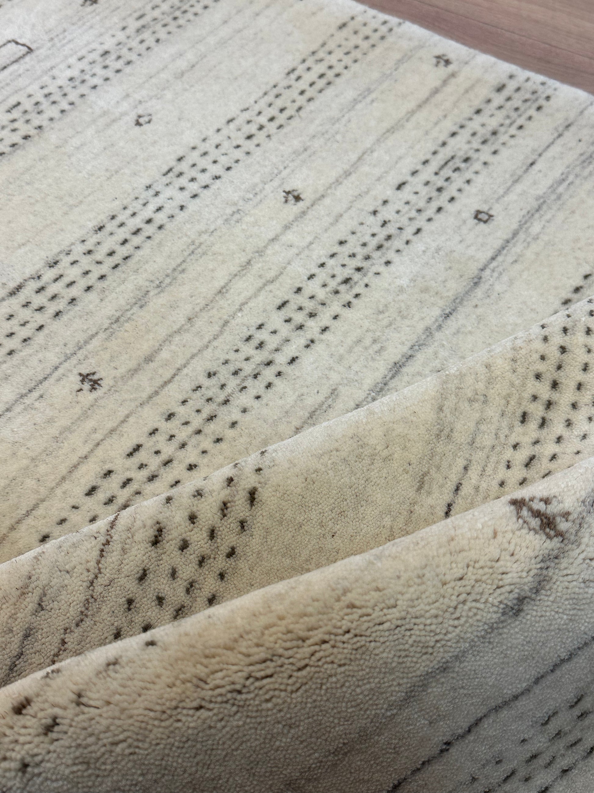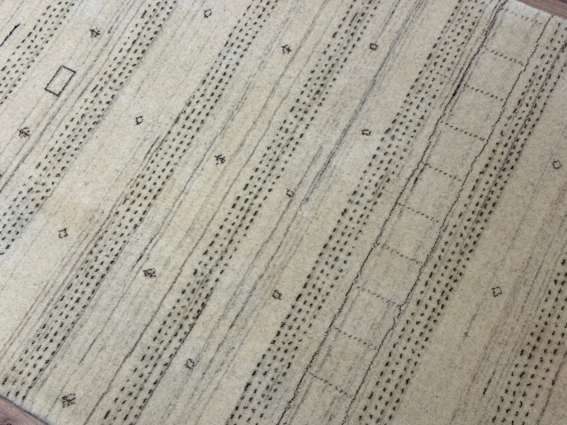 Dieser wunderschöne Gabbeh-Perserteppich besticht durch seine sehr feine Handknüpfung und das moderne, schlichte Design. Das neue Stück vereint traditionelle Handwerkskunst mit zeitloser Eleganz und hoher Qualität.