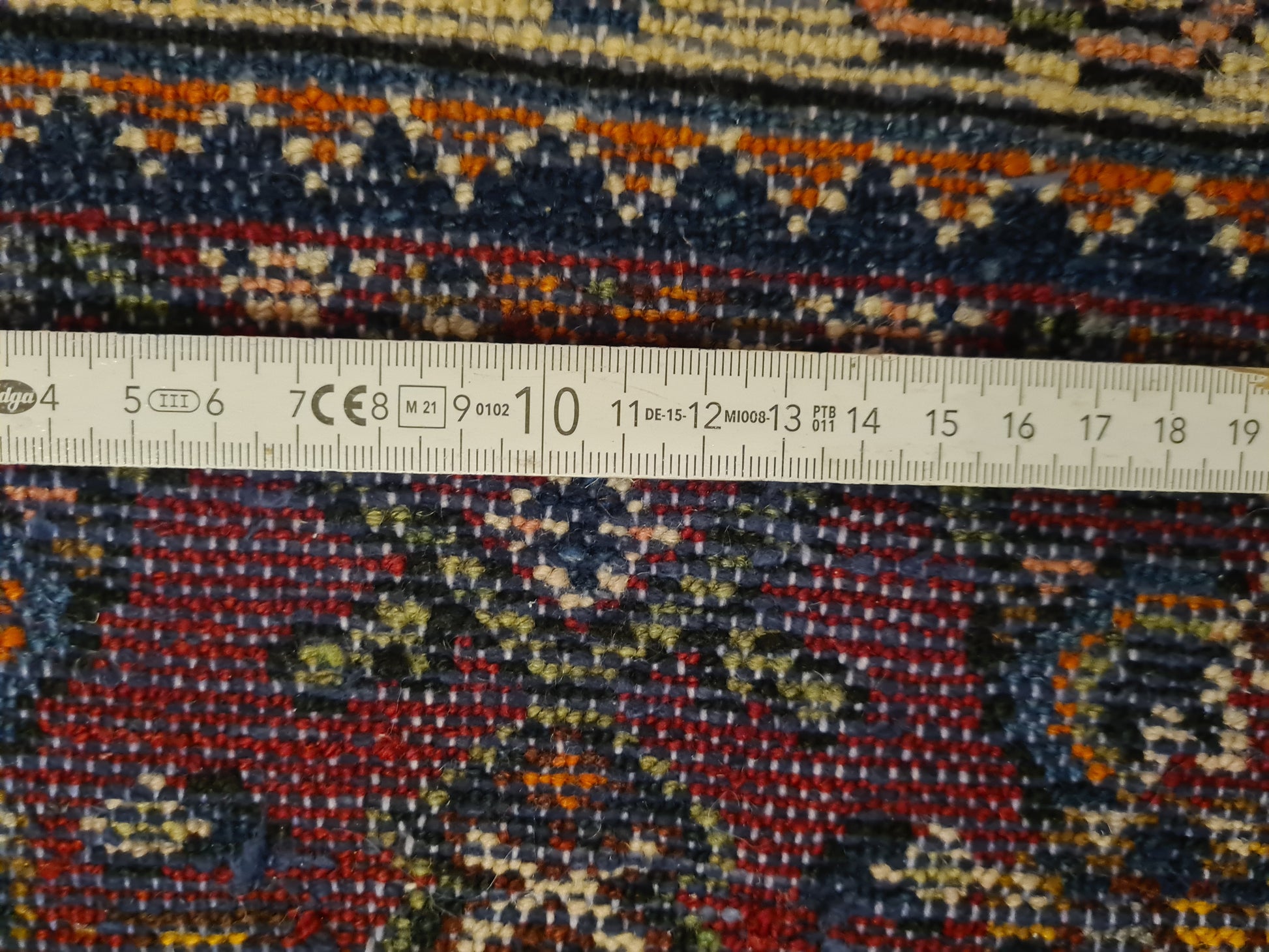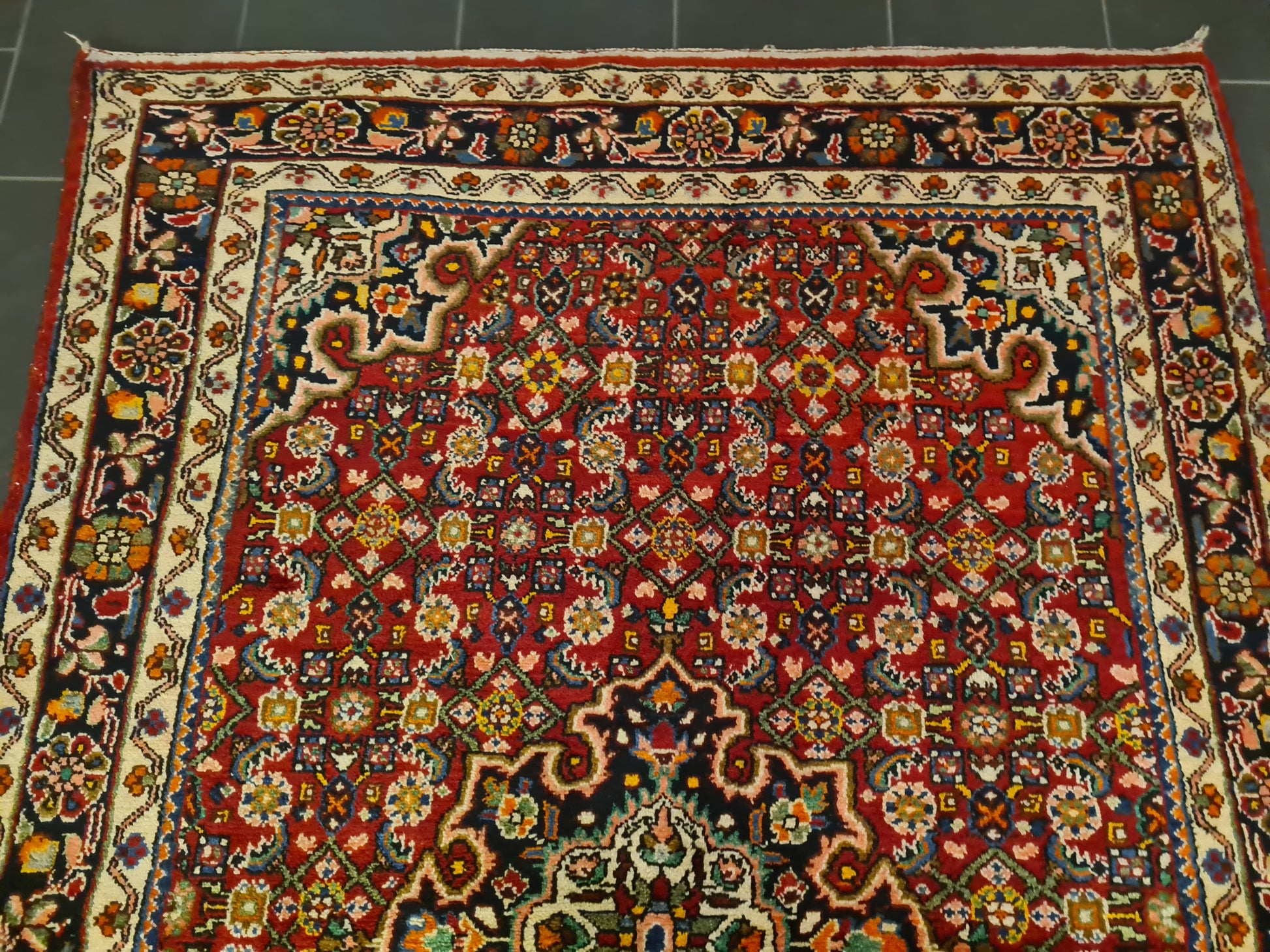 Der Bidjar-Teppich, oft als "Eiserner Teppich des Orients" bezeichnet, besticht durch seine außergewöhnliche Dichte und Robustheit. Dieses Stück verbindet die unvergleichliche Qualität eines Palastteppichs mit dem Charme eines kunstvollen Blumendesigns. Die leuchtenden Farben und die feinen Details machen ihn zu einem wahren Blickfang.
