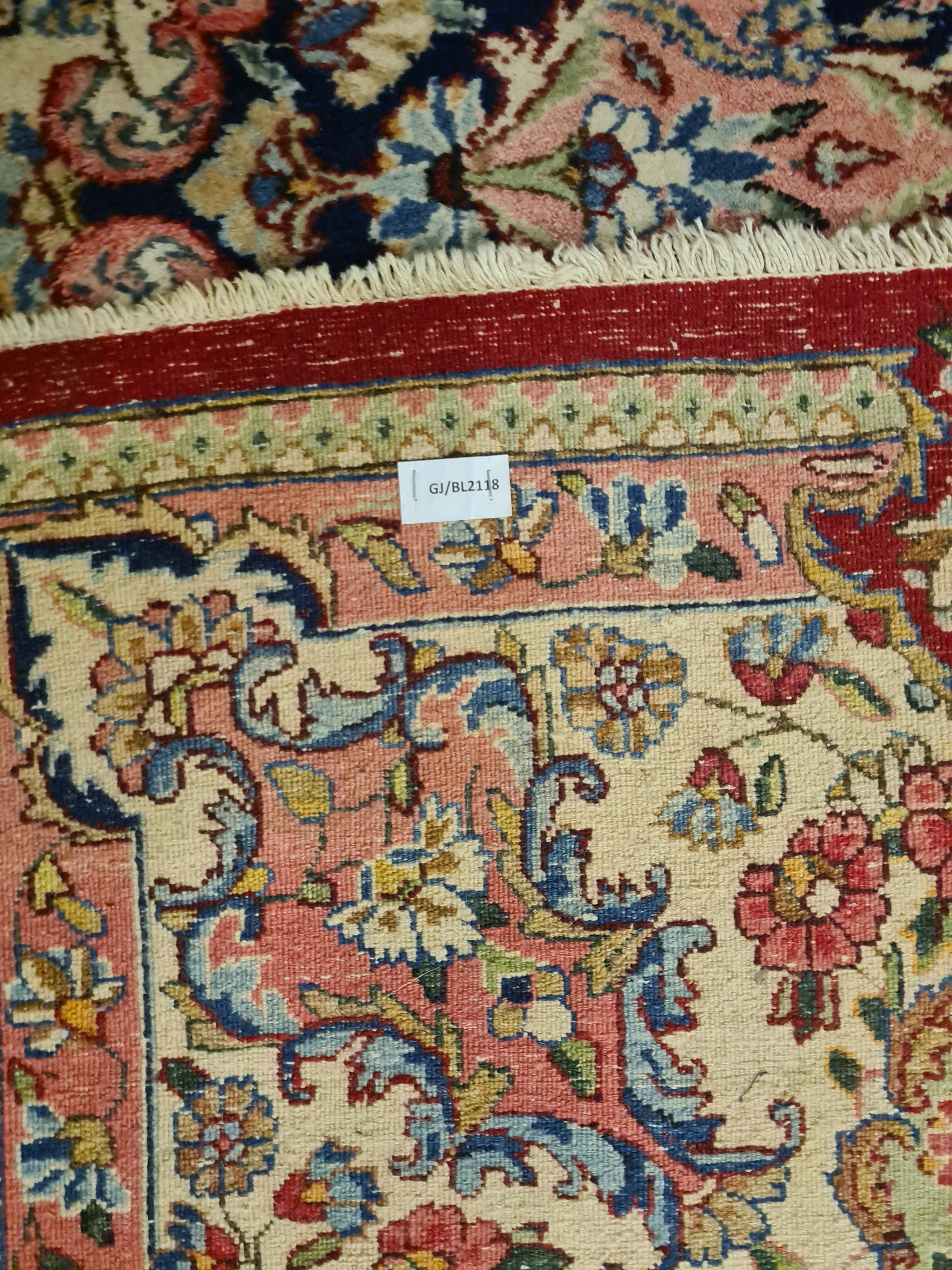 zum Verkauf steht ein prachtvoller handgeknüpfter Perserteppich aus Kirman (Laver Kirman Royal) – ein klassischer Palastteppich in feinster Knüpfqualität. Dieses eindrucksvolle Stück besticht durch seine außergewöhnliche Größe, die harmonische Farbkomposition und die detailreiche florale Ornamentik, typisch für die berühmten Kirman-Teppiche aus dem Süden Irans.
