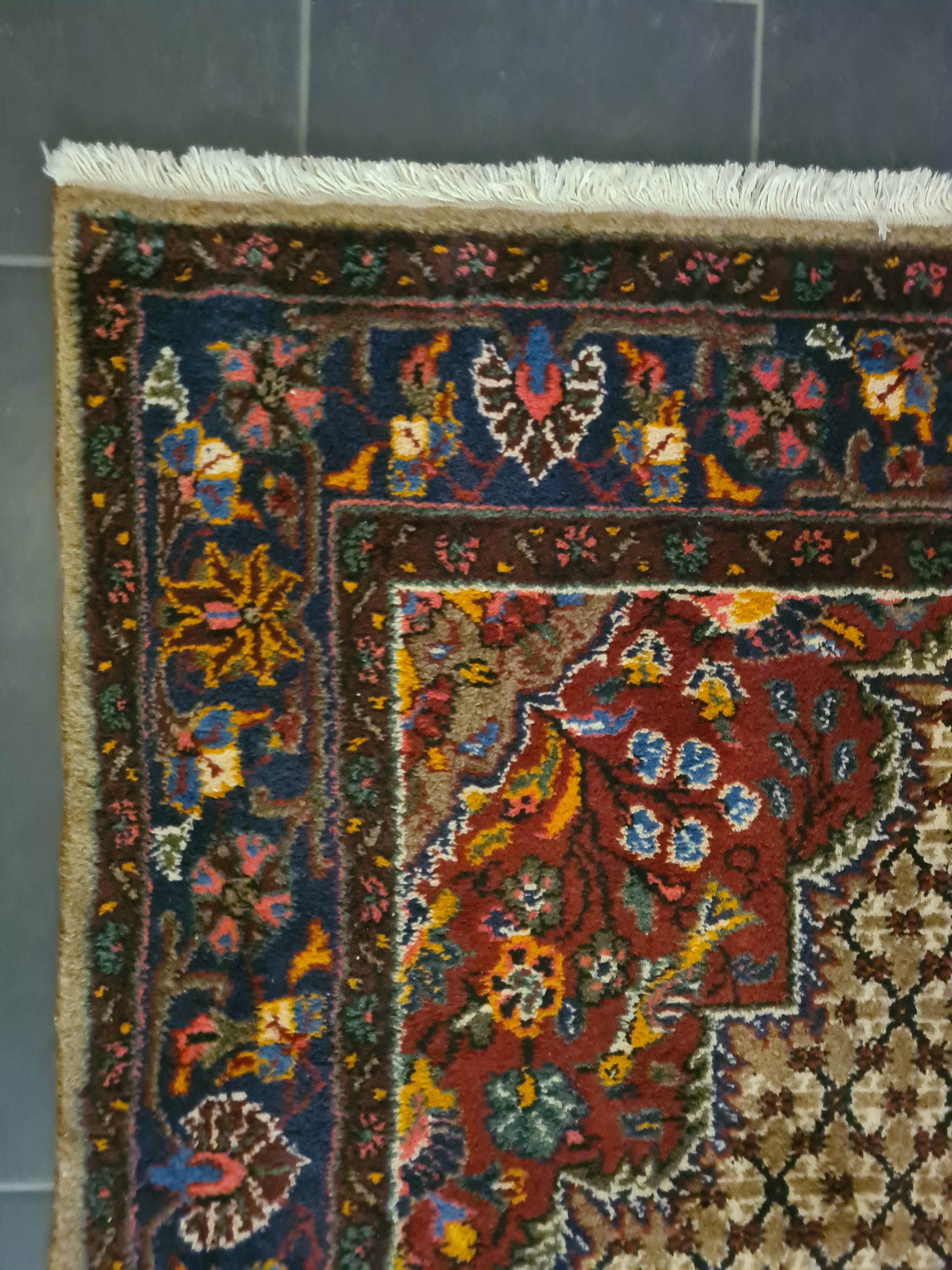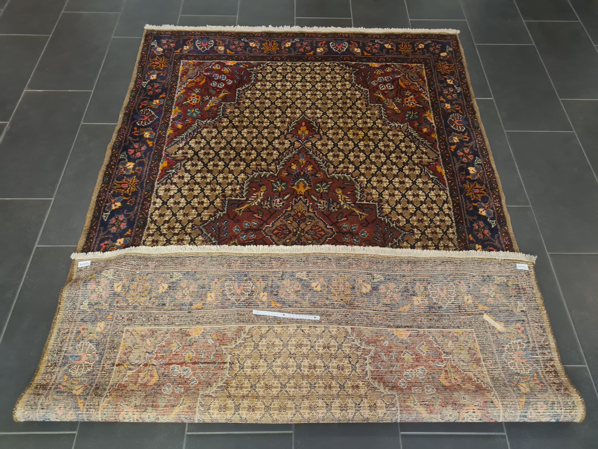 zum Verkauf steht ein antiker, handgeknüpfter Perserteppich „Malaya“. Dieser Orientteppich überzeugt durch seine traditionelle Knüpfkunst, detailreiche Musterung und warme Farbtöne. Mit seinen großzügigen Maßen eignet er sich ideal als dekorativer Blickfang für Wohn- oder Arbeitsräume.