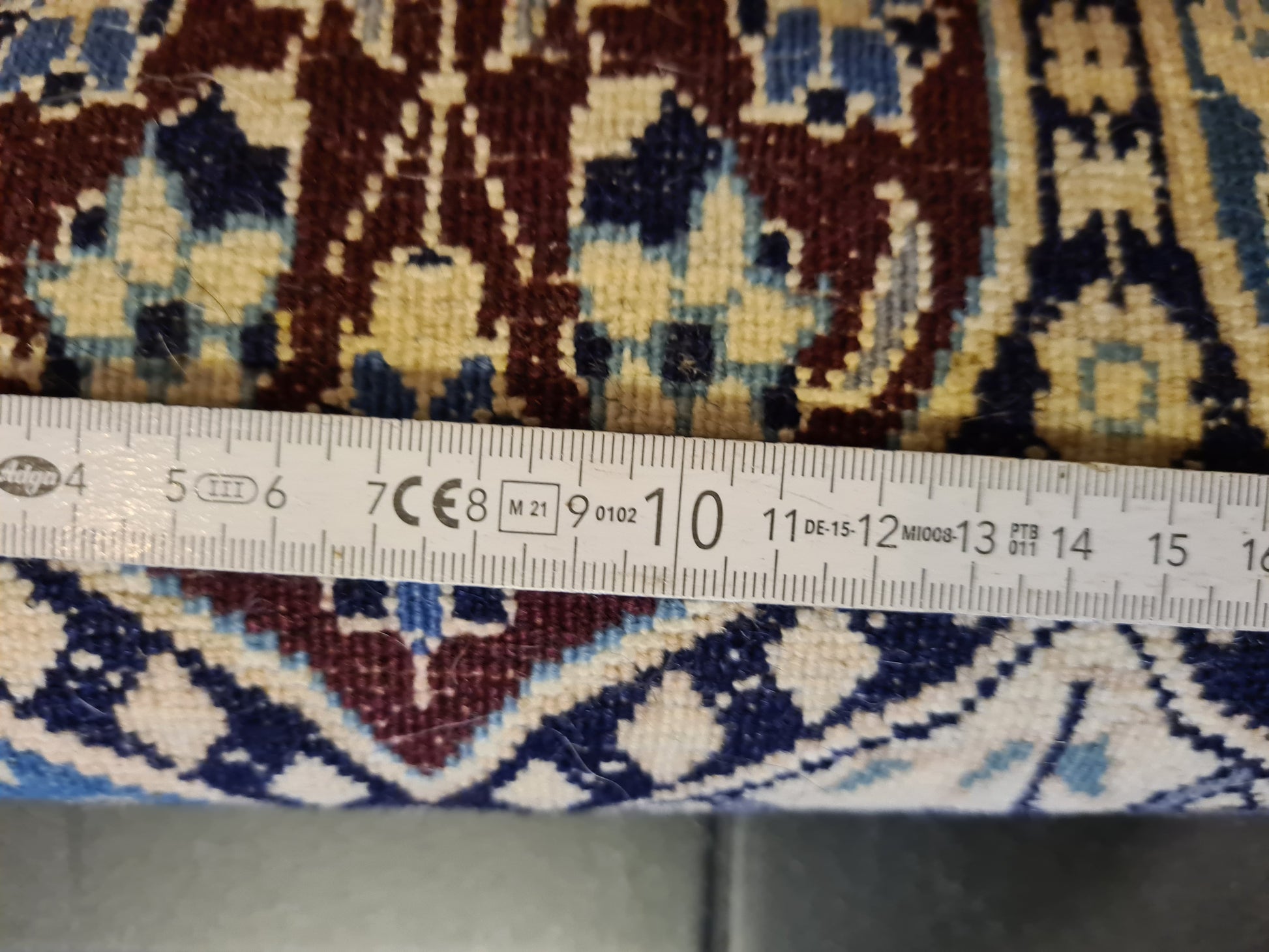 Erleben Sie die unvergleichliche Eleganz eines handgeknüpften Nain Perserteppichs. Mit seinem feinen Blumenmuster, der exquisiten Kombination aus Korkwolle und Seide sowie seiner hochwertigen Verarbeitung ist dieser Teppich ein wahres Kunstwerk orientalischer Webtradition.