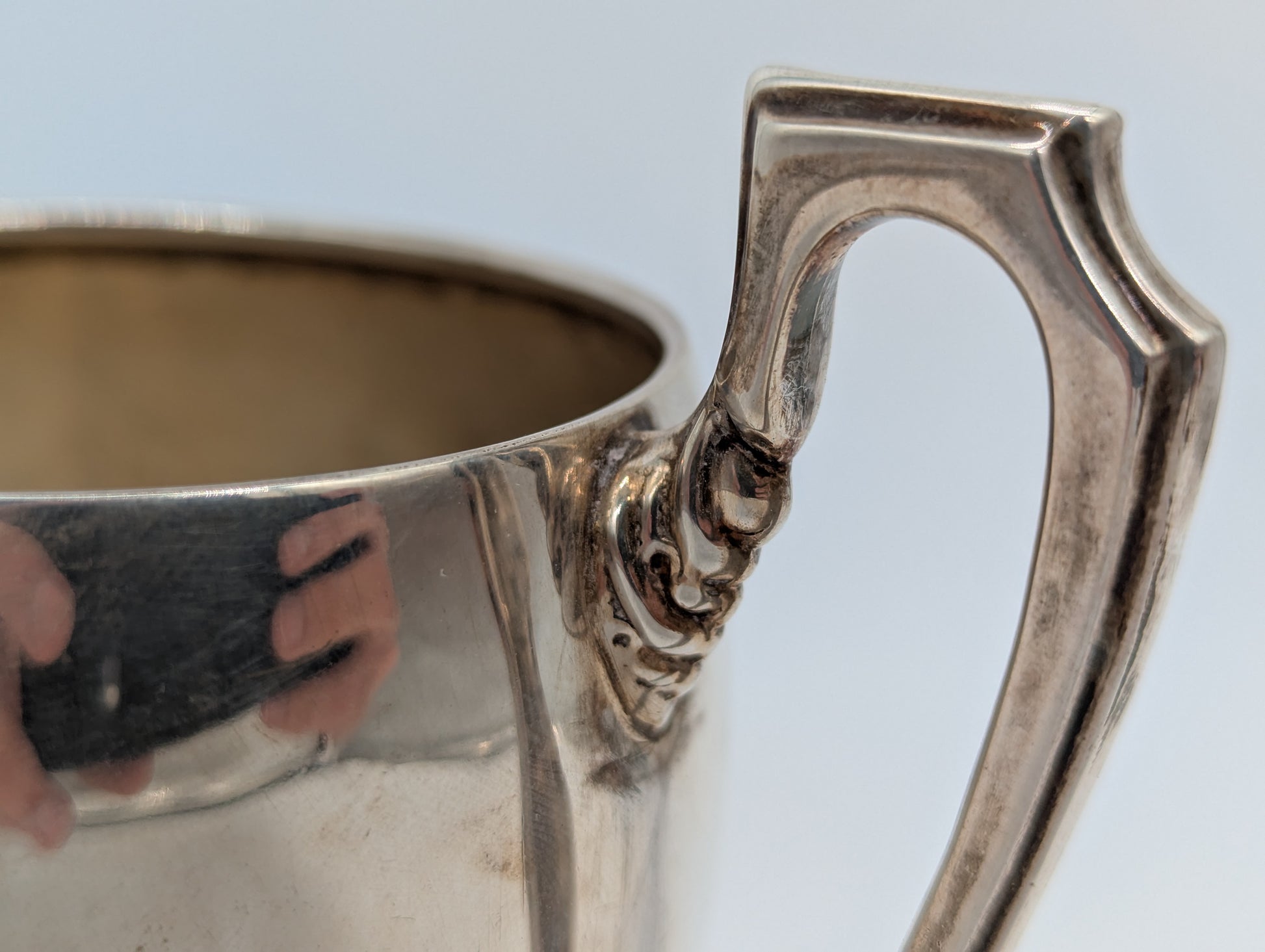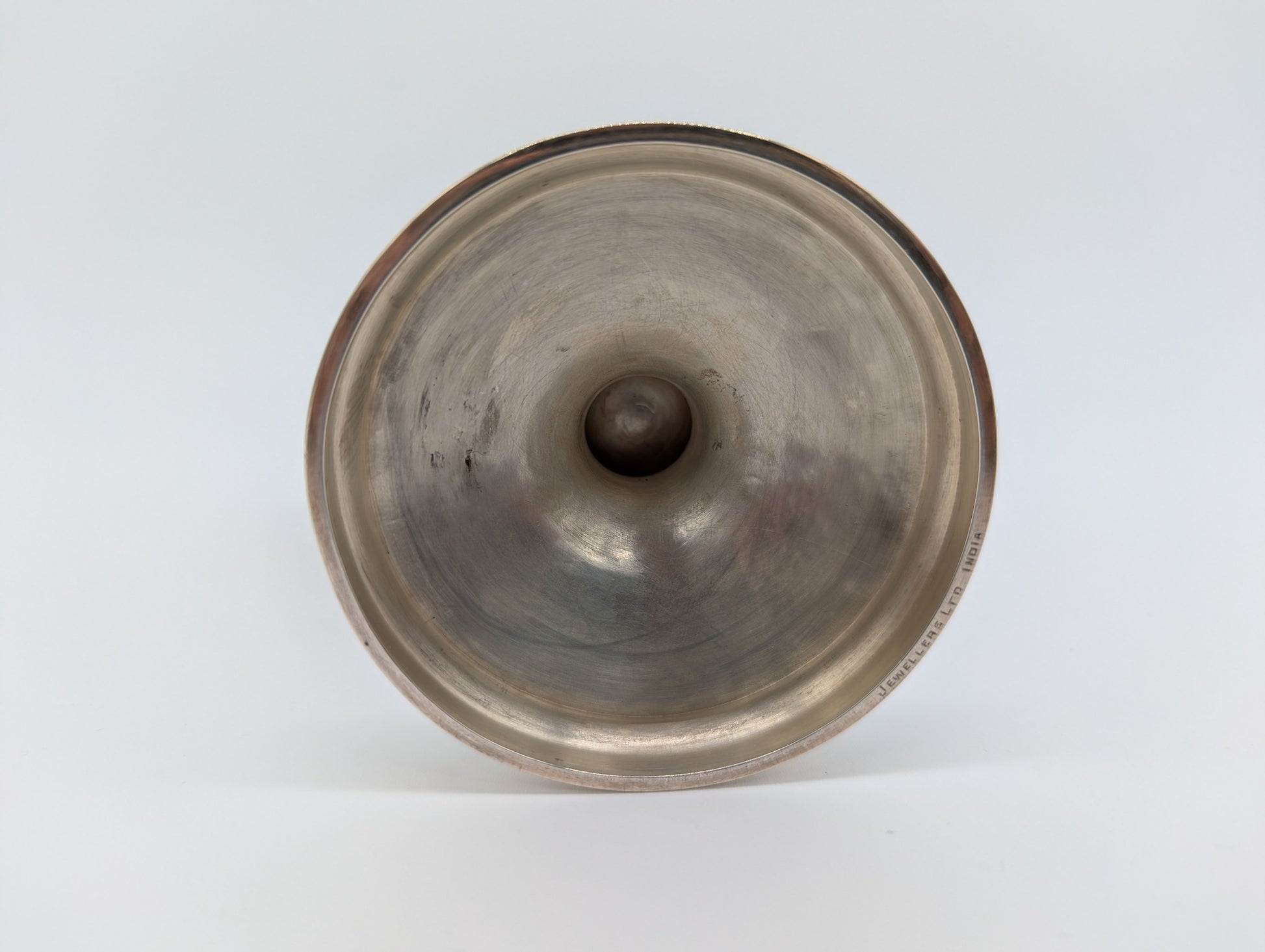 Dieser elegante Pokal aus Sterling Silber (92,5 %) stammt aus dem renommierten Birmingham-Zentrum und trägt die typische Birmingham-Punzenkombination: Anker (Assay-Office), Löwenpassant (Silberfeinheit), sowie den Maker-Stempel „WD“, welcher auf William Devenport hinweist — ein angesehener Silberschmied aus Birmingham. Die feine Verarbeitung, die geschwungenen Henkel und die harmonischen Proportionen strahlen klassische Eleganz aus. Leichte Gebrauchsspuren sind sichtbar, was dem Gesamtbild einen authentischen Charakter verleiht.