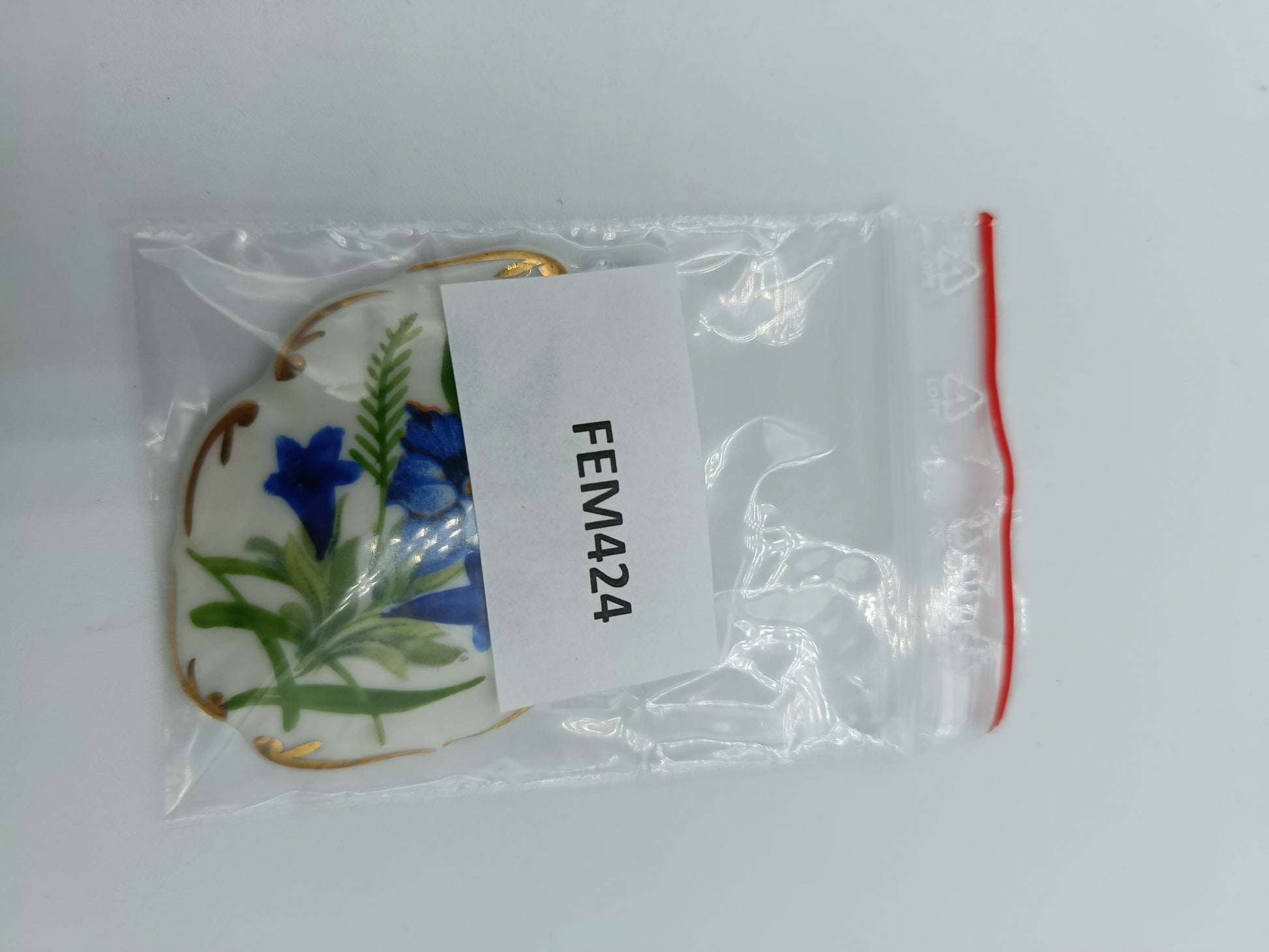 • Dekor: Handgemalt, florales Motiv (Blumen in Blau & Grün, Goldrand)