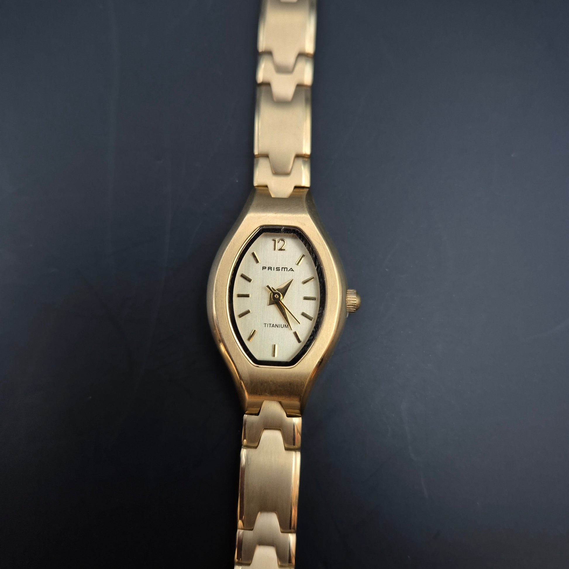 Prisma Damen Uhr – Titan Gehäuse mit goldfarbenem Armband