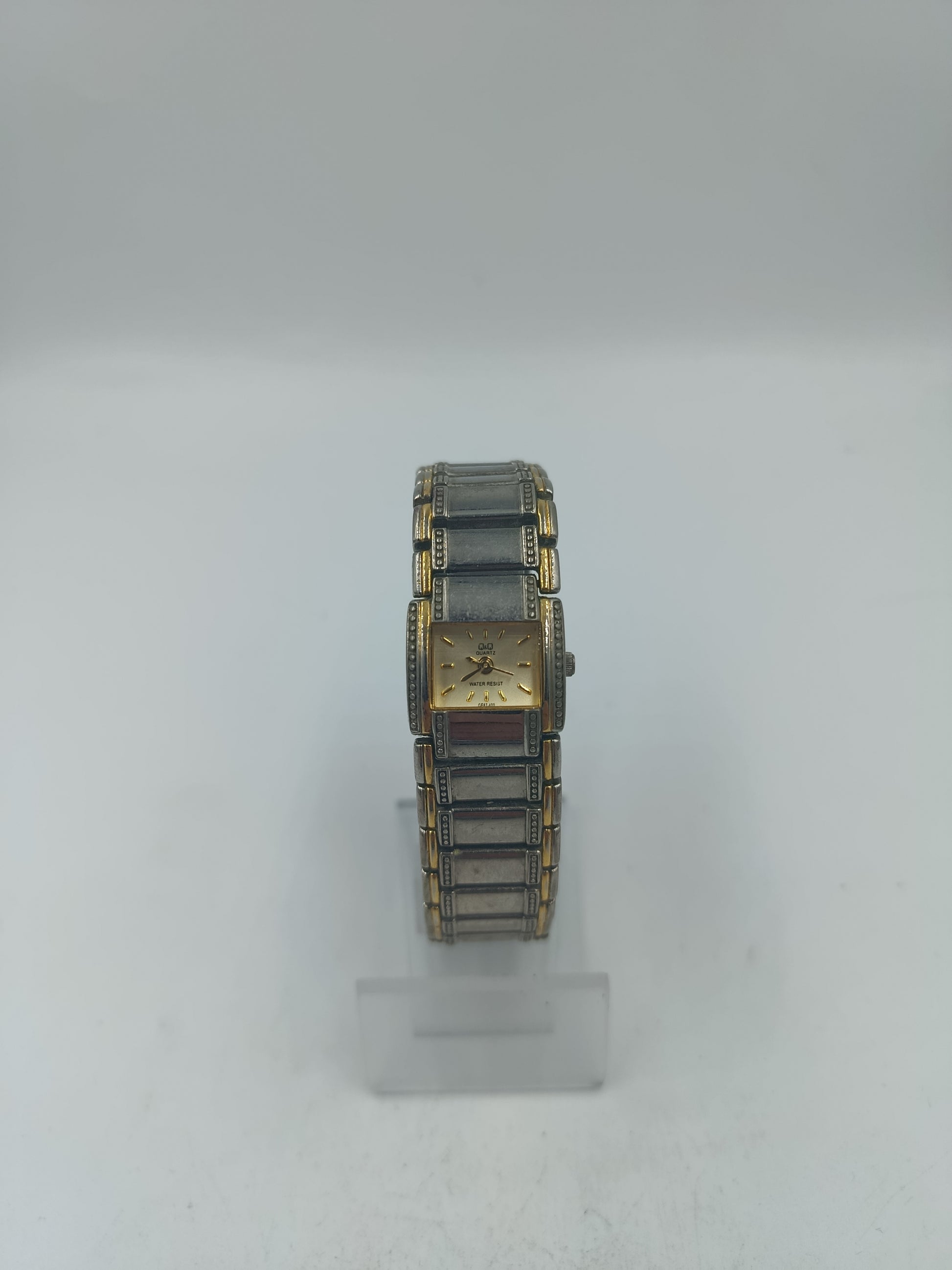 Diese stilvolle rechteckige Armbanduhr überzeugt durch ihr klassisches Design und die harmonische Kombination aus goldfarbenen und silberfarbenen Elementen. Das fein gestaltete Zifferblatt mit schlanken Zeigern verleiht der Uhr eine elegante Ausstrahlung. Das hochwertige Metallarmband sorgt für einen sicheren Sitz und hohen Tragekomfort und macht diese Uhr zu einem passenden Begleiter für Alltag und besondere Anlässe.
