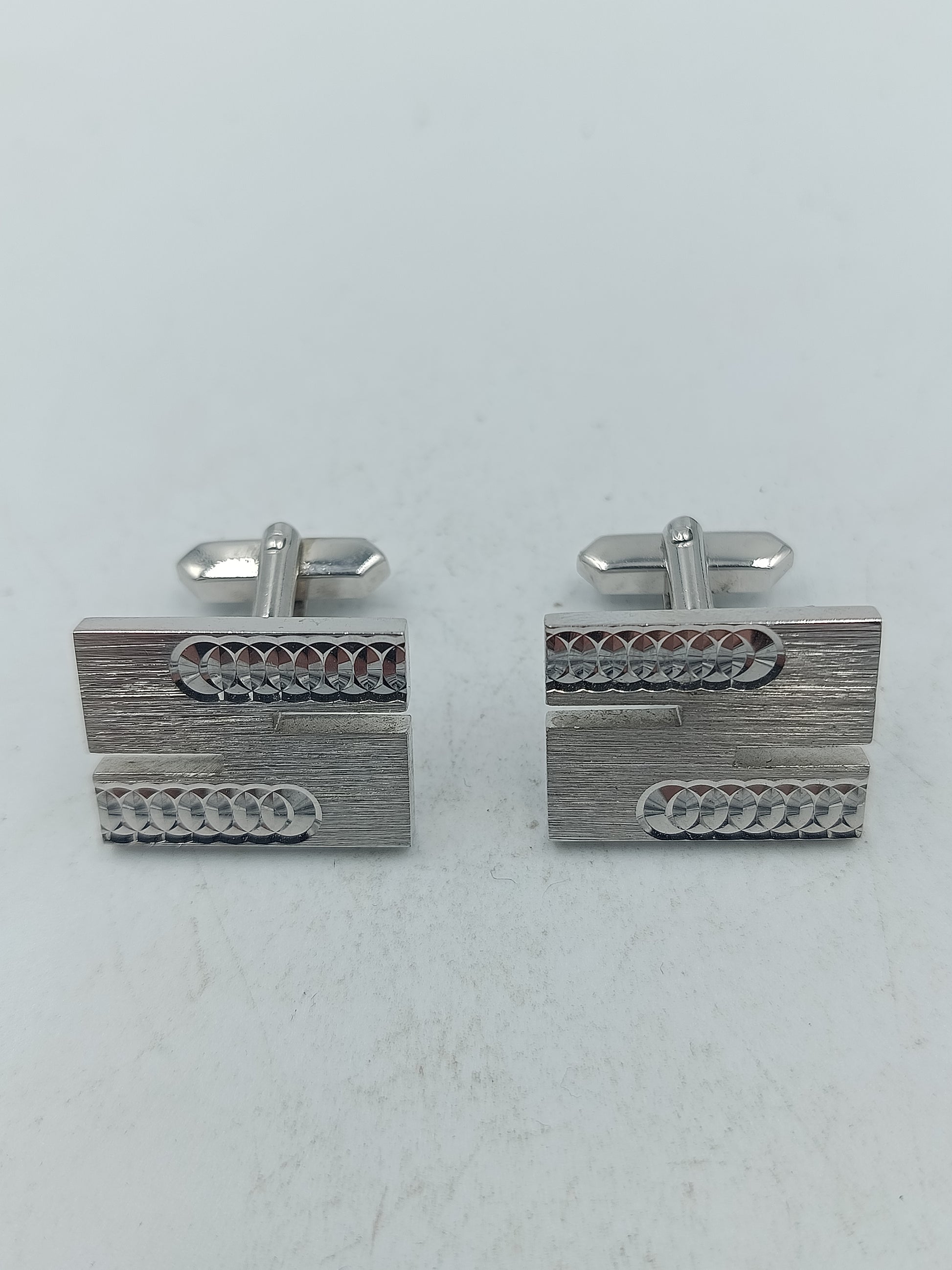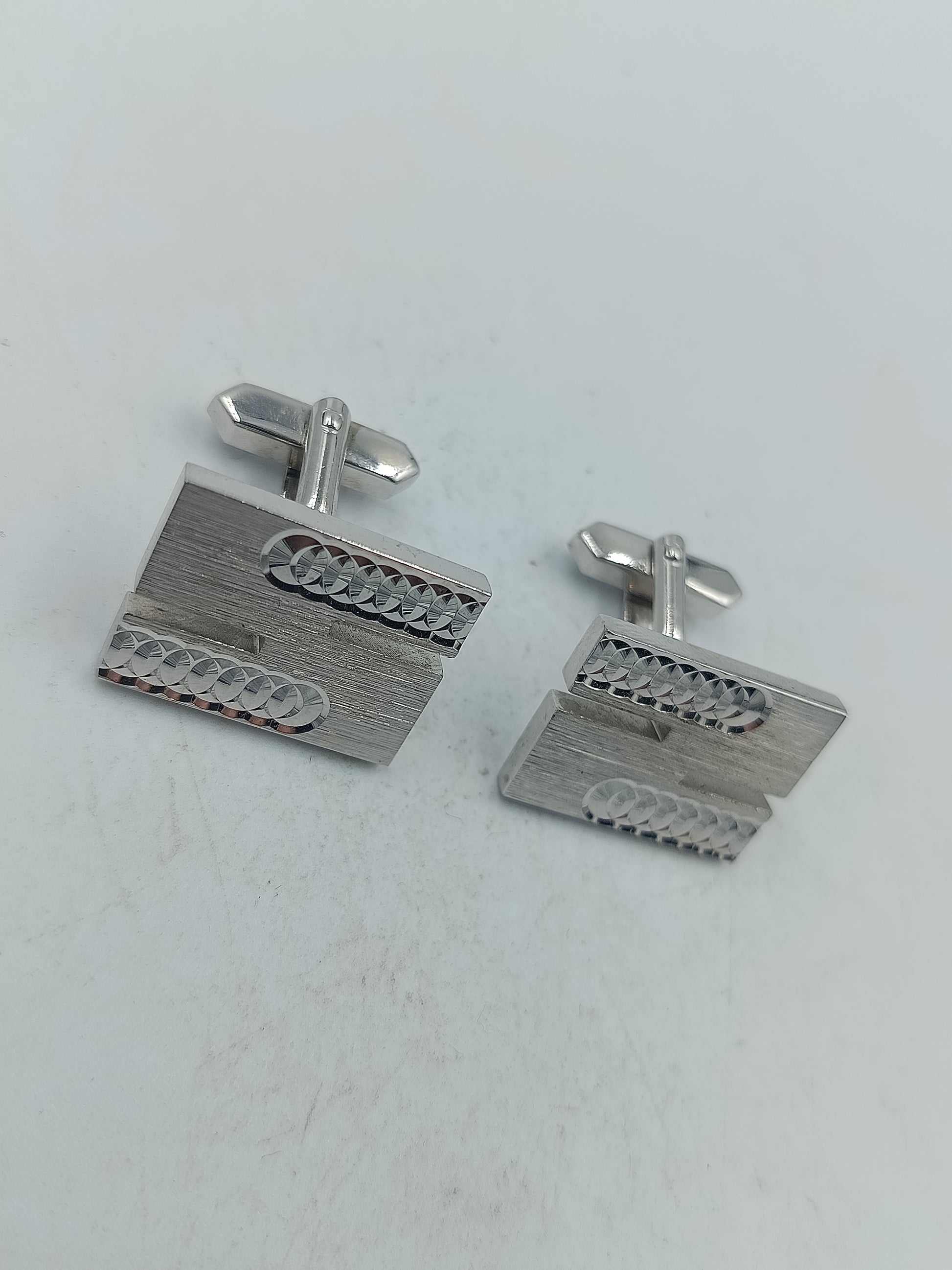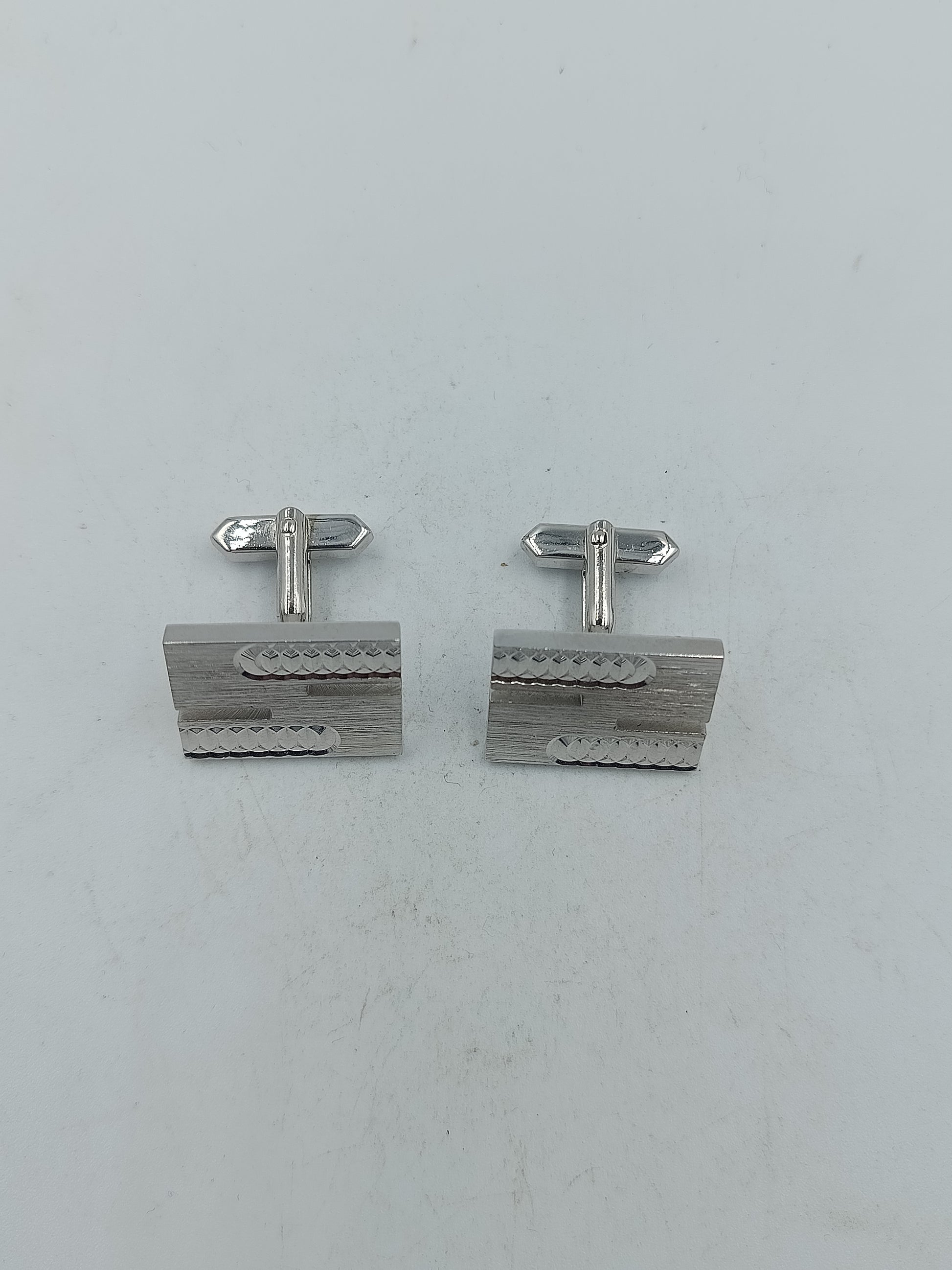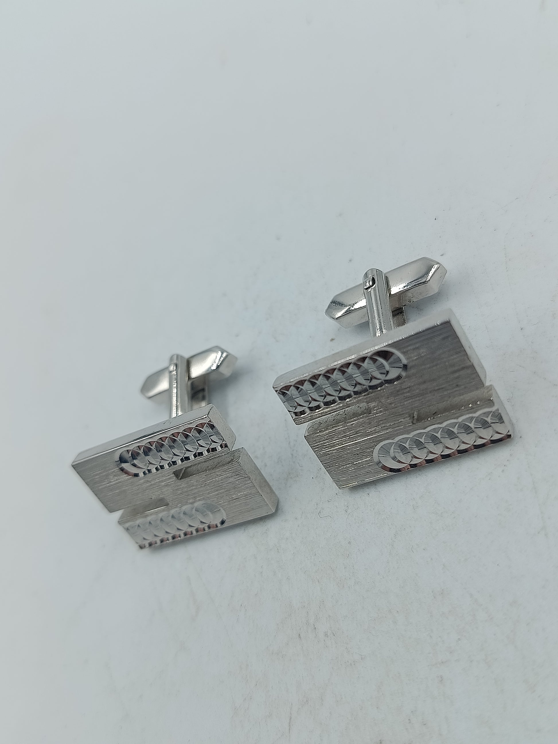 Rechteckige Manschettenknöpfe silberfarben mit strukturierter Oberfläche und klassischem Design
