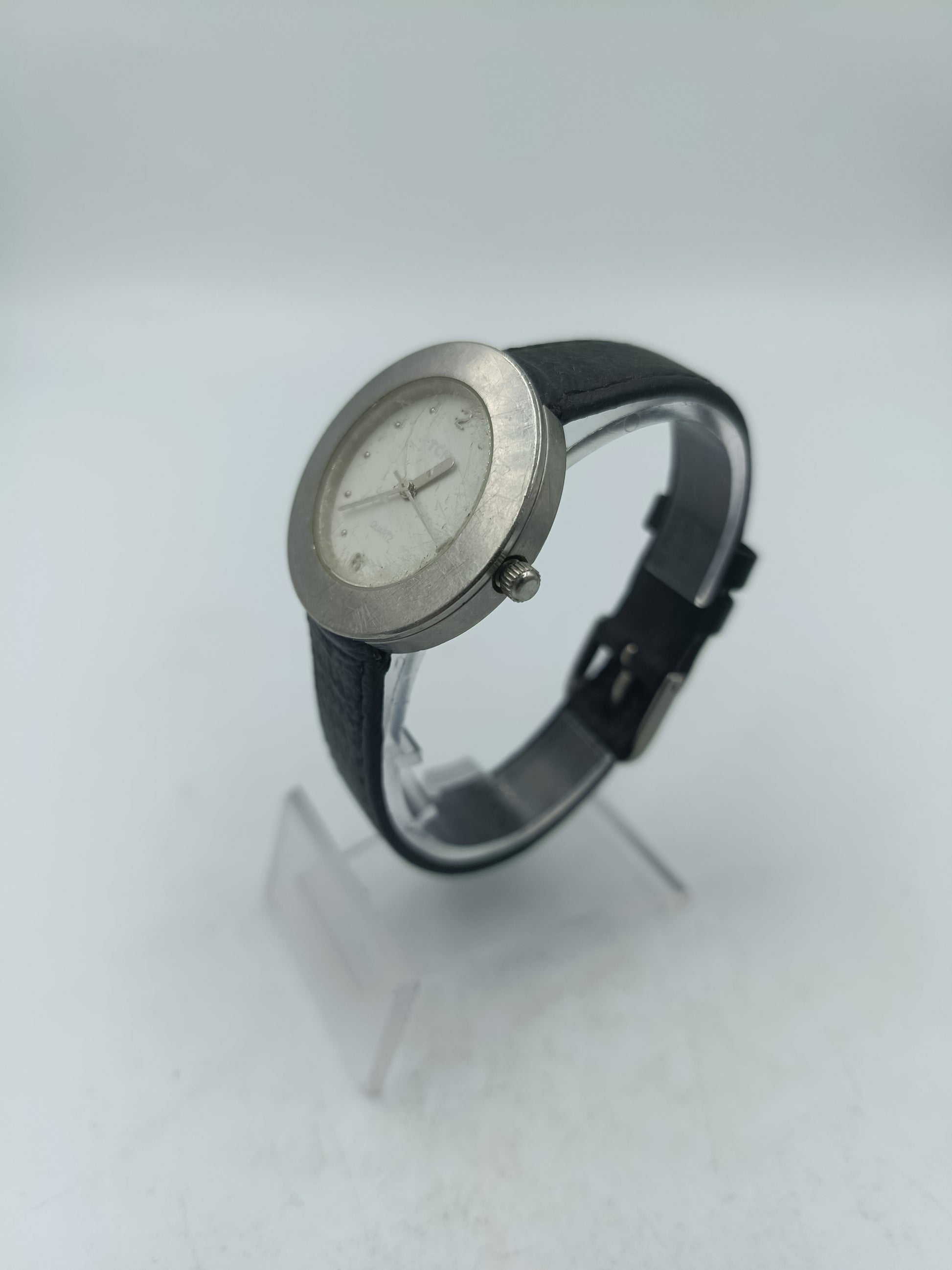 Elegante Armbanduhr mit klassischem runden Gehäuse und ruhigem Design. Das helle Zifferblatt mit feinen Stundenmarkierungen sorgt für eine klare Ablesbarkeit und einen zeitlosen Look. Das schwarze Lederarmband bietet einen angenehmen Sitz und passt ideal zu Alltag und Anlass. Eine stilvolle Uhr für Liebhaber schlichter Formen und dezenter Eleganz.