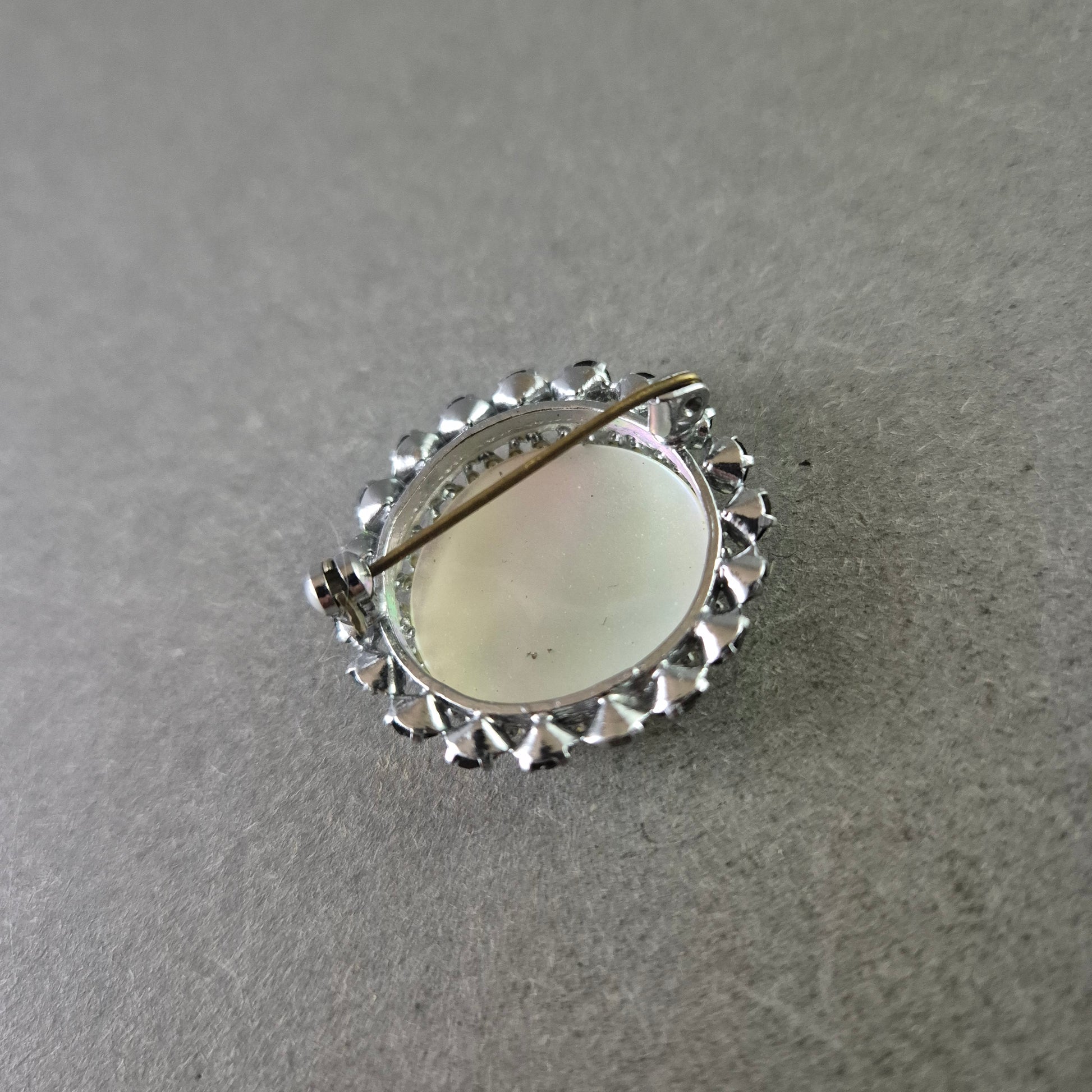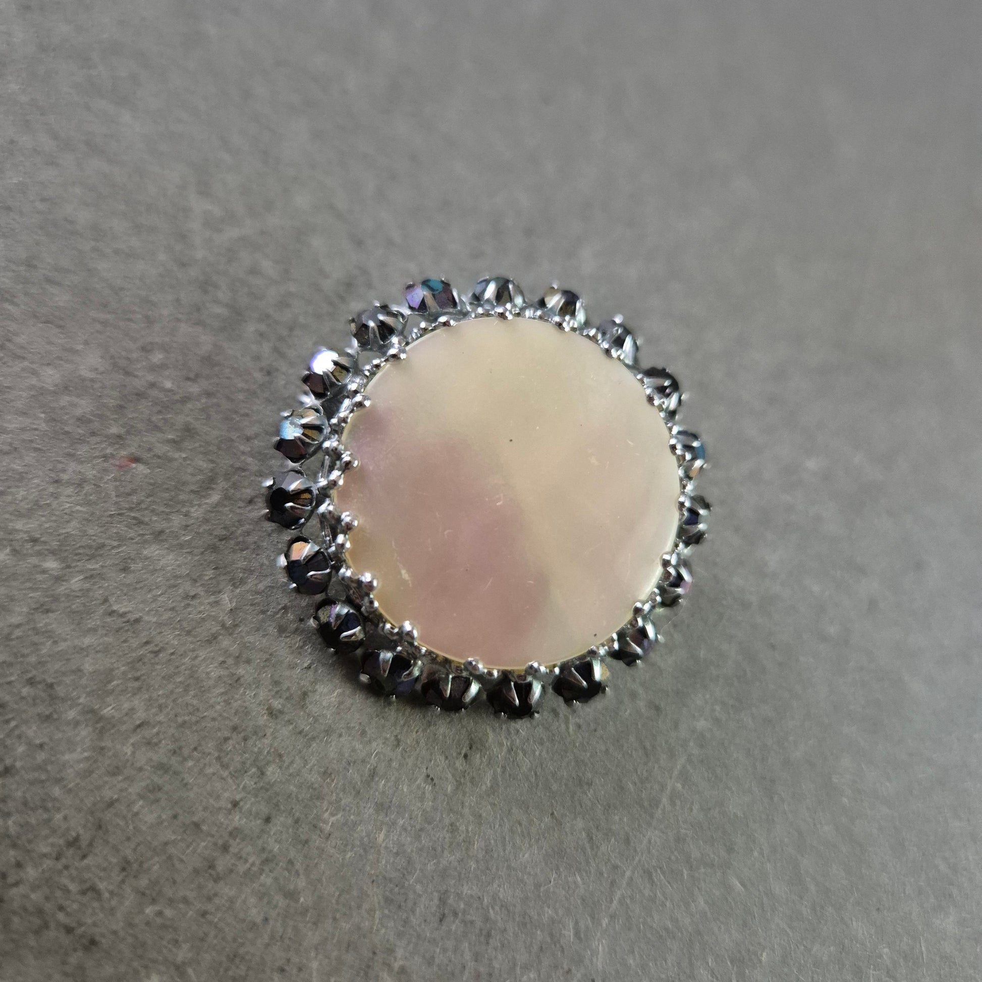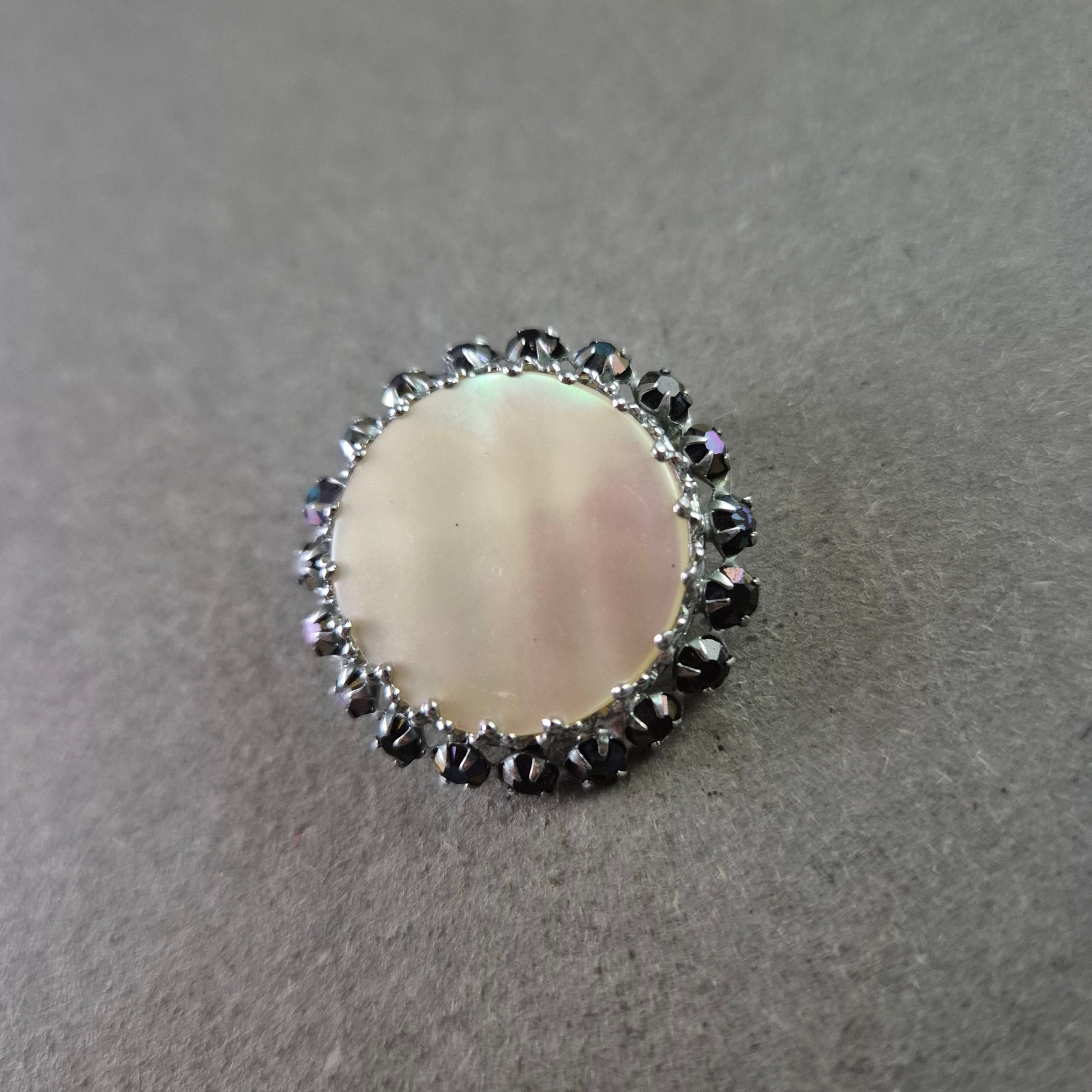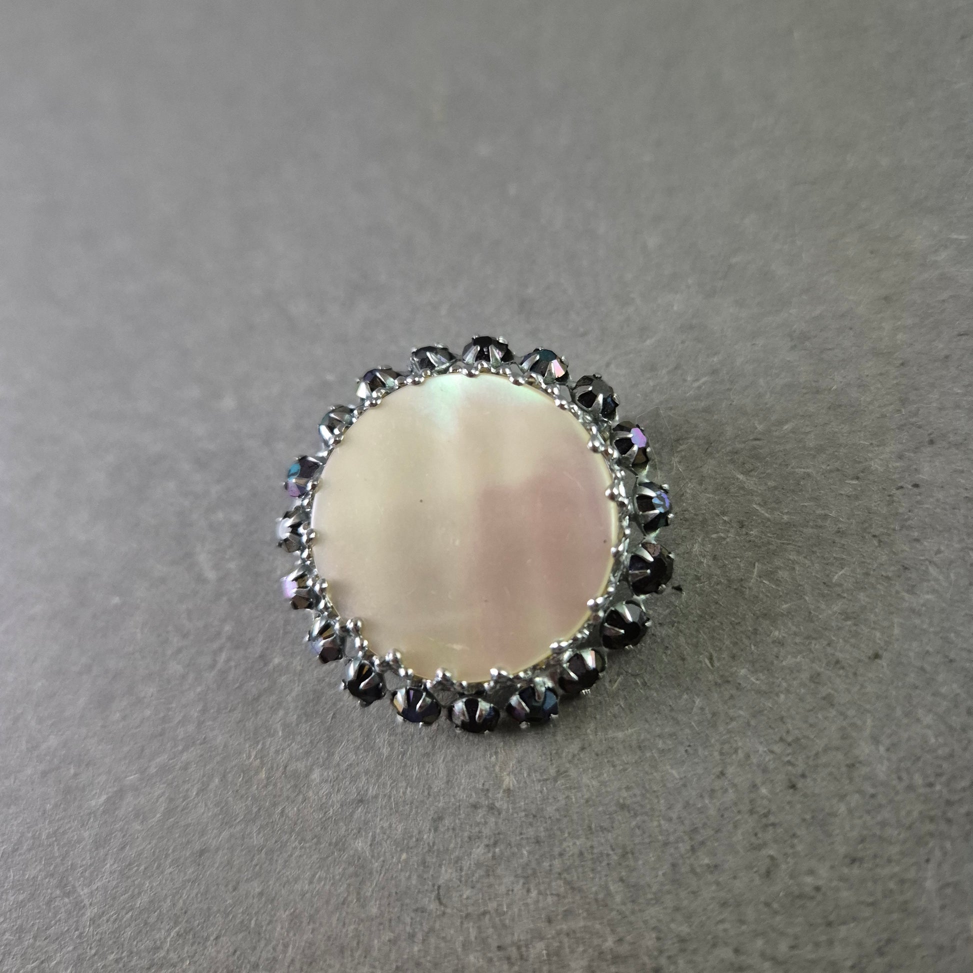 Runde Brosche mit Perlmutt und schwarzer Steinverzierung