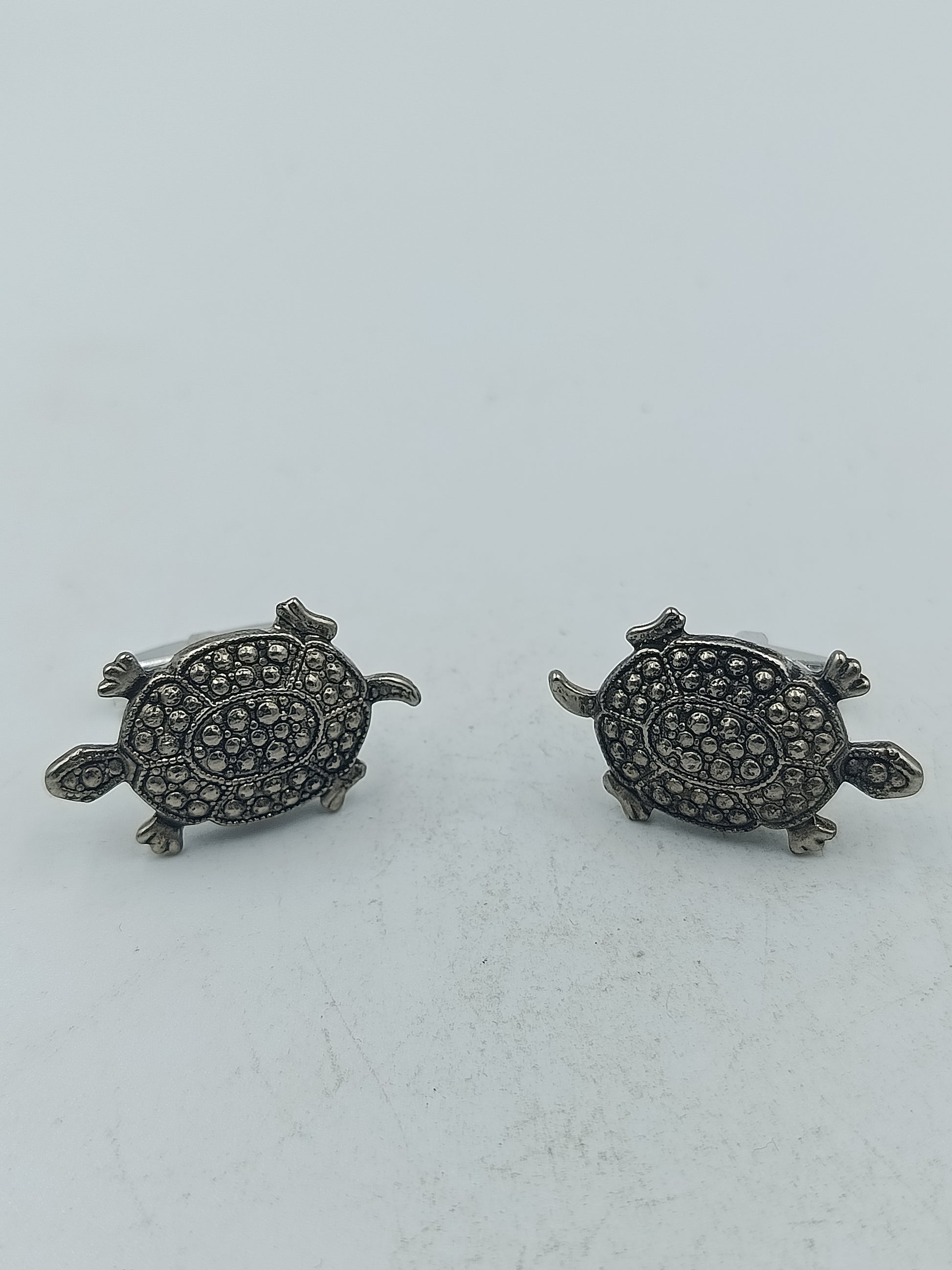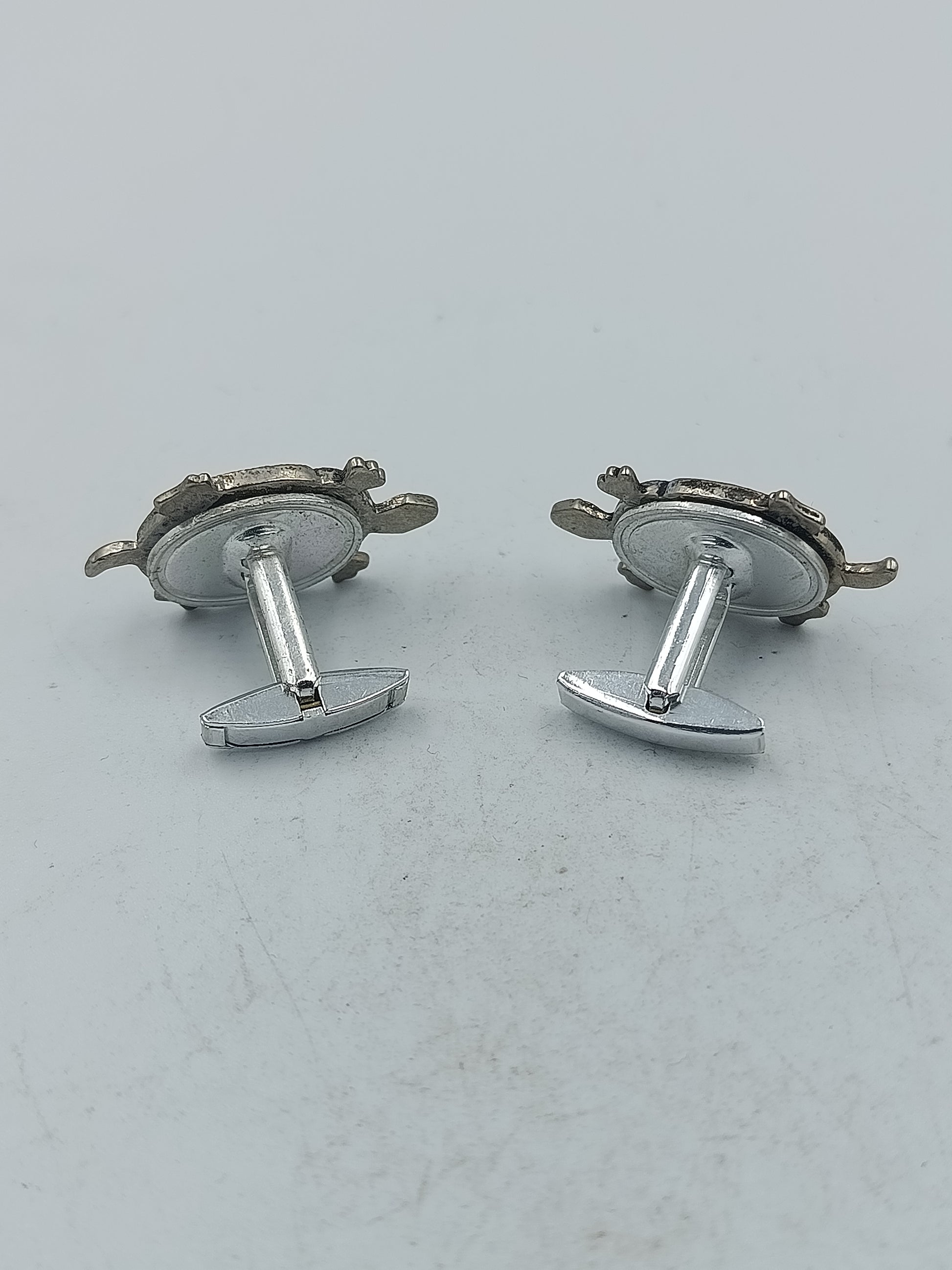 Schildkröten Manschettenknöpfe in silberfarbener Optik mit detailreicher Struktur