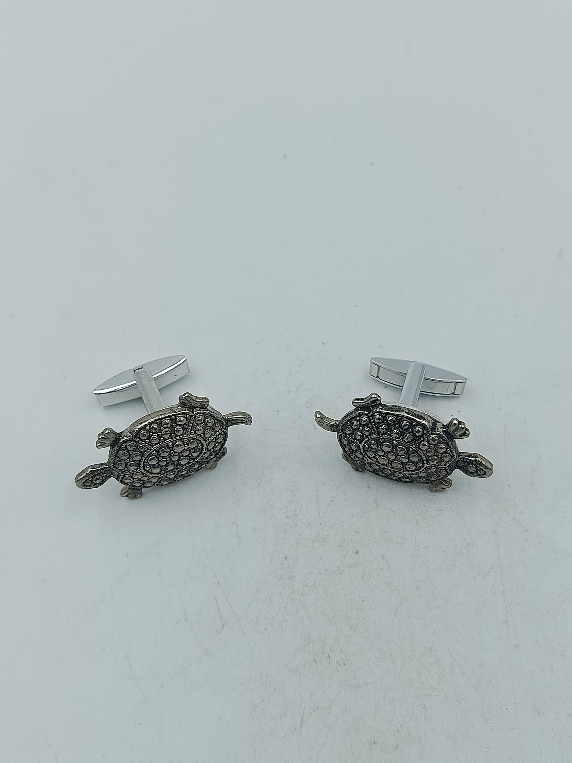 Diese besonderen Manschettenknöpfe zeigen zwei fein ausgearbeitete Schildkröten mit strukturierter Oberfläche und leichtem Glanz. Das Design wirkt verspielt und zugleich stilvoll und eignet sich ideal für Menschen die außergewöhnliche Accessoires schätzen. Die stabile Verarbeitung sorgt für sicheren Halt und angenehmen Tragekomfort bei jedem Anlass
