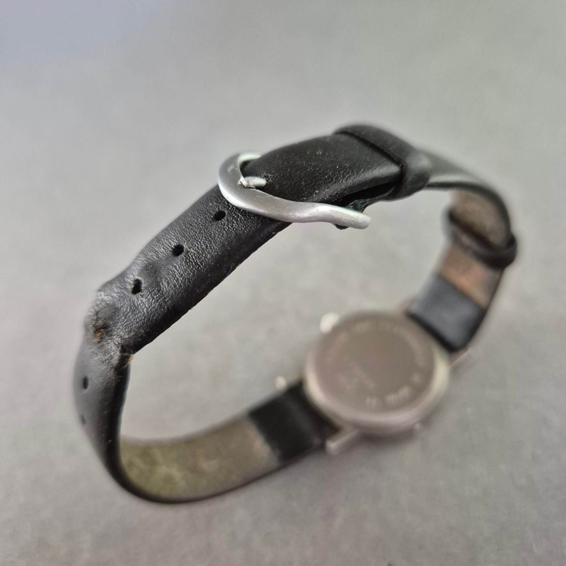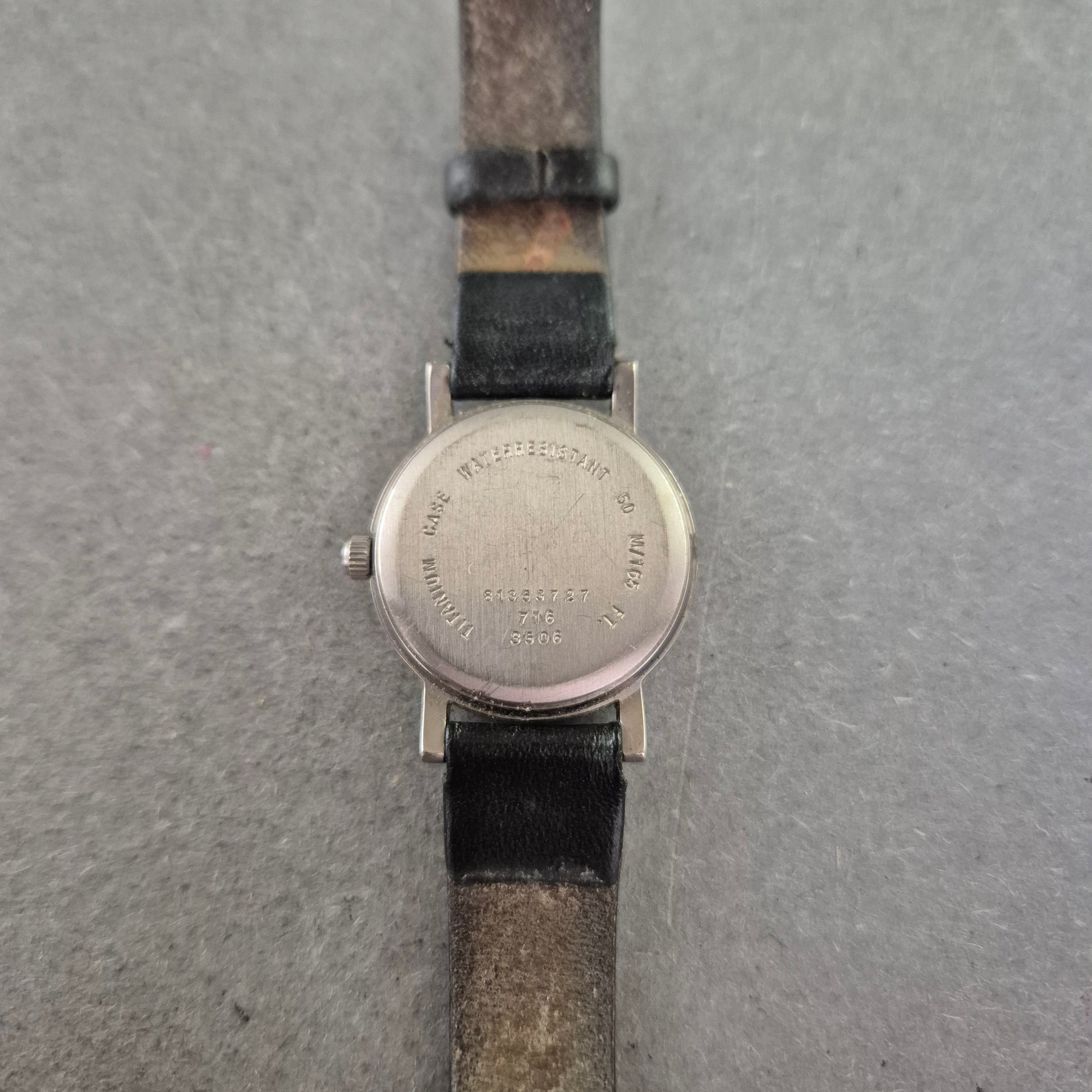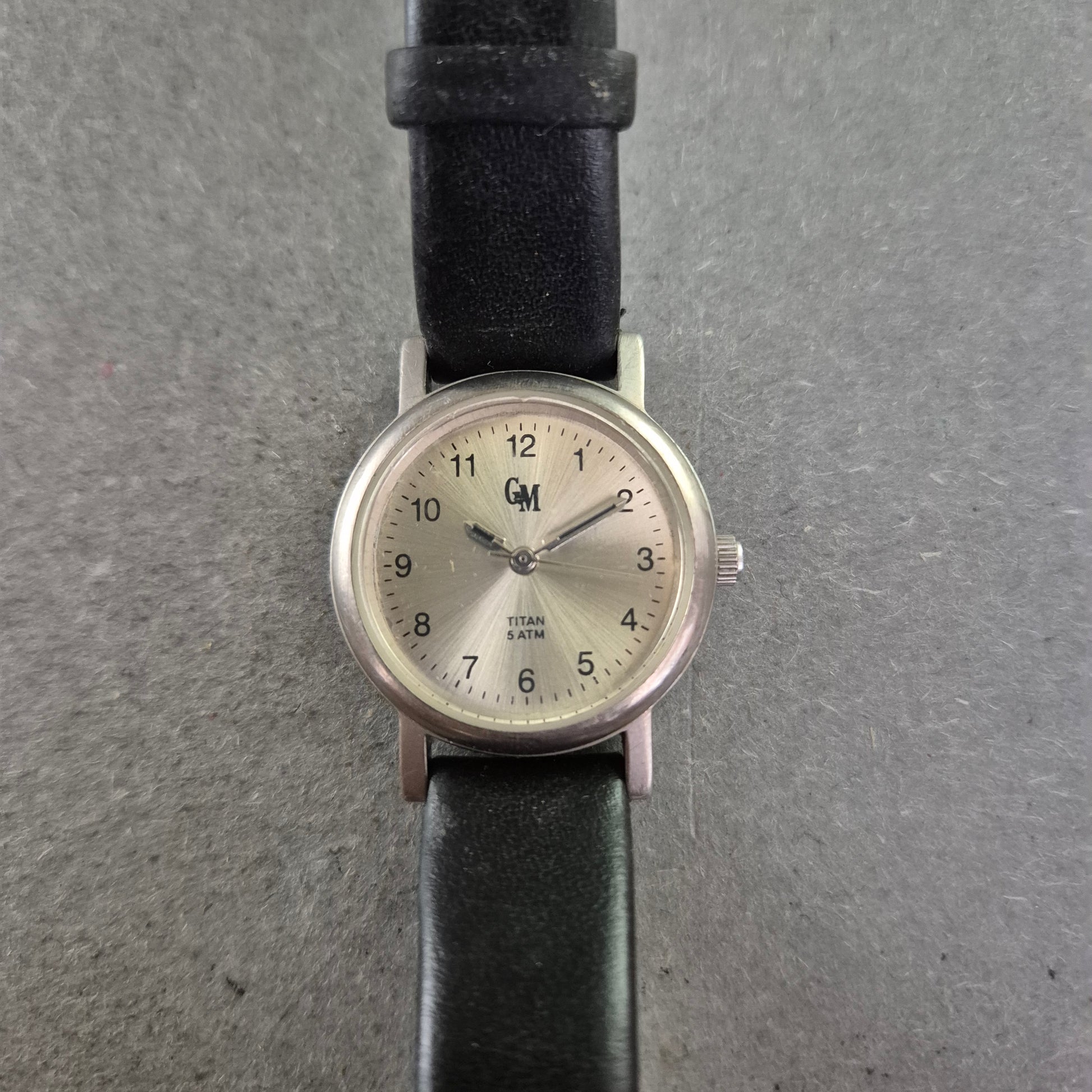 Diese elegante GM Damenuhr kombiniert klassisches Design mit robustem Titan-Gehäuse und einer klaren Zifferblattgestaltung. Sie ist ideal für alle, die eine unauffällige, funktionale Uhr mit Alltagstauglichkeit suchen. Das schwarze Lederarmband ist stark gebraucht und weist deutliche Gebrauchsspuren auf – ideal für Bastler oder als Ersatzteilspender.