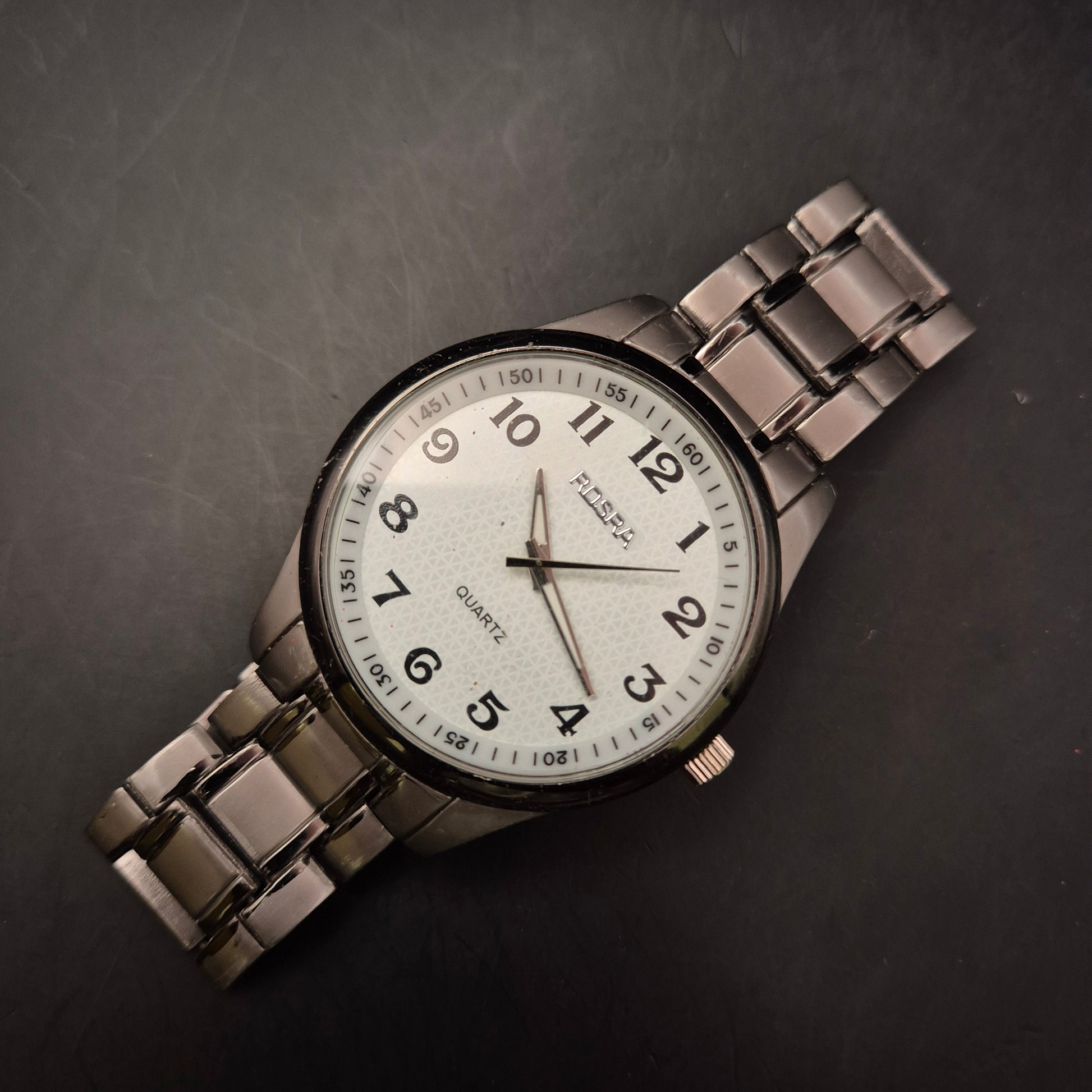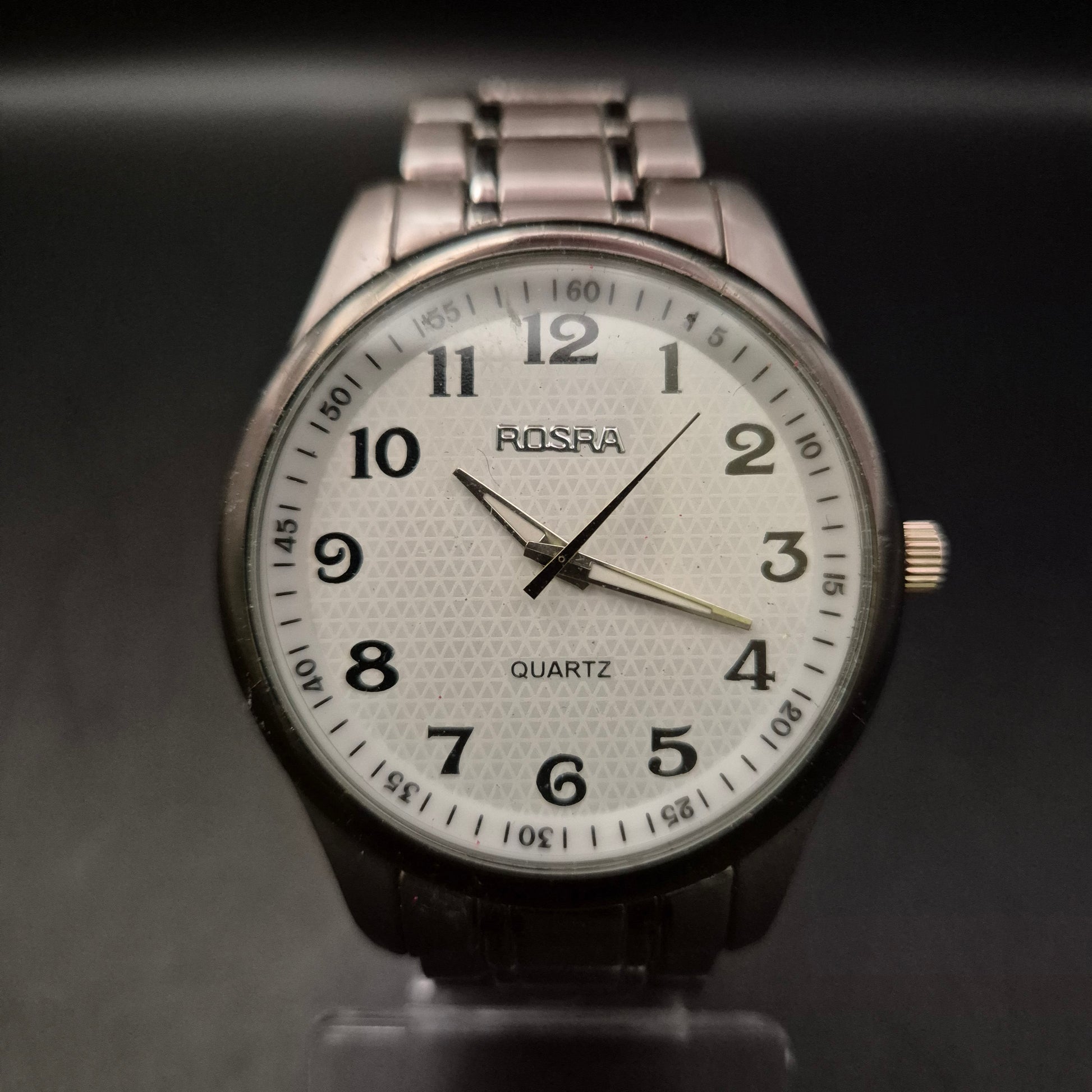 Diese klassische Herren Uhr von Pospa überzeugt durch ihr schlichtes, gut lesbares Design. Das weiße Zifferblatt mit großen schwarzen Zahlen sorgt für eine klare Zeitangabe, während das Edelstahlarmband einen zeitlosen Look und angenehmen Tragekomfort bietet. Eine ideale Alltagsuhr für Männer, die Funktionalität und Stil schätzen.