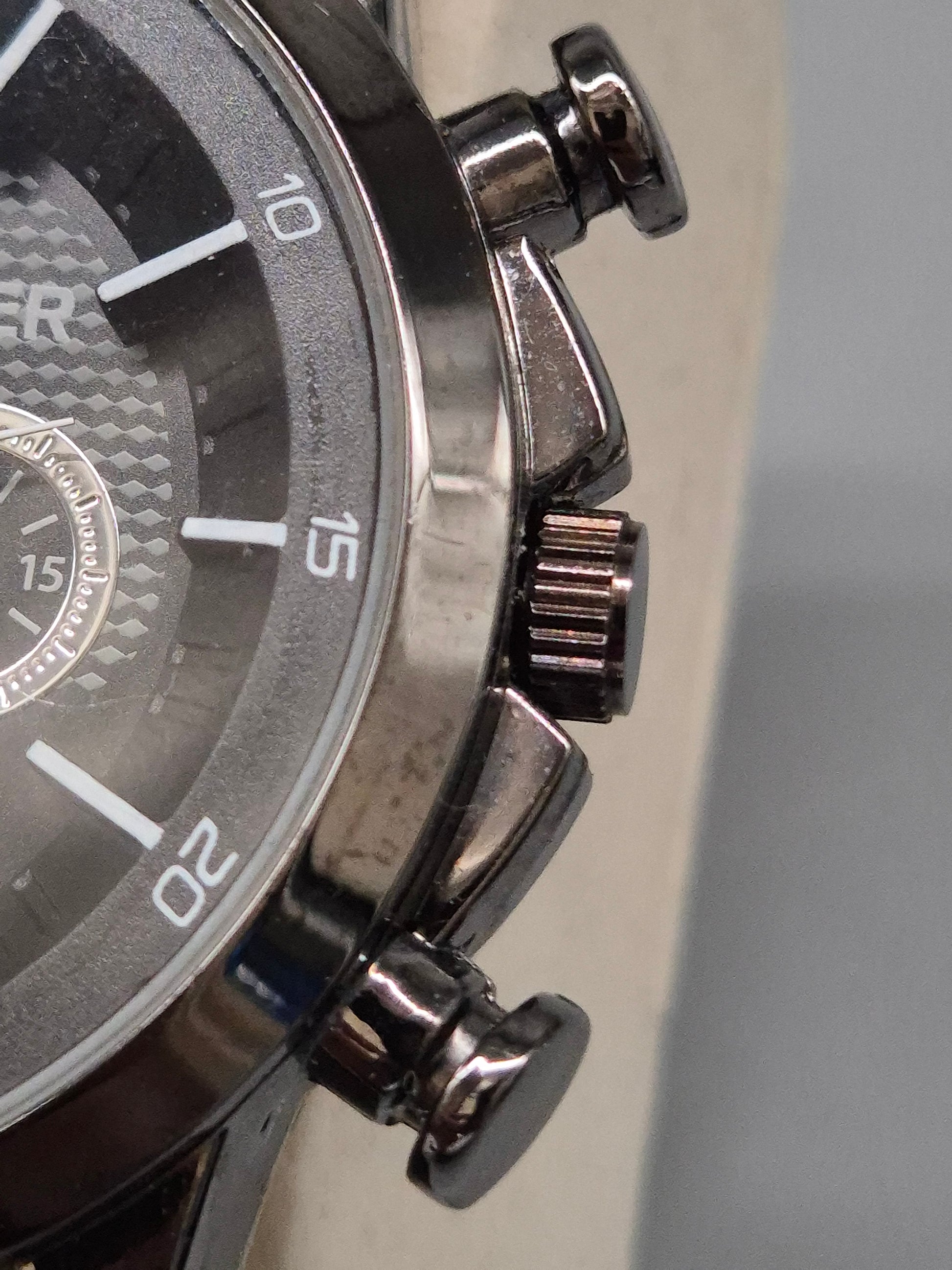 Zustand: Gebraucht‑gut – kleinere Gebrauchsspuren an Gehäuse/Rückseite, Armband befindet sich in solidem Zustand. Die gezeigten Bilder sind Teil der Zustandsbeschreibung.