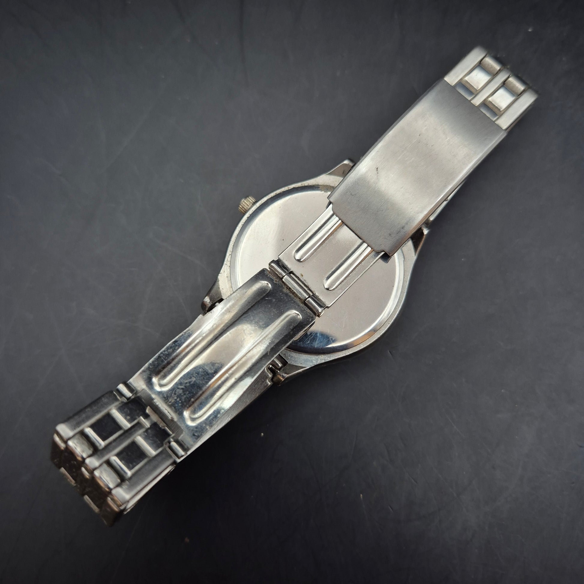 Diese elegante Herren Uhr besticht durch ihr reduziertes, modernes Design. Das matte, dunkle Zifferblatt wird von einem silbernen Gehäuse eingerahmt und verzichtet bewusst auf überflüssige Details – ideal für Liebhaber puristischer Ästhetik. Das robuste Edelstahlarmband sorgt für ein angenehmes Tragegefühl und unterstreicht den schlichten Look.