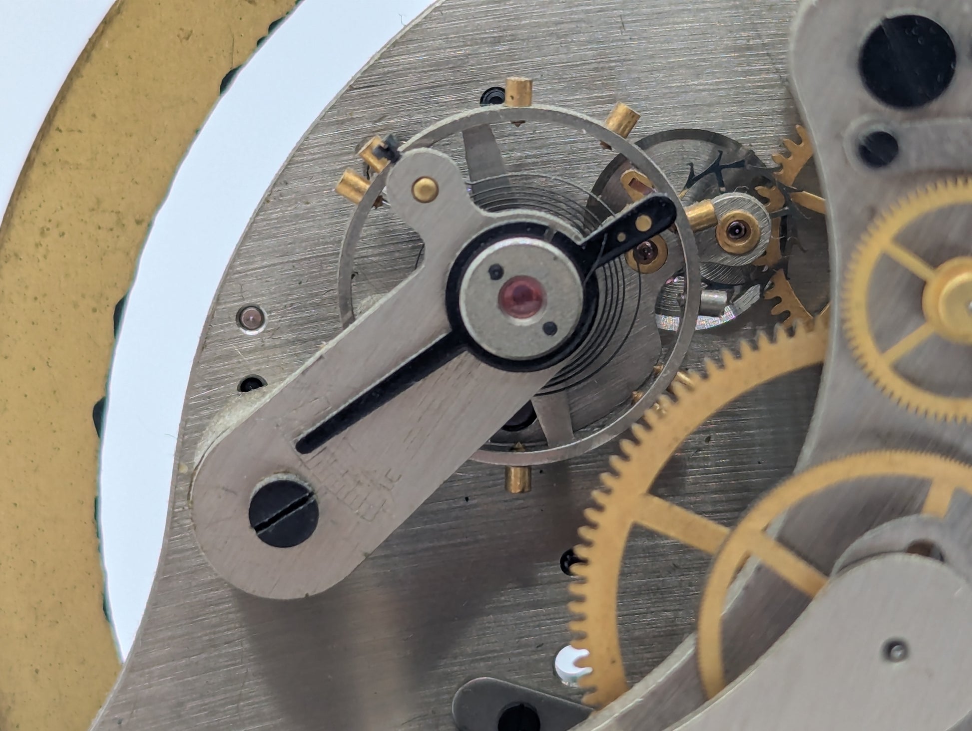 • Das Werk trägt die eingeprägte Kalibernummer 72303 sowie die Kennzeichnung 3-58, was auf Baujahr oder Kalibercode hinweist.