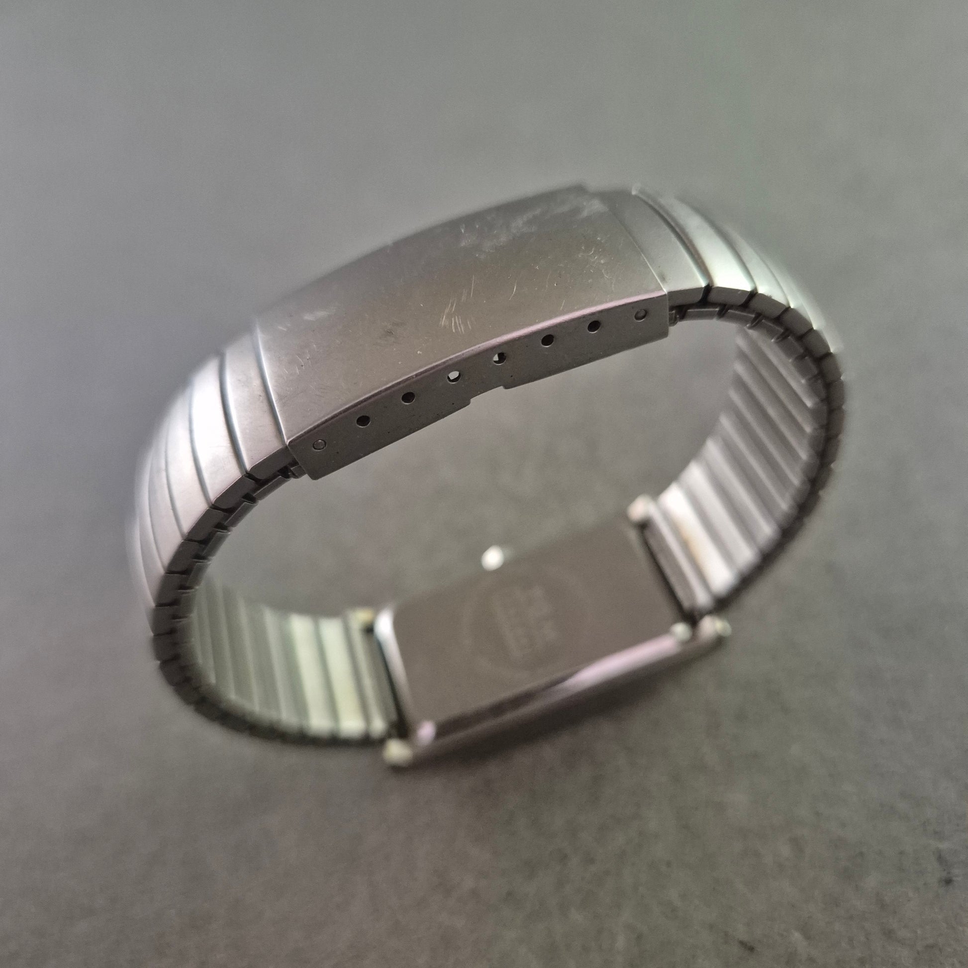 Eine schlichte und elegante TCM Damen Uhr mit rechteckigem Gehäuse und silberfarbenem Edelstahlarmband. Das minimalistische Zifferblatt mit nur vier Indizes (12, 3, 6, 9) und schwarzen Zeigern sorgt für eine klare, zeitlose Optik. Durch das elastische Gliederarmband ist die Uhr angenehm zu tragen und einfach an- und auszuziehen.