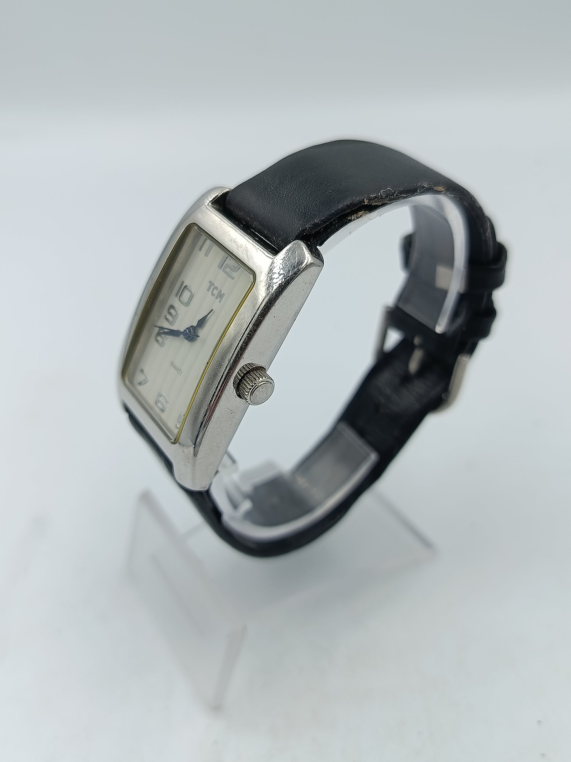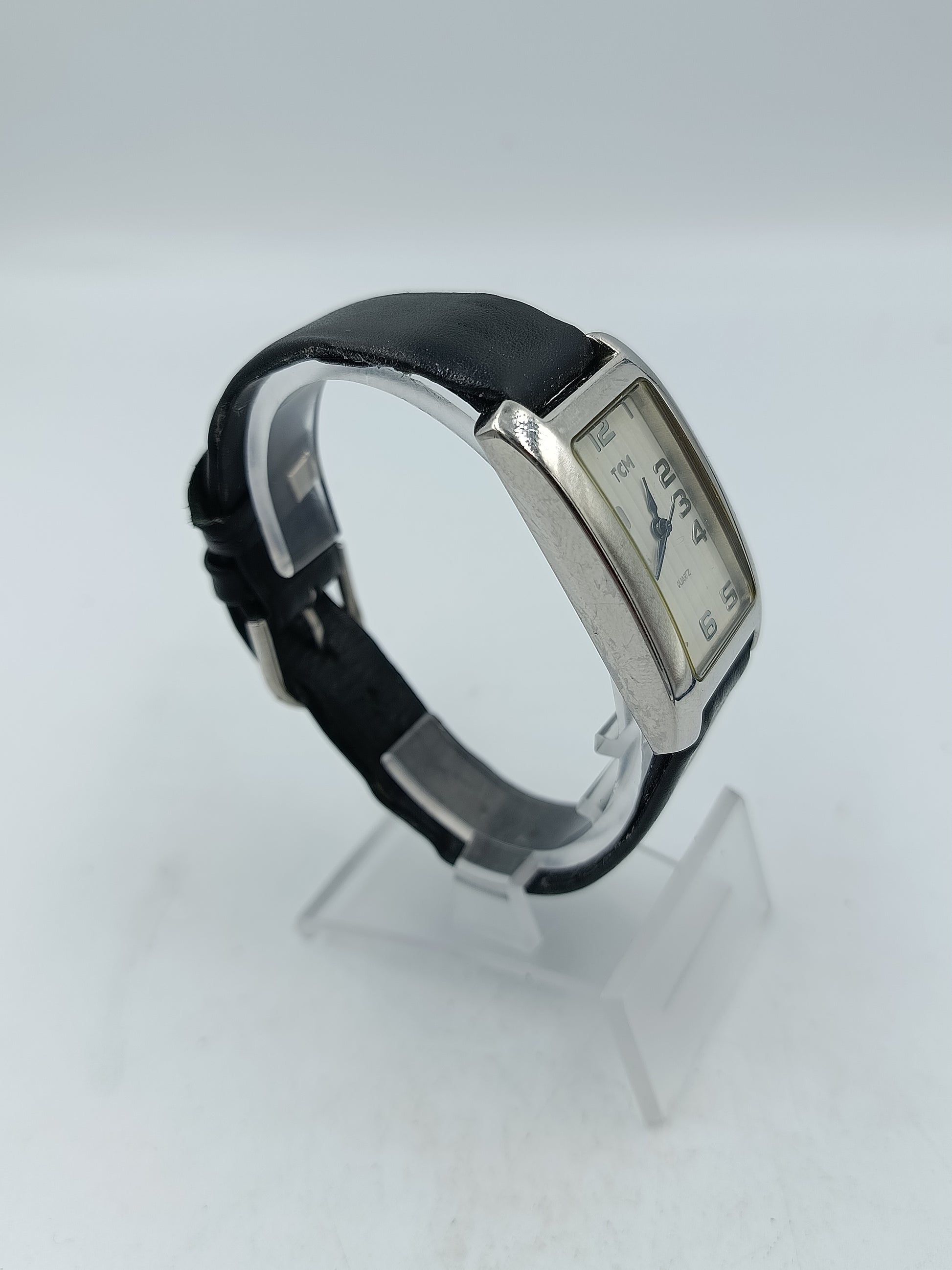 TCM rechteckige Quartz Armbanduhr mit schwarzem Lederband