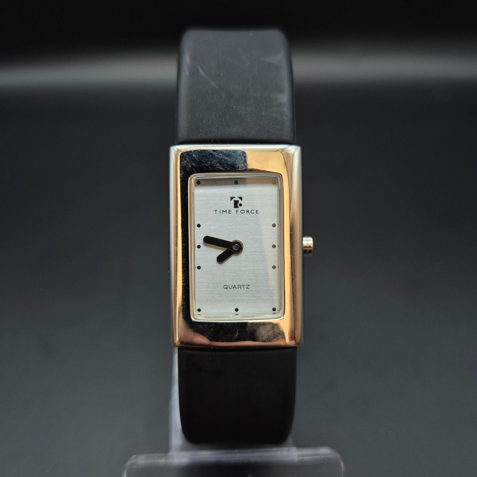 Diese elegante Time Force Uhr überzeugt durch ihr modernes, minimalistisches Design. Das rechteckige Edelstahlgehäuse in Kombination mit dem silbernen Zifferblatt und dezenten Indizes verleiht der Uhr einen zeitlosen Look. Mit ihrem schlichten schwarzen Armband eignet sie sich perfekt als stilvolles Accessoire für Damen und Herren gleichermaßen.