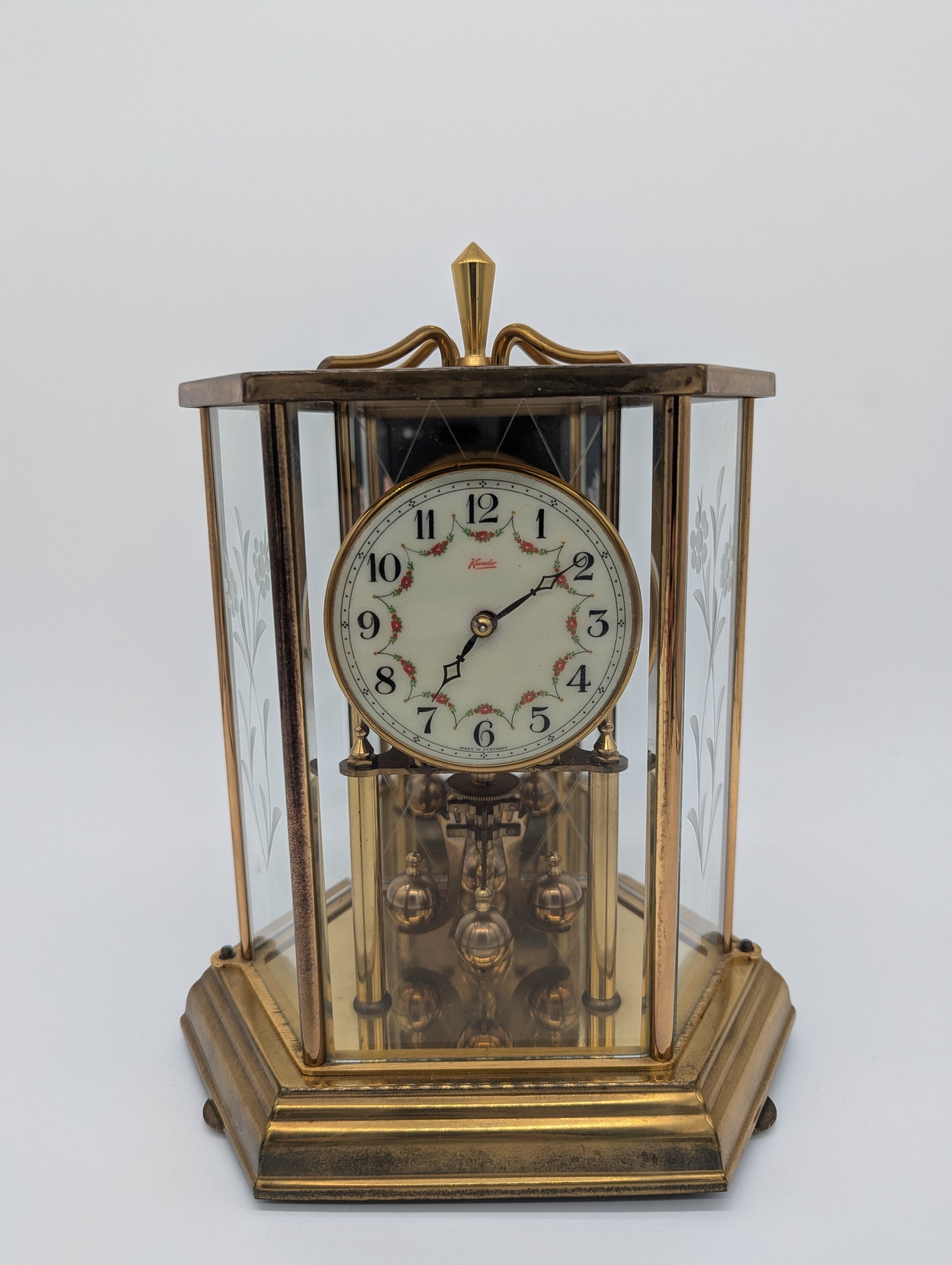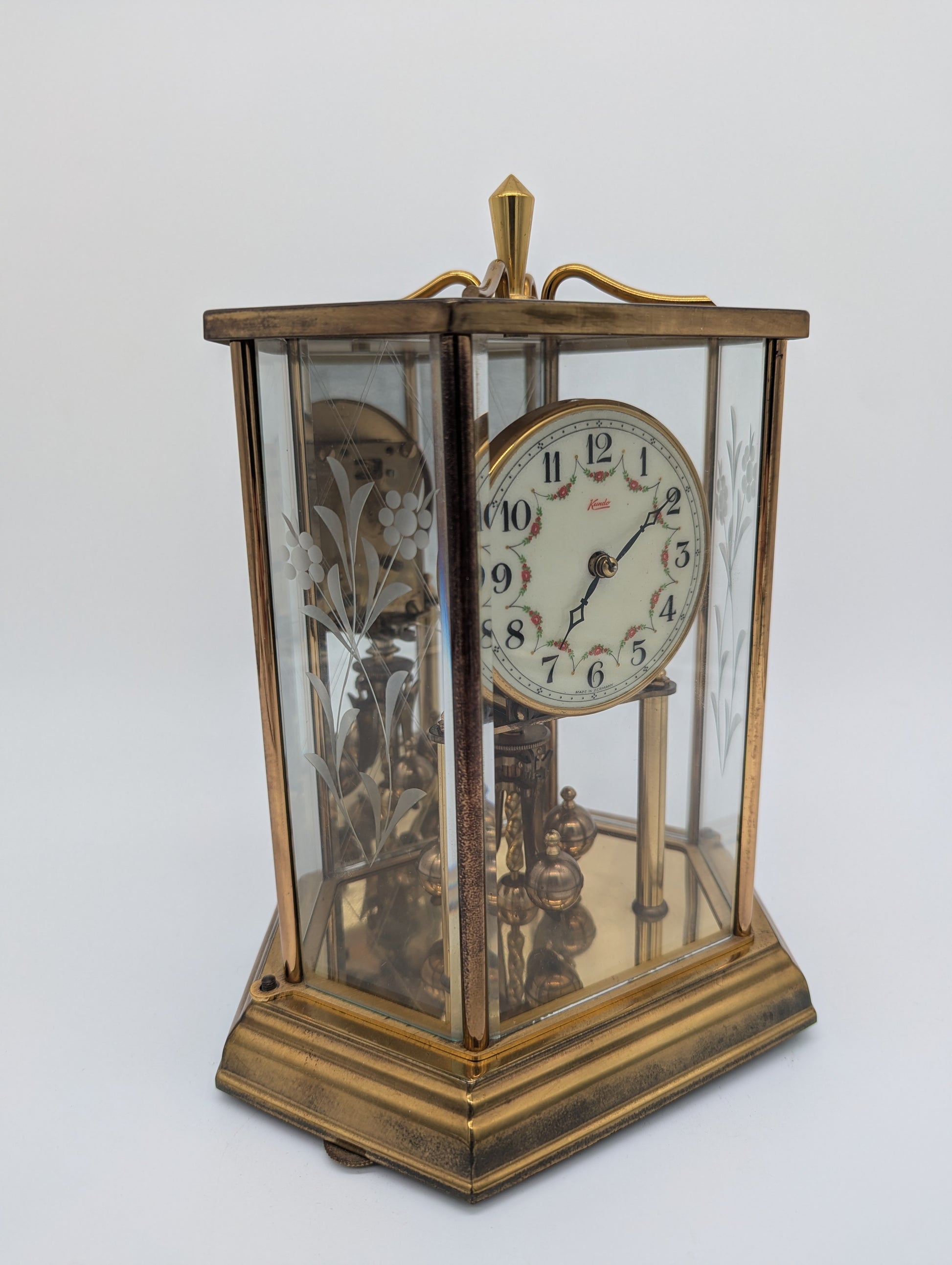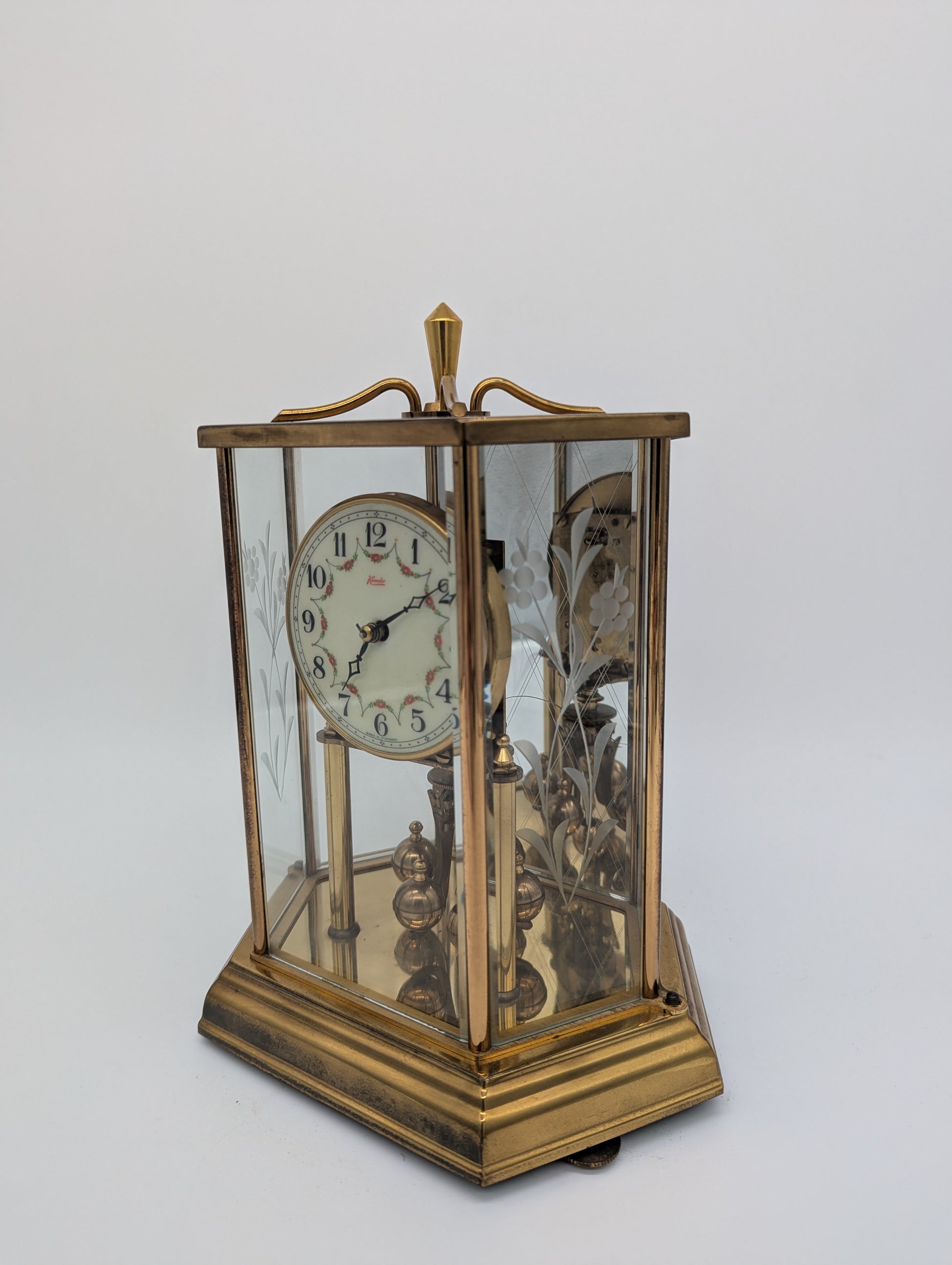 Tischuhr Kaminuhr von Kundo mit Drehpendel und Glasabdeckung Vintage