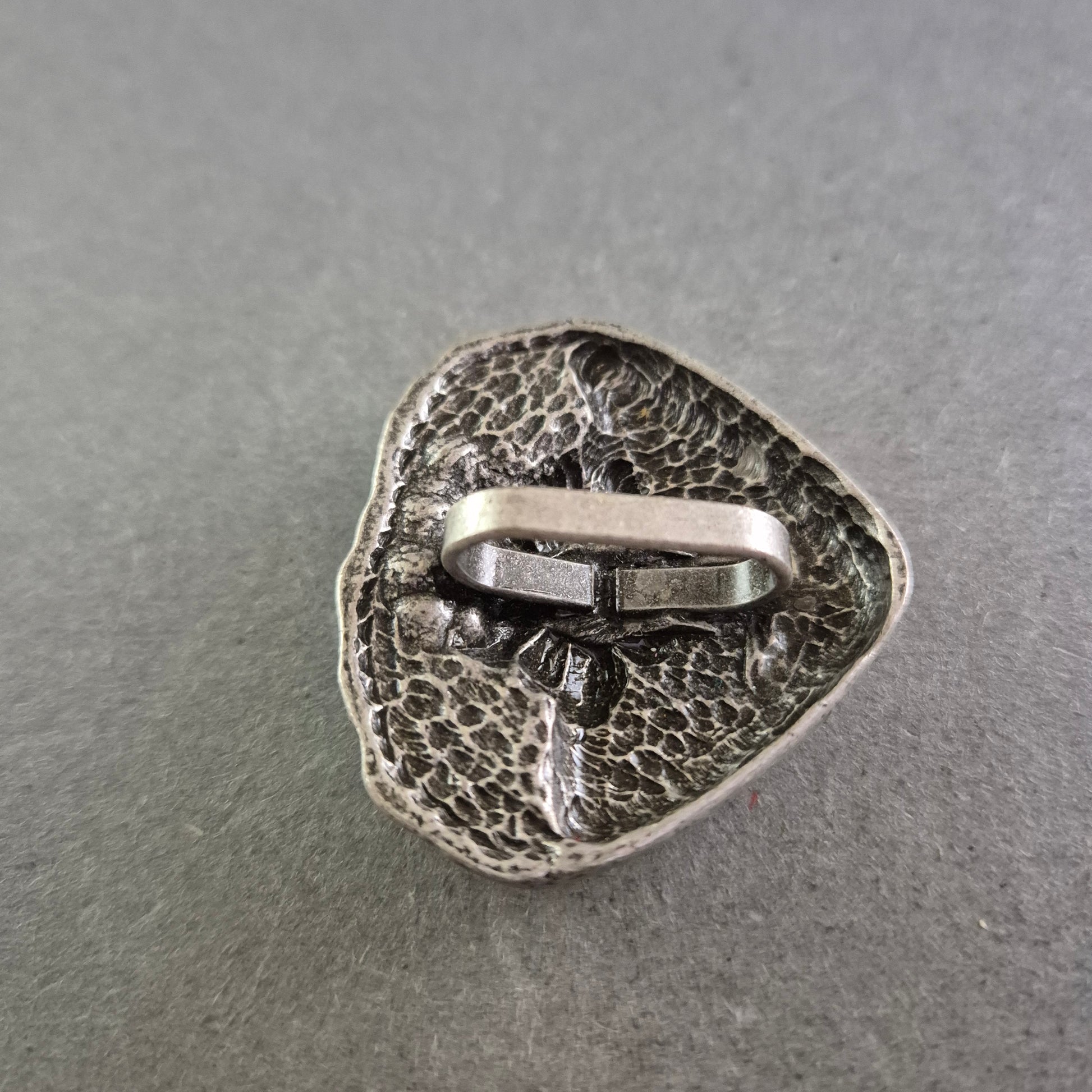 Dieser traditionelle Trachtenknopf aus massivem Metall ist mit einem kunstvoll gearbeiteten Edelweiß-Motiv verziert – dem klassischen Symbol der Alpenregion. Die strukturierte Oberfläche und die Patina verleihen dem Stück einen rustikalen, handgefertigten Charakter. Die Rückseite ist mit einer stabilen Öse ausgestattet, ideal zur Befestigung an Trachtenjacken, Westen oder für kreative DIY-Projekte.