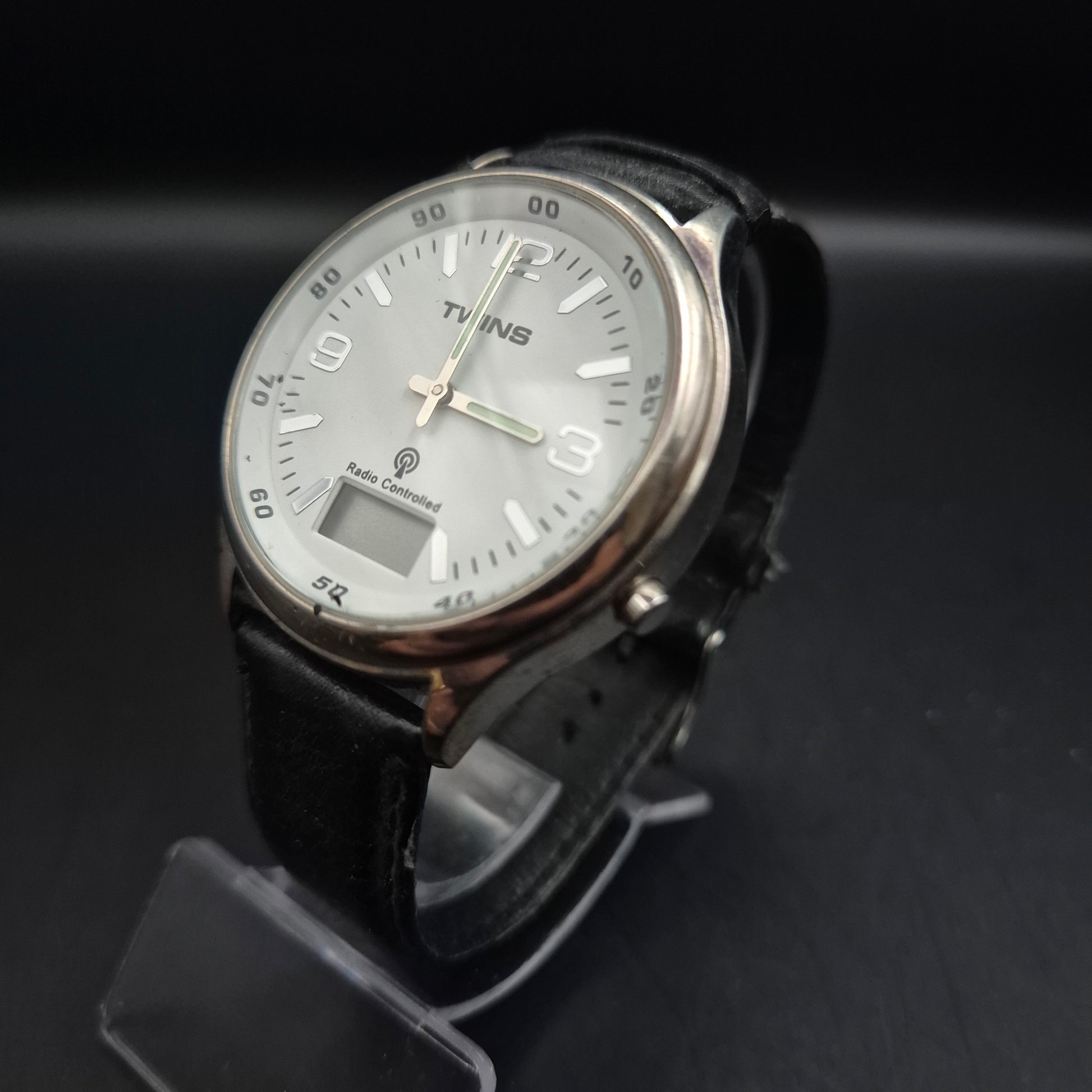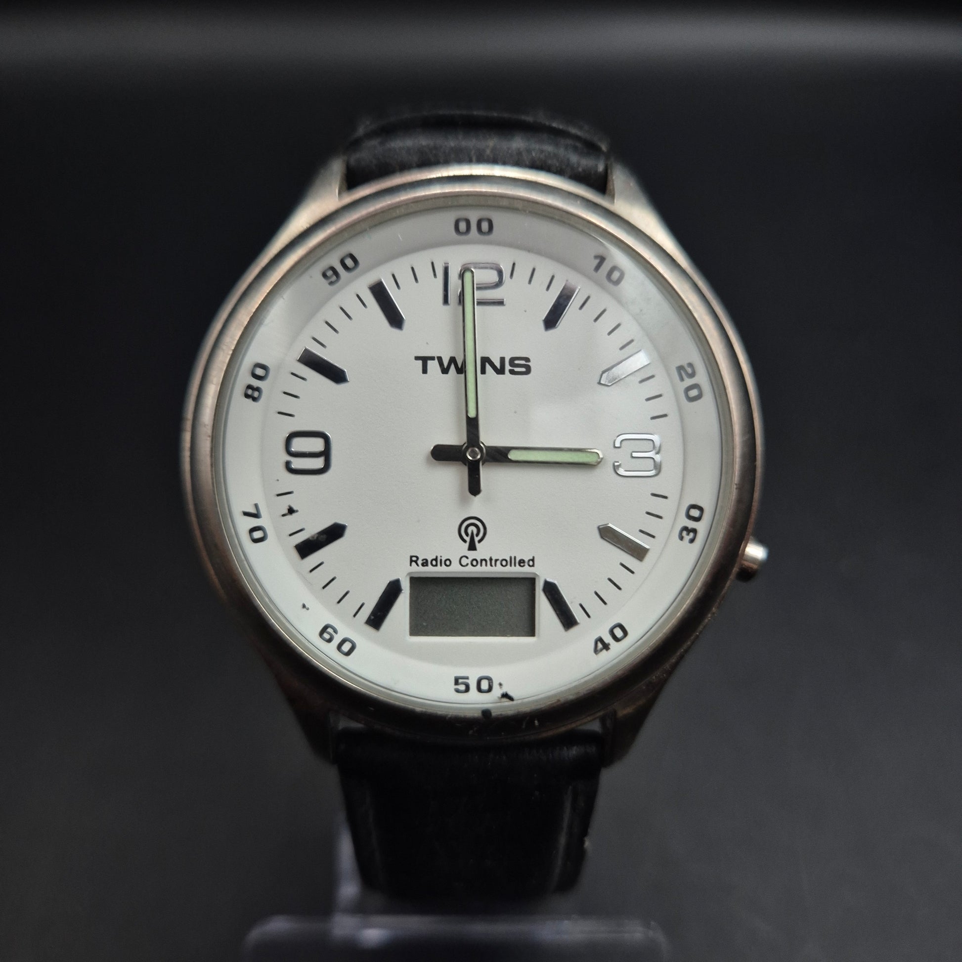 TWINS Herren Uhr – Funkgesteuert mit Digitalanzeige & Lederarmband