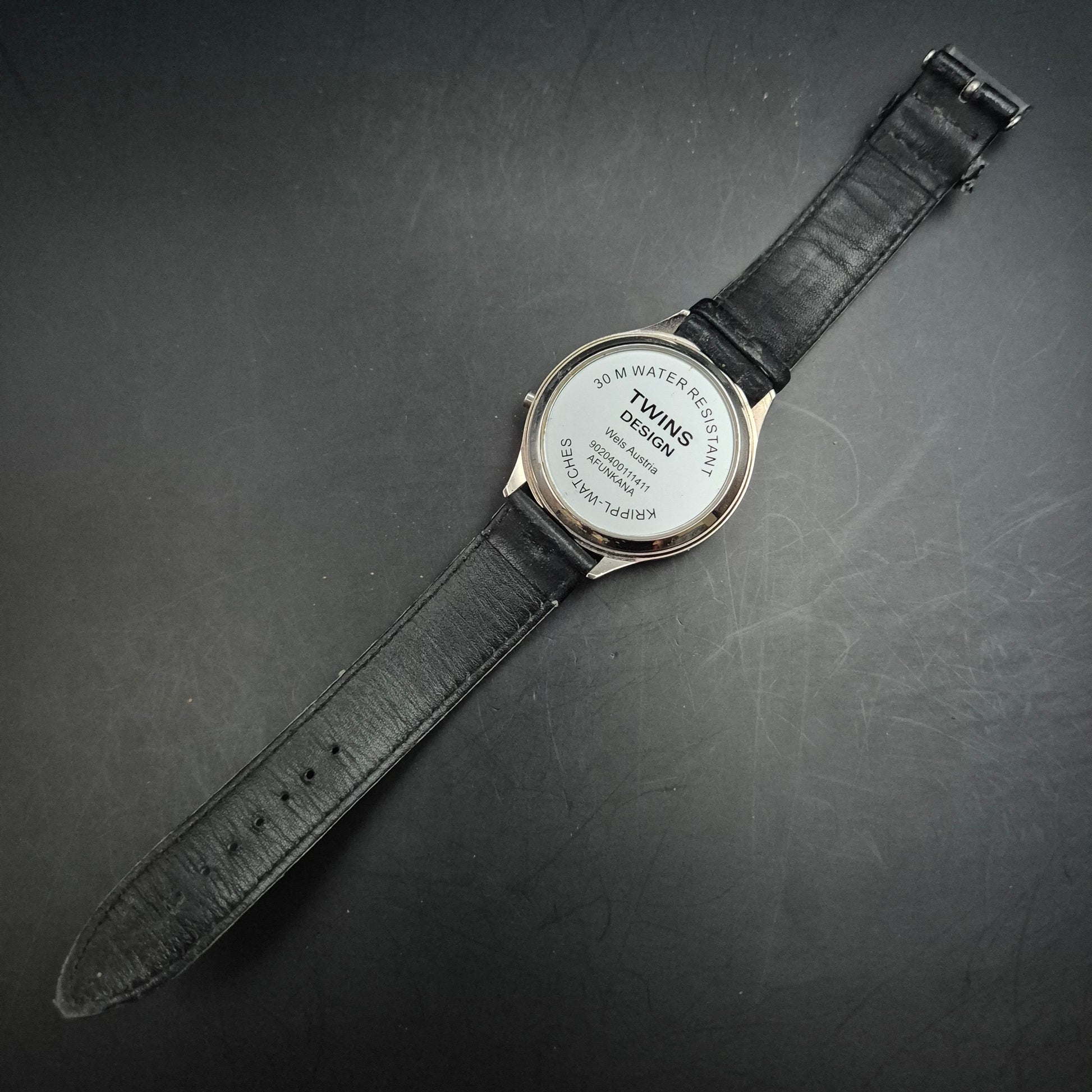 Die TWINS Herren Uhr kombiniert klassische Optik mit moderner Technik. Ausgestattet mit Funksteuerung sorgt sie für stets präzise Zeitangabe. Das weiße Zifferblatt bietet eine gute Ablesbarkeit, während eine kleine Digitalanzeige zusätzliche Funktionen unterstützt. Das schwarze Lederarmband sorgt für angenehmen Tragekomfort und rundet den funktionalen Look stilvoll ab.