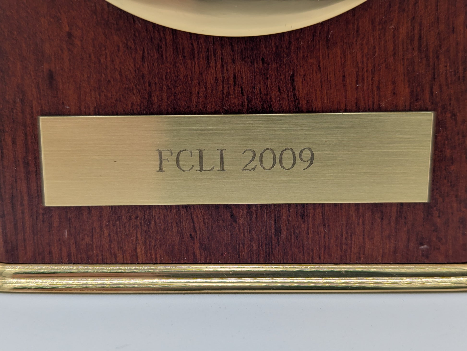 • Gravur: Plakette „FCLI 2009“ auf der Vorderseite