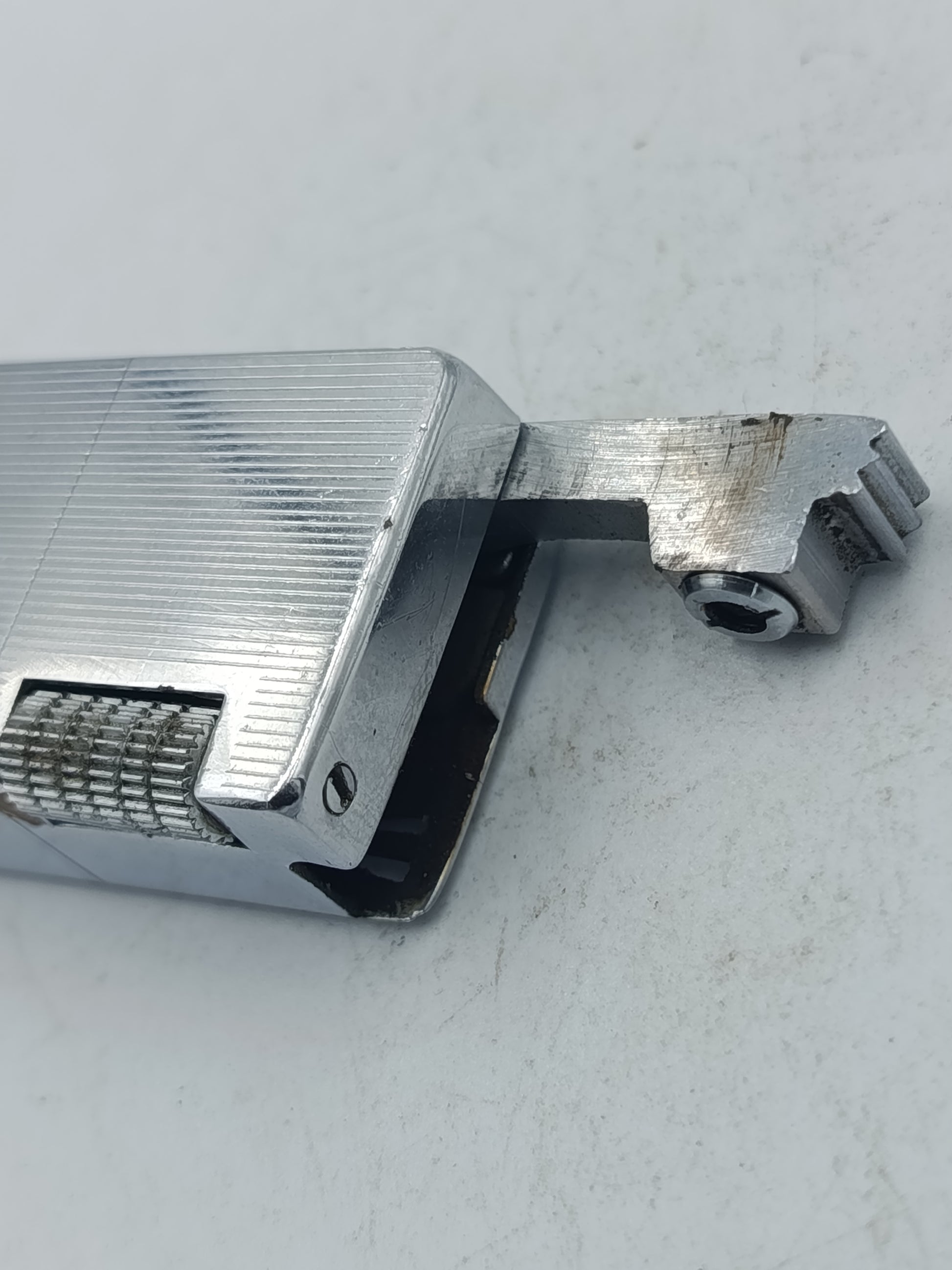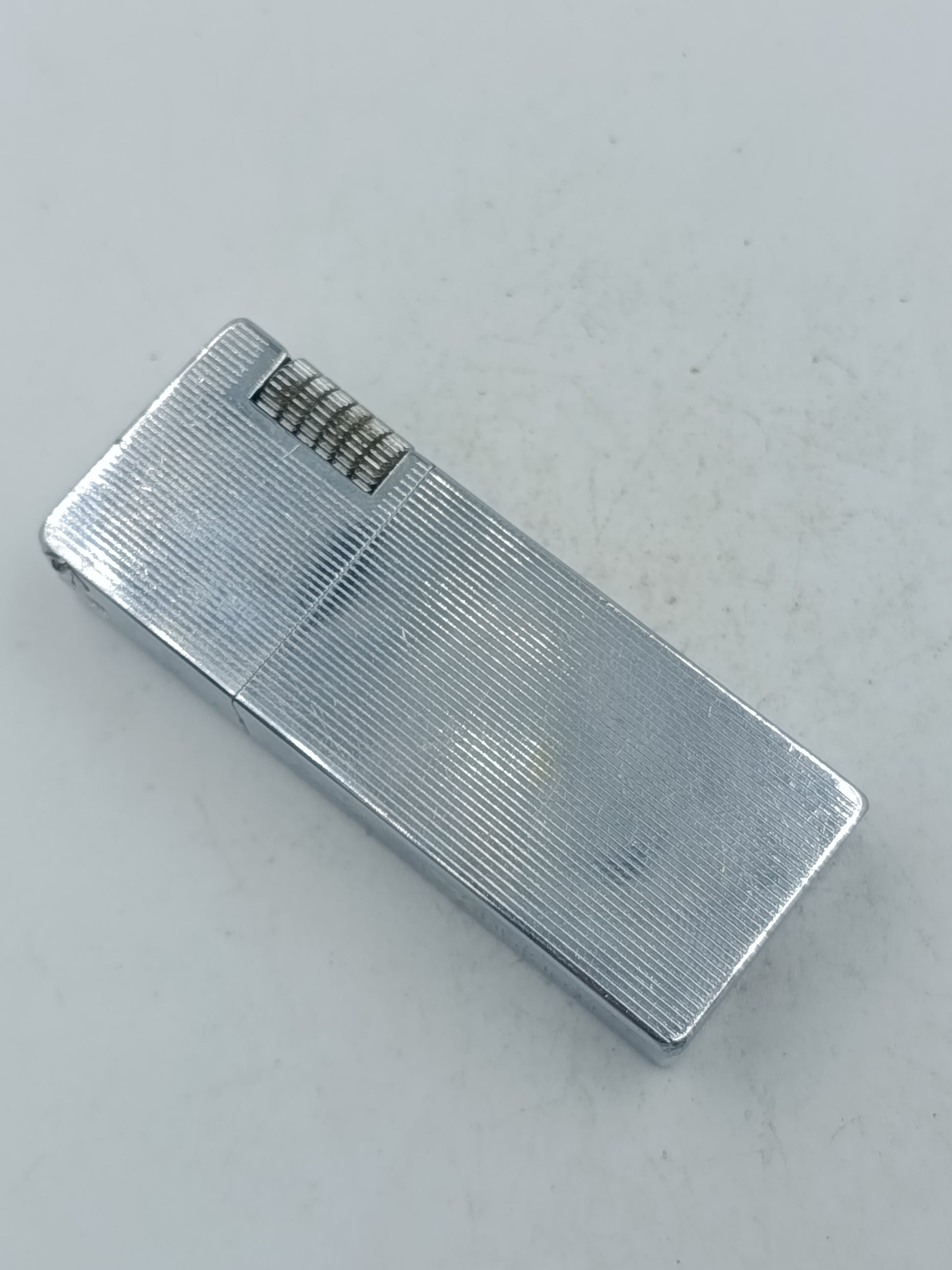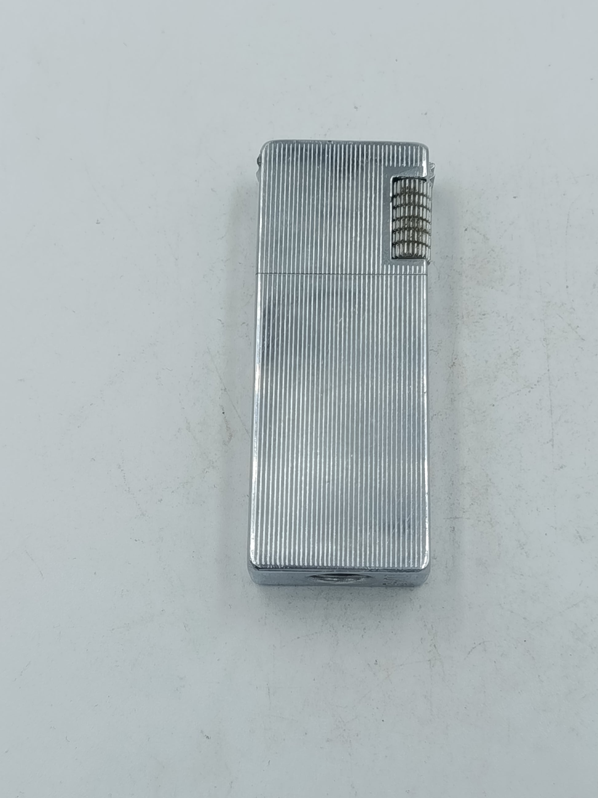 Elegantes, schlankes Feuerzeug mit zeitlosem silberfarbenem Metallgehäuse und fein gearbeiteter Längsrillen-Struktur. Das Modell wirkt hochwertig und funktional zugleich und steht für klassische deutsche Fertigung aus der Nachkriegszeit. Durch die kompakte, längliche Form liegt das Feuerzeug gut in der Hand und eignet sich sowohl für Sammler als auch als stilvolles Vintage-Alltagsaccessoire.